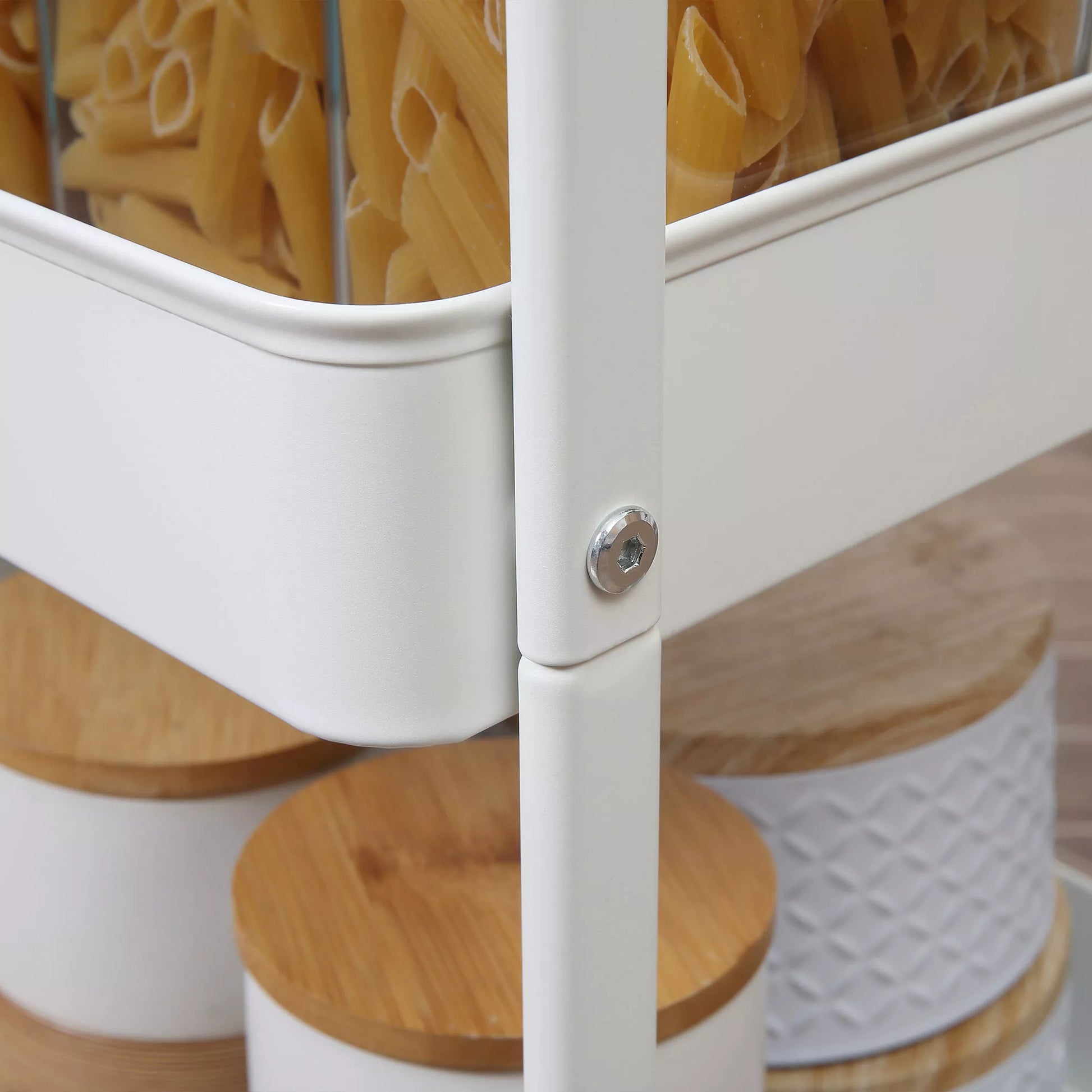 - ✔ Universalus vežimėlis: 2 lentynos, stalčius, lentynėlė, idealiai tinkanti vaisiams, daržovėms ir daugeliui kitų daiktų laikyti