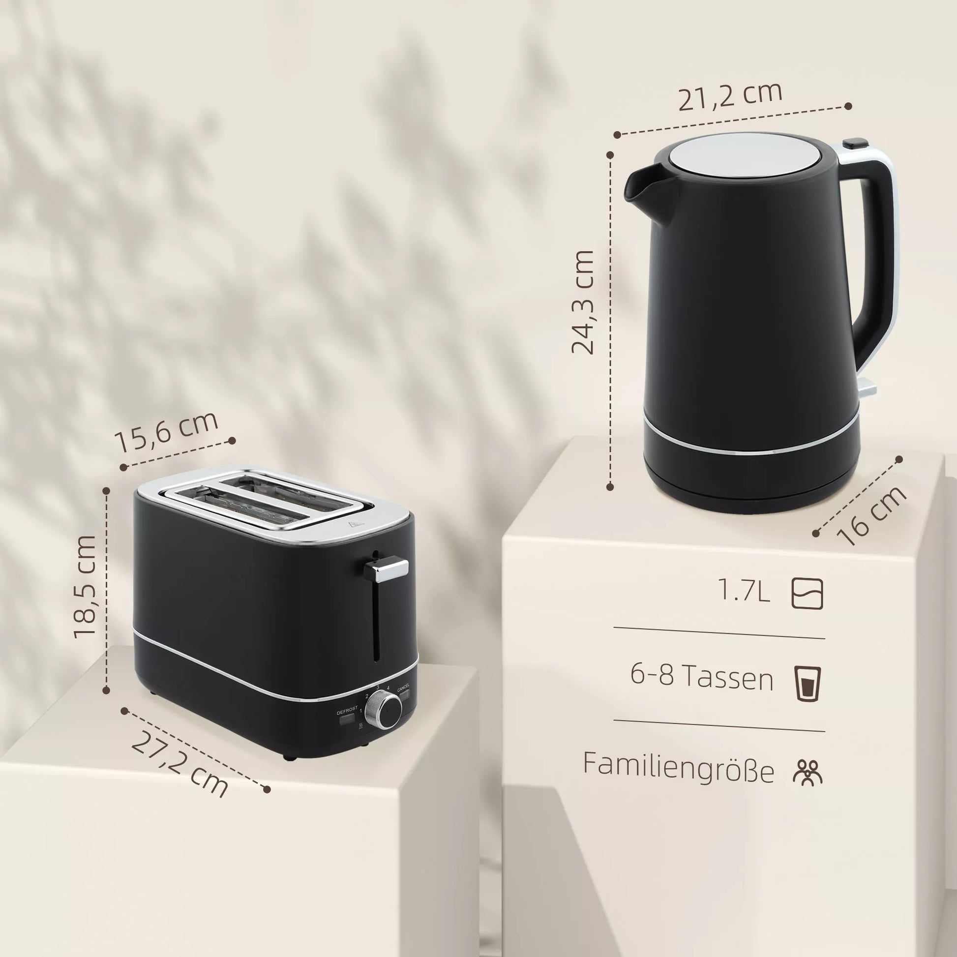 Pradėkite savo rytą stilingai su tosteriu ir virduliu, pagamintais elegantiškos juodos spalvos. Šis modernus duetas derina funkcionalumą ir dizainą: didelis virdulys greitai užvirina vandenį, o universalus tosteris su automatinėmis kaitinimo, atšildymo ir išjungimo funkcijomis pakeis jūsų pusryčių laiką. Mėgaukitės lengvu mėgstamų patiekalų paruošimu ir patirkite, kaip lengvai gali būti pusryčiai.