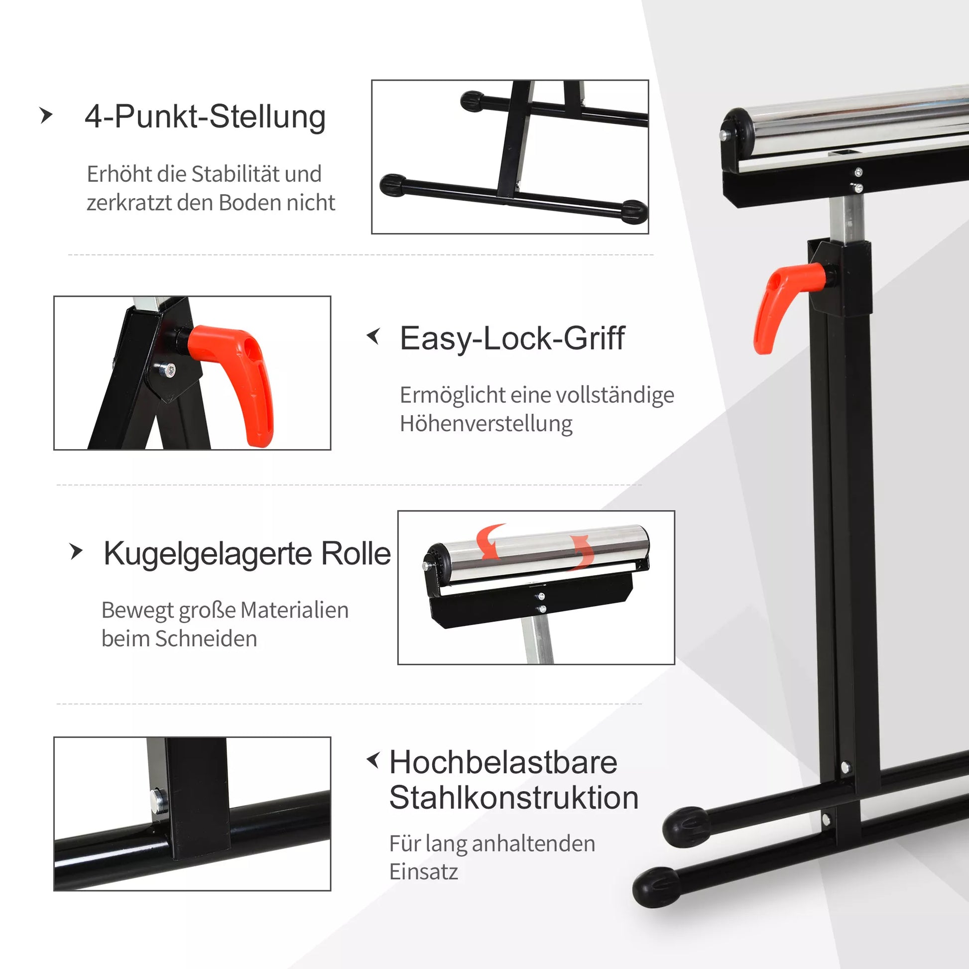 Ritininis stovas, ritininė atrama, aukštyje reguliuojamas darbo stovas, ritininis stendas, pagalbinis stovas, atraminis stovas, iki 90 kg, metalas, juoda spalva, 44 x 50 x 68-110 cm
