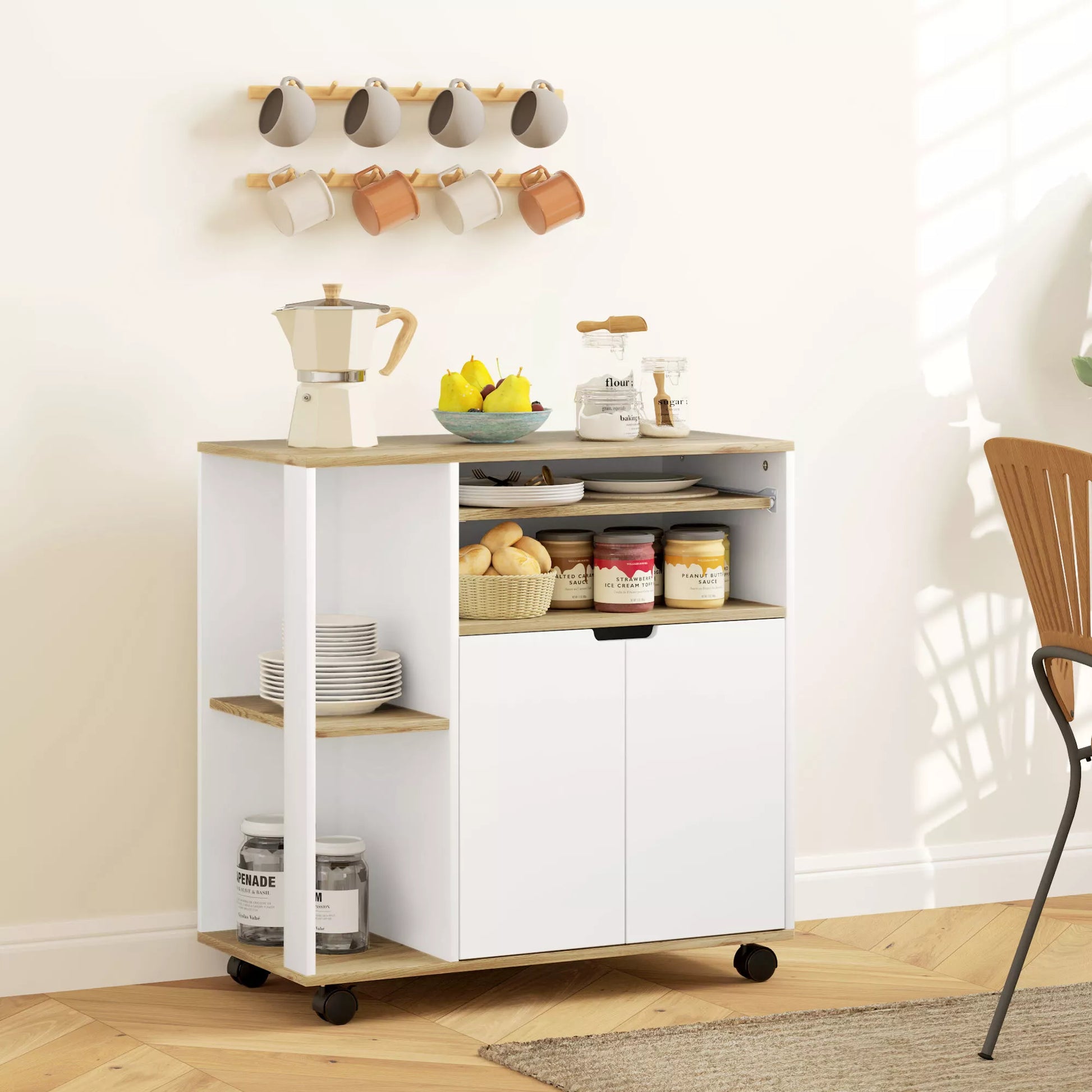 Virtuvės vežimėlis ant ratukų su laikymo vieta, spintelė, reguliuojamos lentynos, skirta virtuvei, svetainei, valgomajam, balta