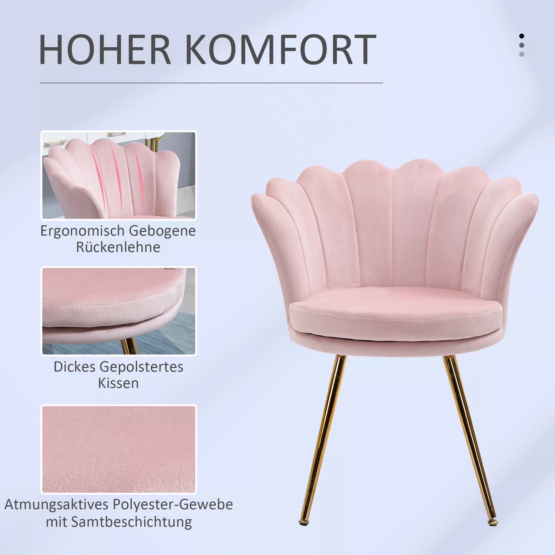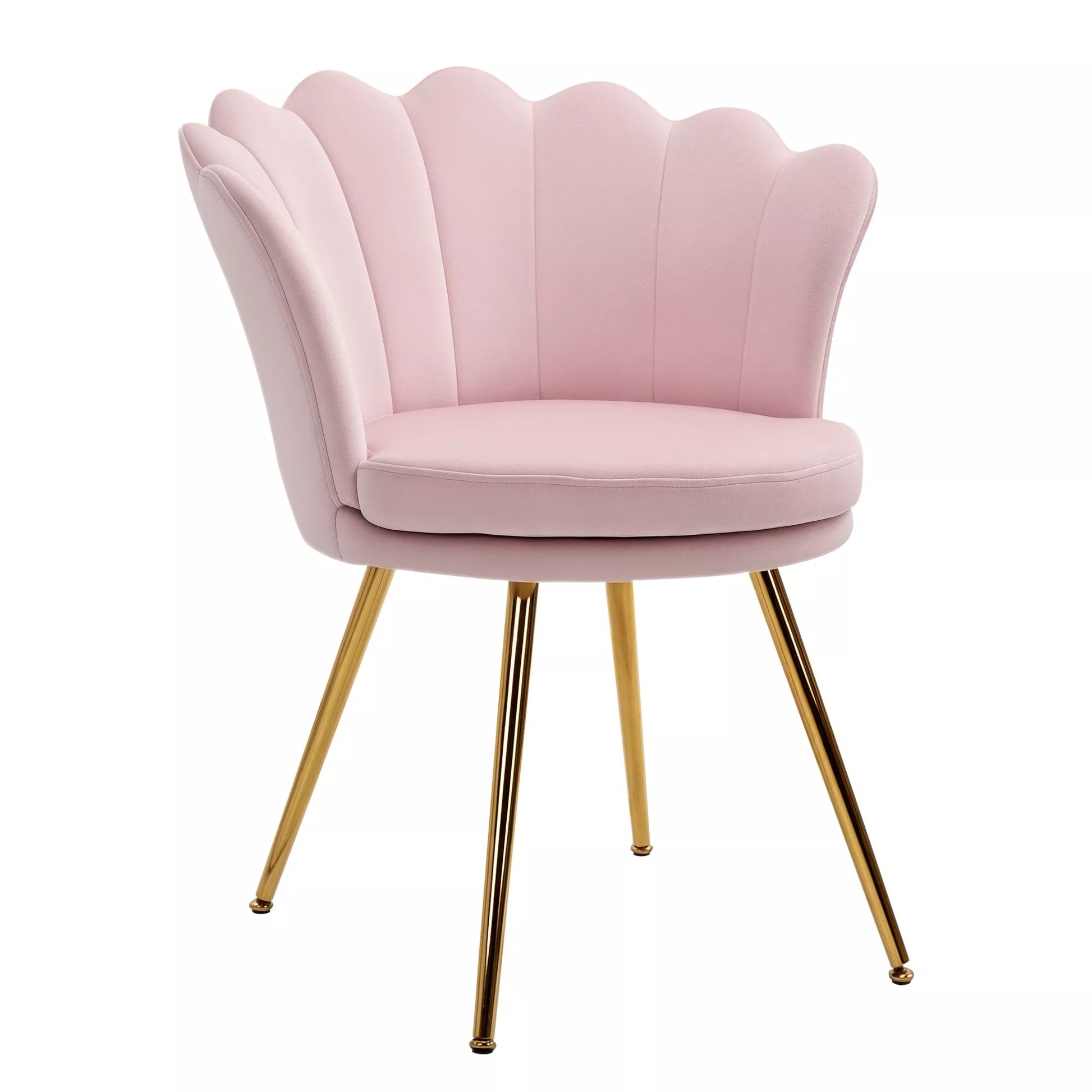 Fotelis su lotoso formos dizainu, paauksuotomis metalinėmis kojelėmis, putplasčio užpildu, rožinis.