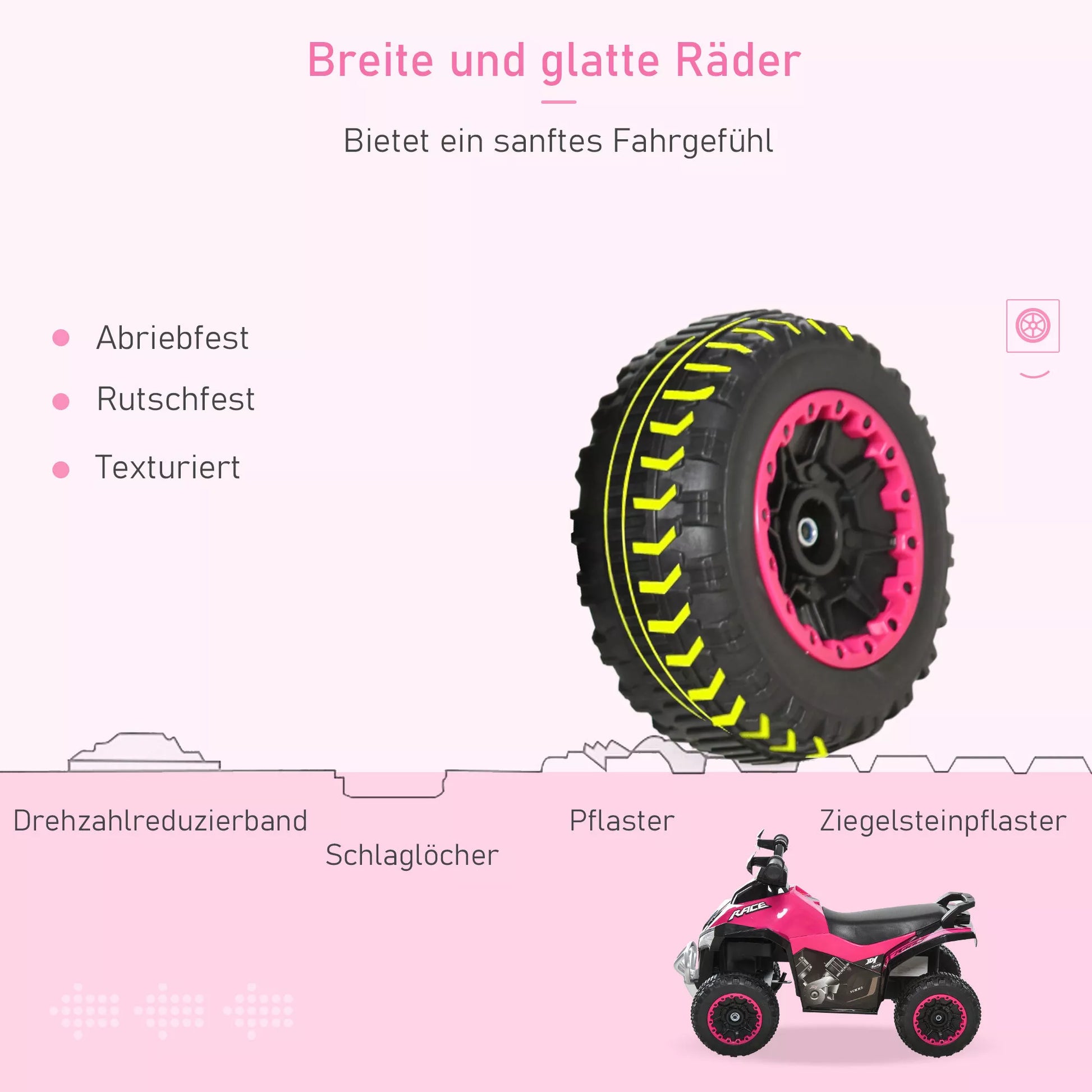 - ✔ 4 dilimui atsparūs ratai sklandžiam važiavimui