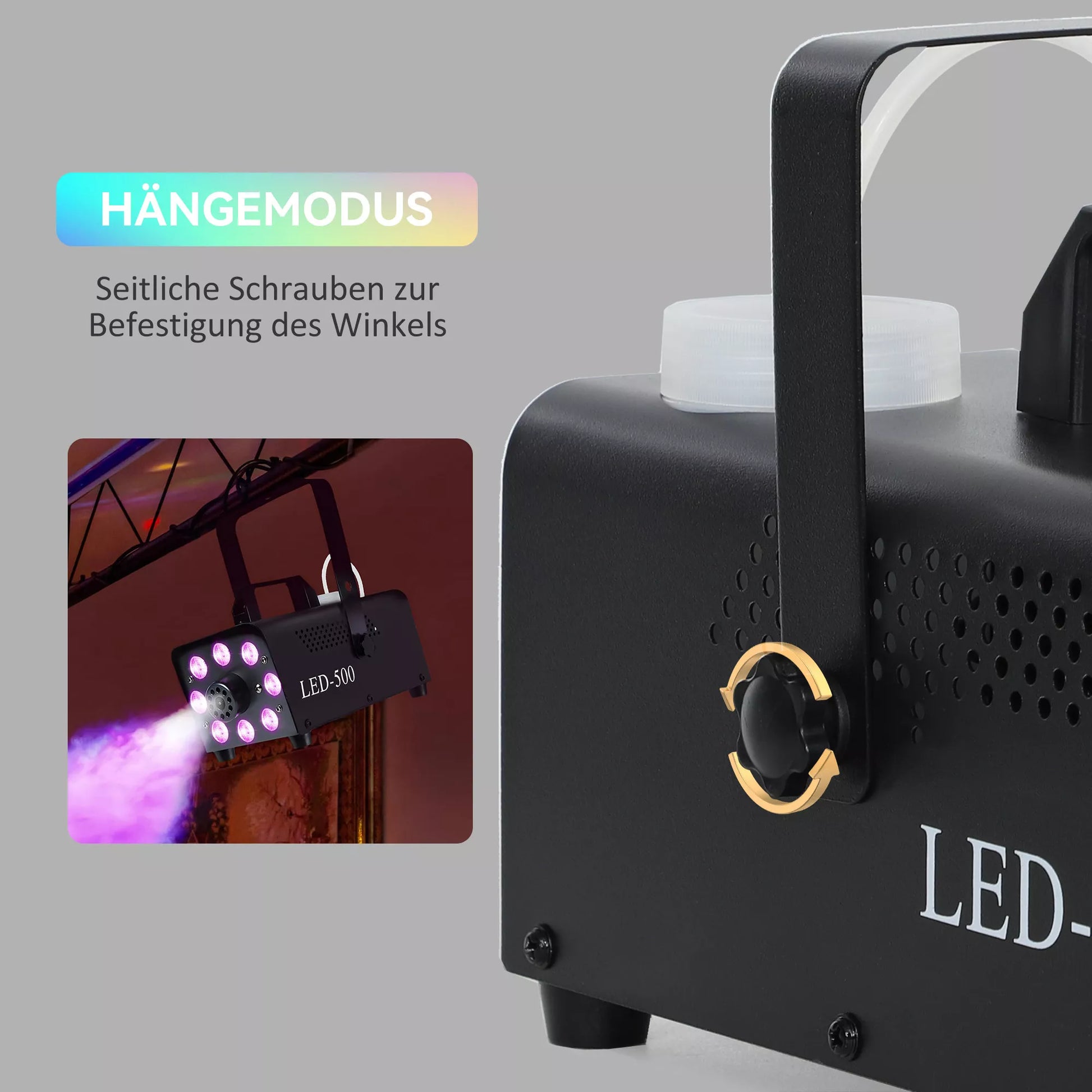 Dūmų mašina, nuotolinio valdymo pulteliai, šviesos efektai, pakabinamas, juodas