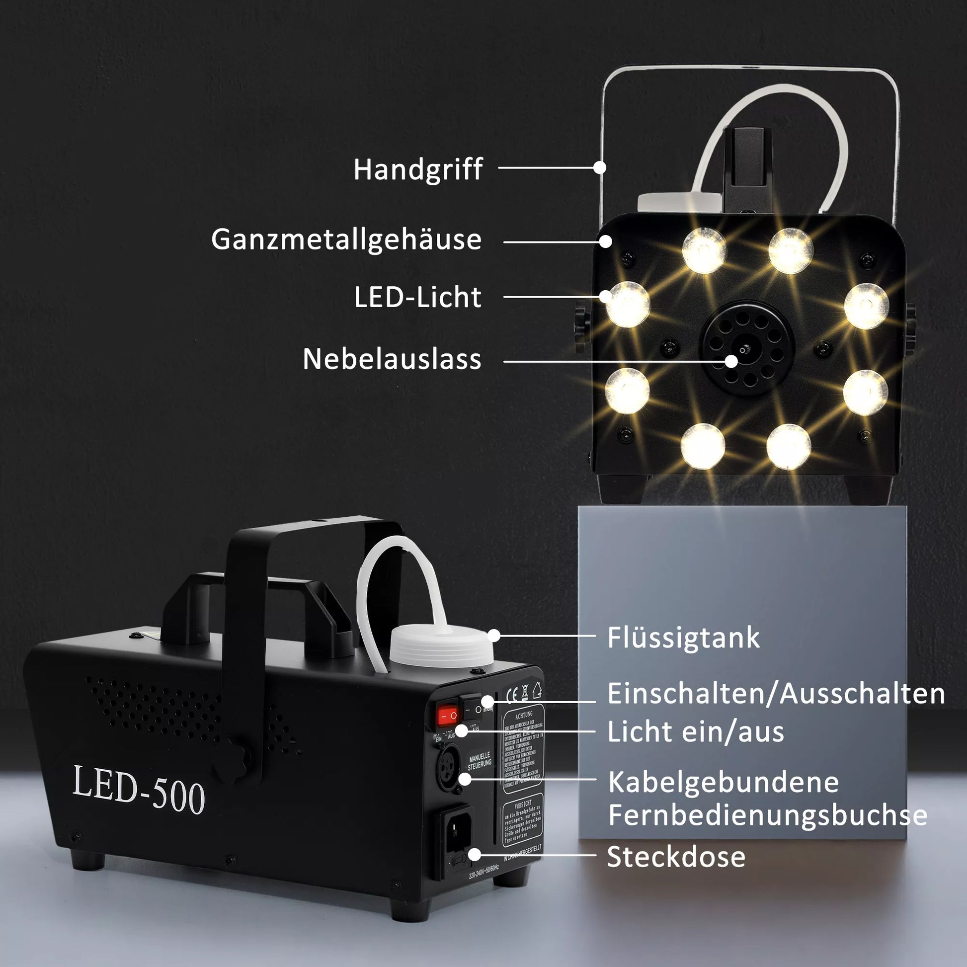 Ši dūmų mašina puikiai tinka įvairioms šventėms, tokioms kaip vestuvės, Helovinas, Kalėdos ir sceniniai pasirodymai. Ji sukurta praturtinti kiekvieną renginį gyva ir jaudinančia atmosfera. Su 8 ryškiais LED šviestuvais galite rinktis iš 13 įspūdingų spalvų ir 4 dinaminių šviesos efektų. Šie įspūdingi šviesos scenarijai pakelia nuotaiką ir pakelia jūsų šventę į kitą lygį, užtikrinant nuolat įelektrinančią atmosferą!
