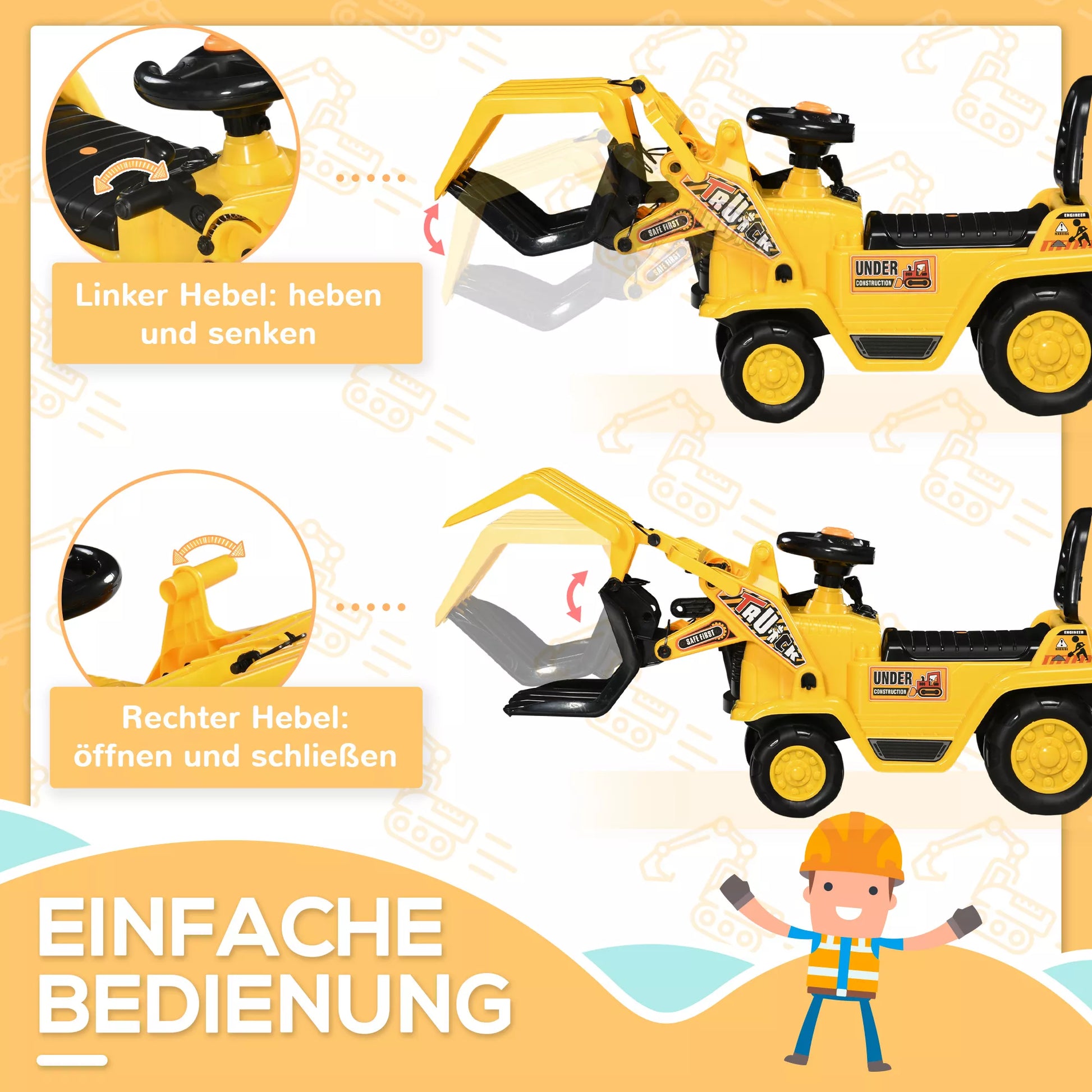 Važiuojamas ekskavatorius su griebtuvu, garsiniu signalu, garso efektais, daiktadėže, apsauga nuo apvirtimo, vaikams 2-4 metai