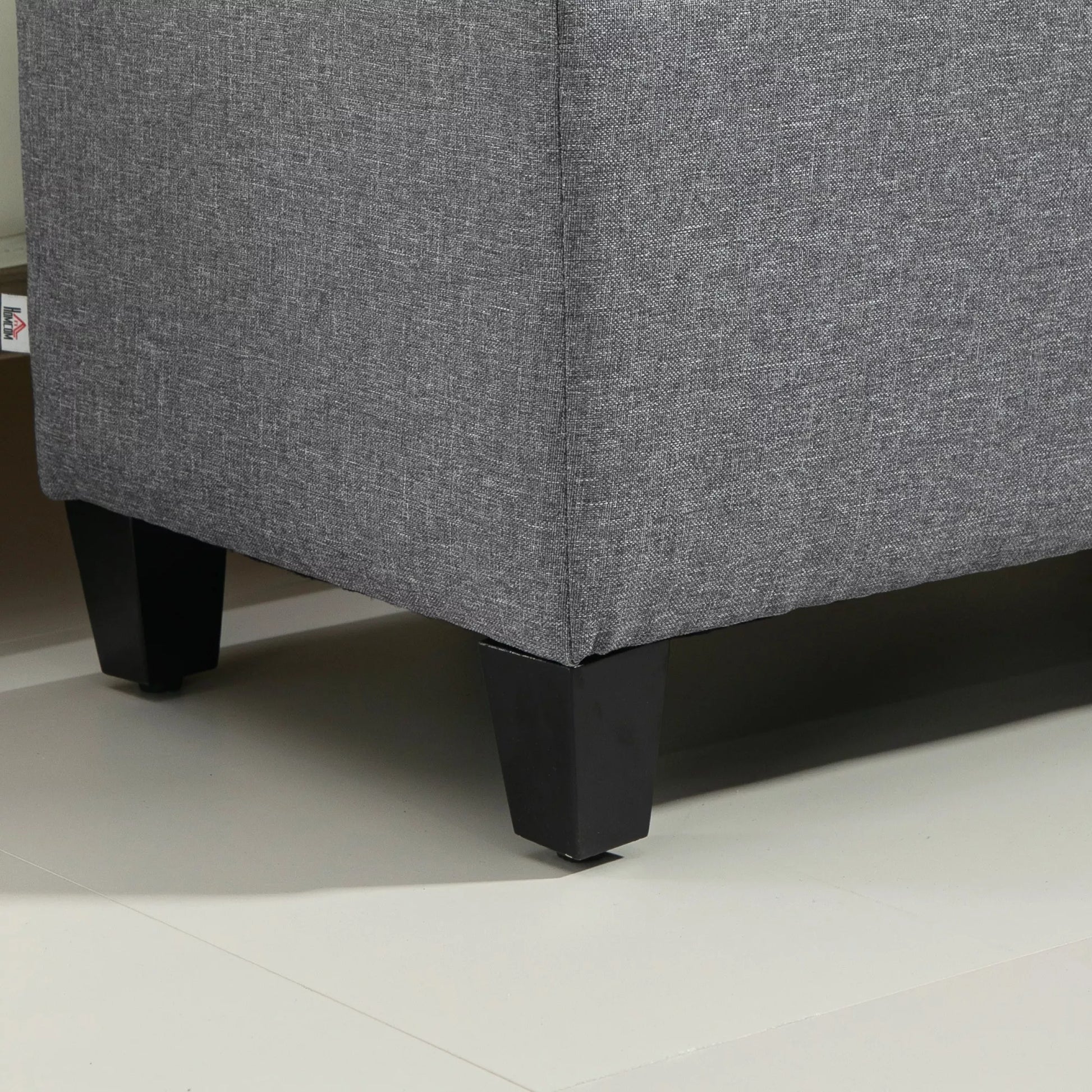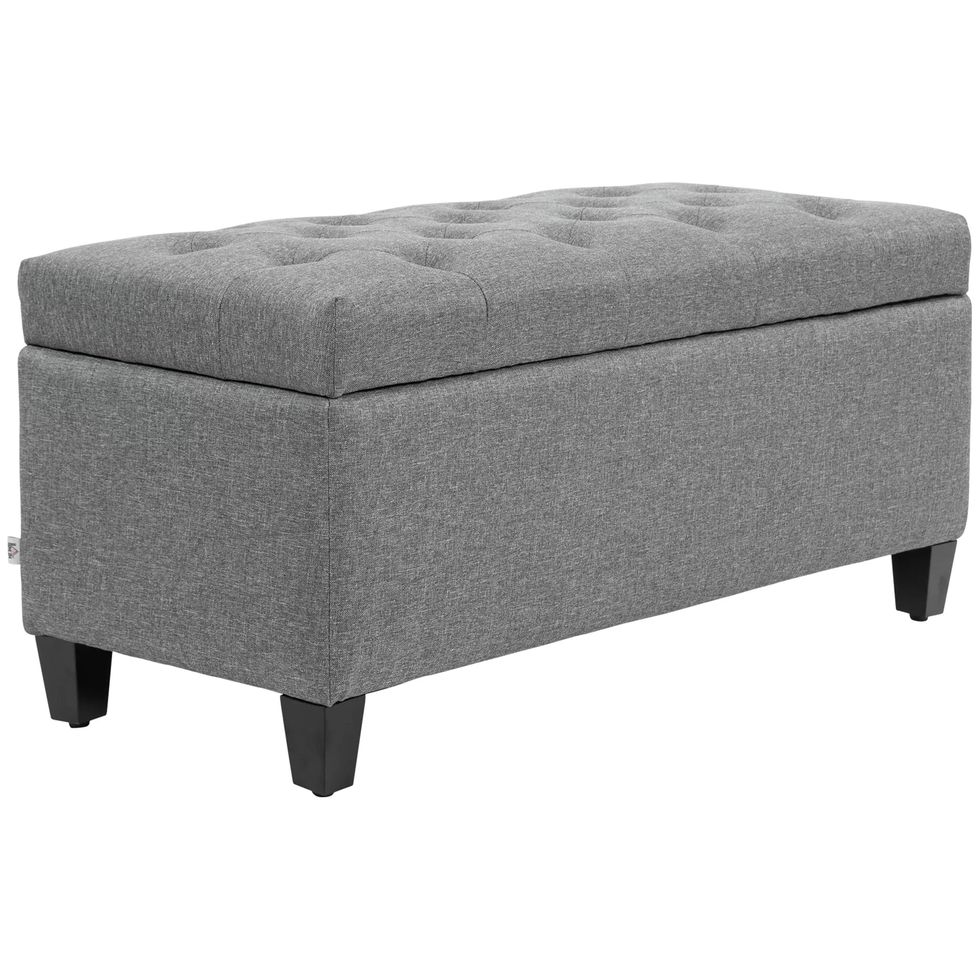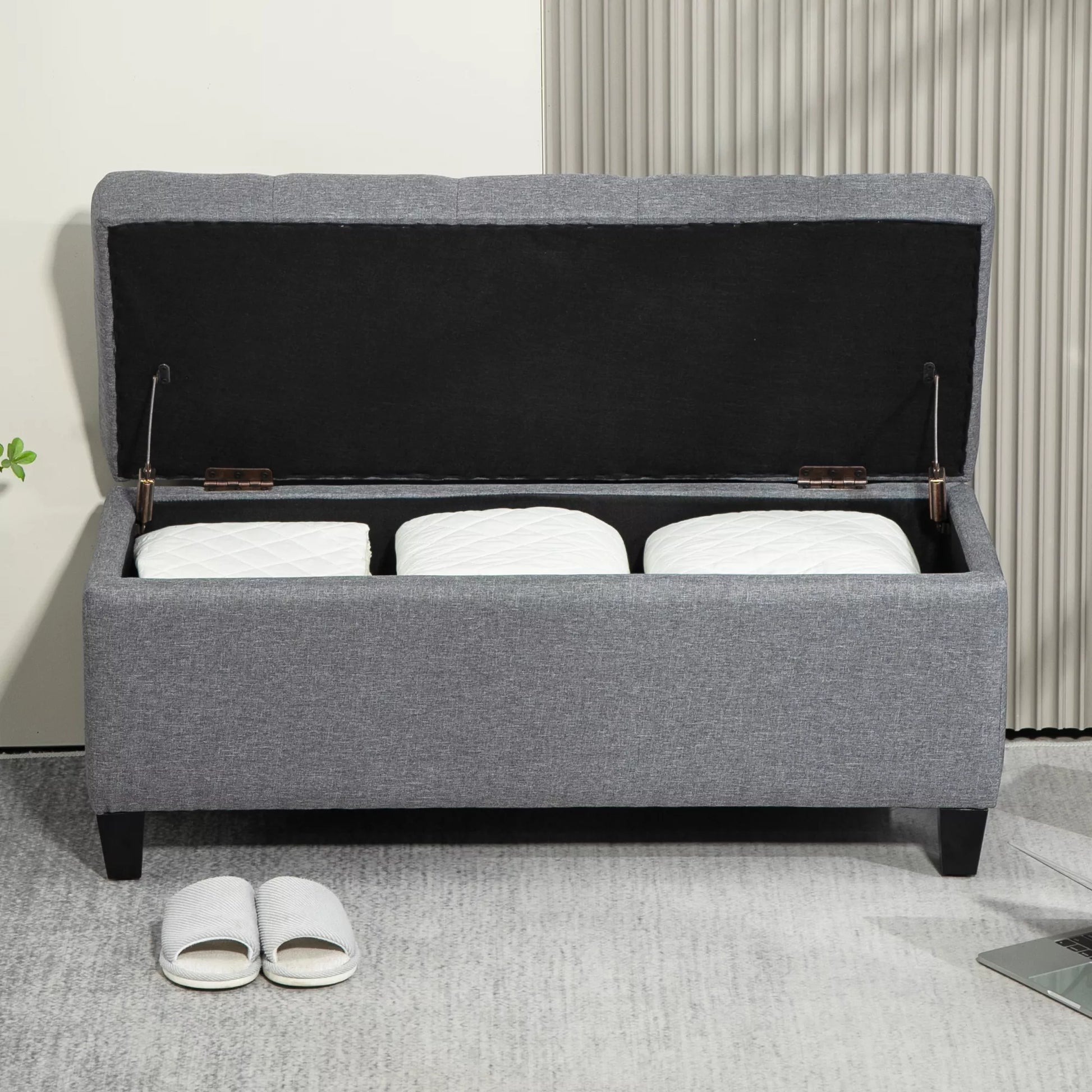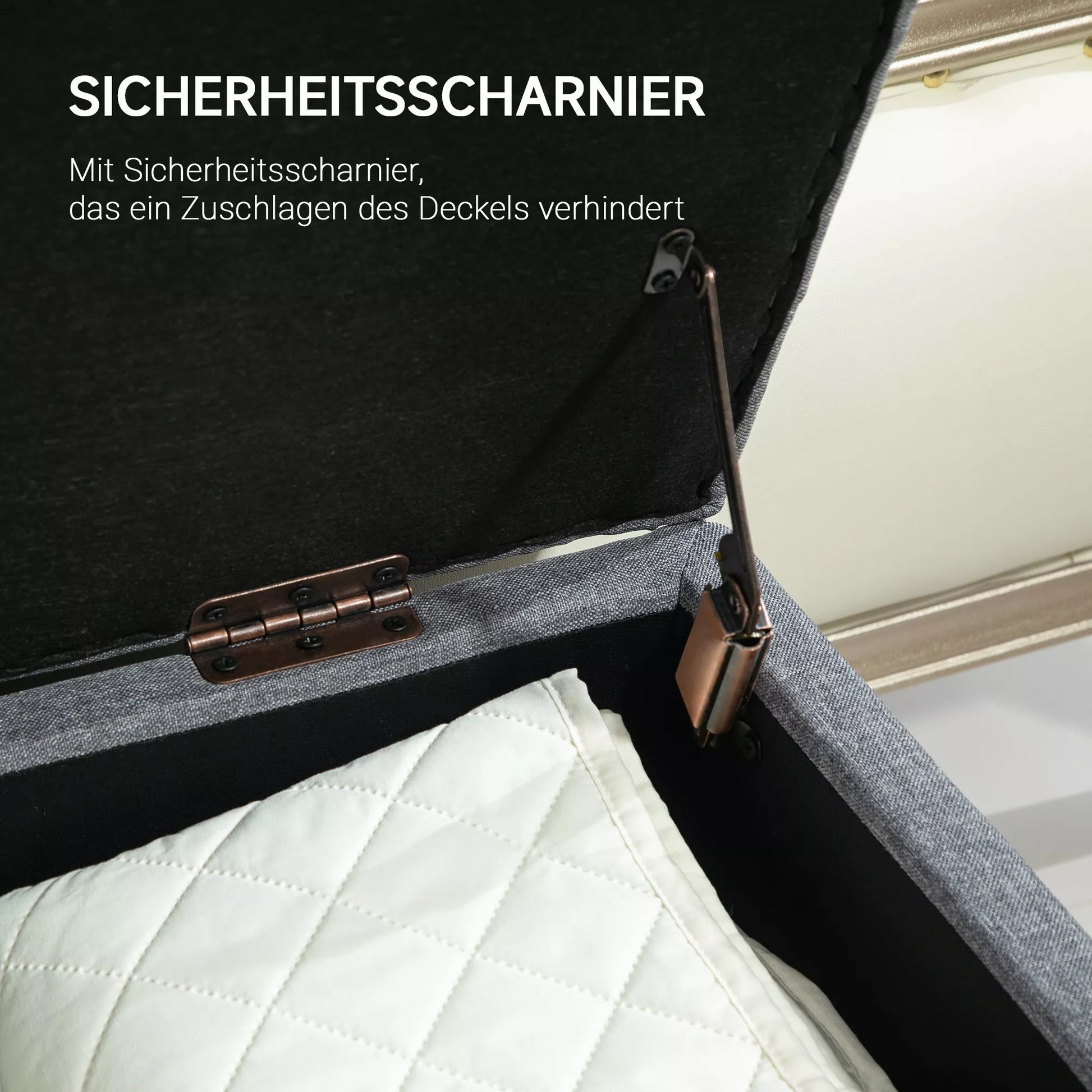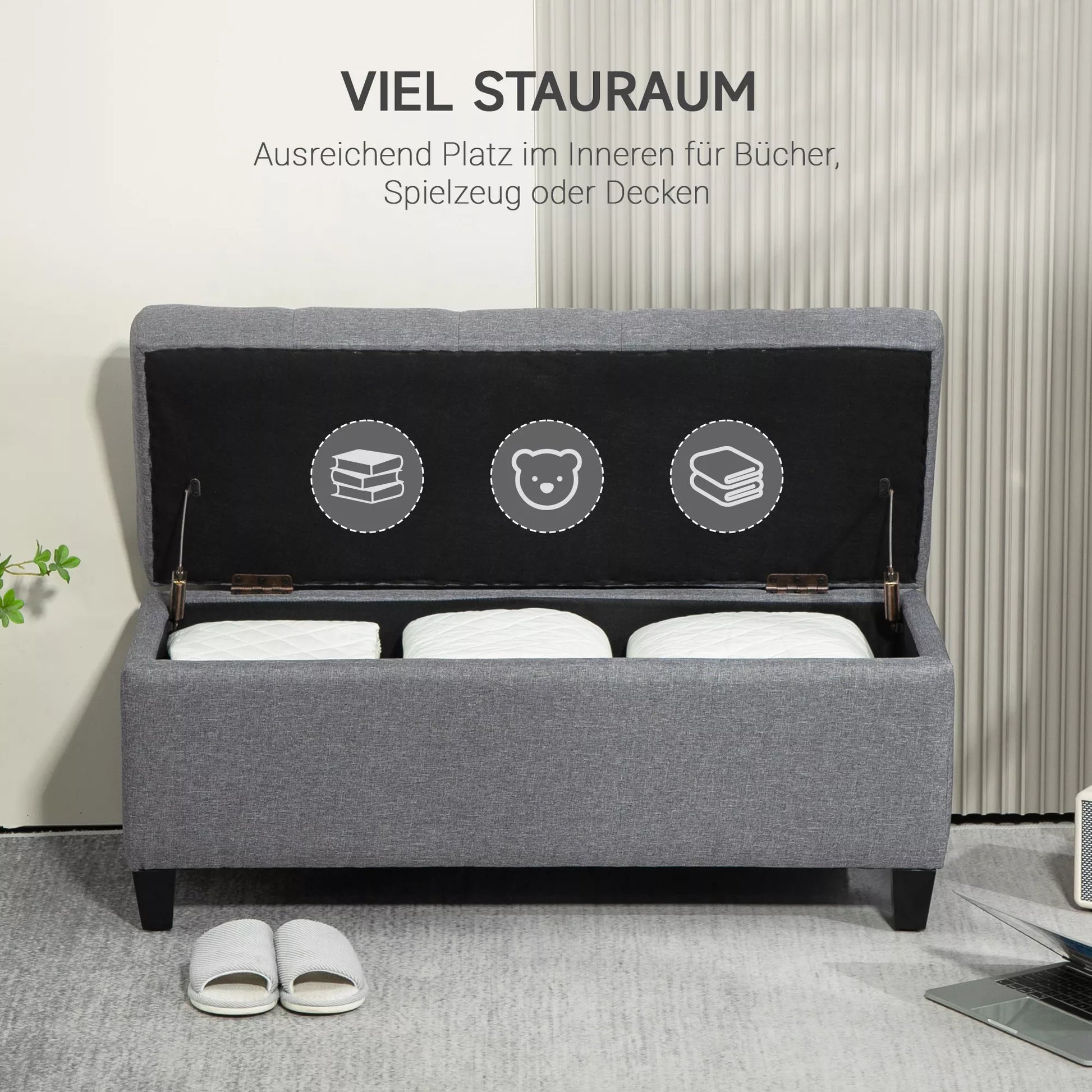 Suolas su daiktadėže, apmuštas, lininio tipo poliesteris, kaučiuko mediena, 100 x 40 x 44 cm, šviesiai pilkas