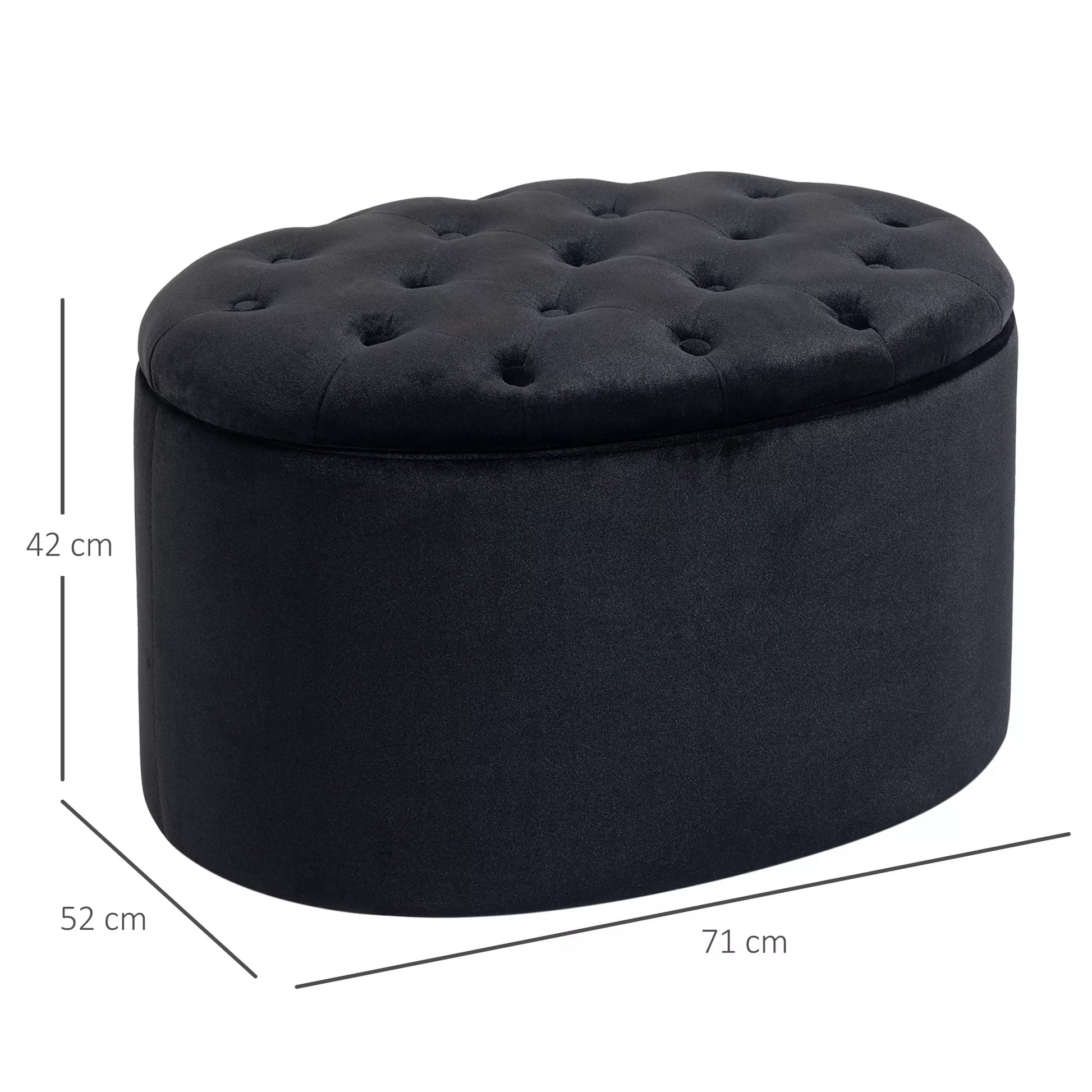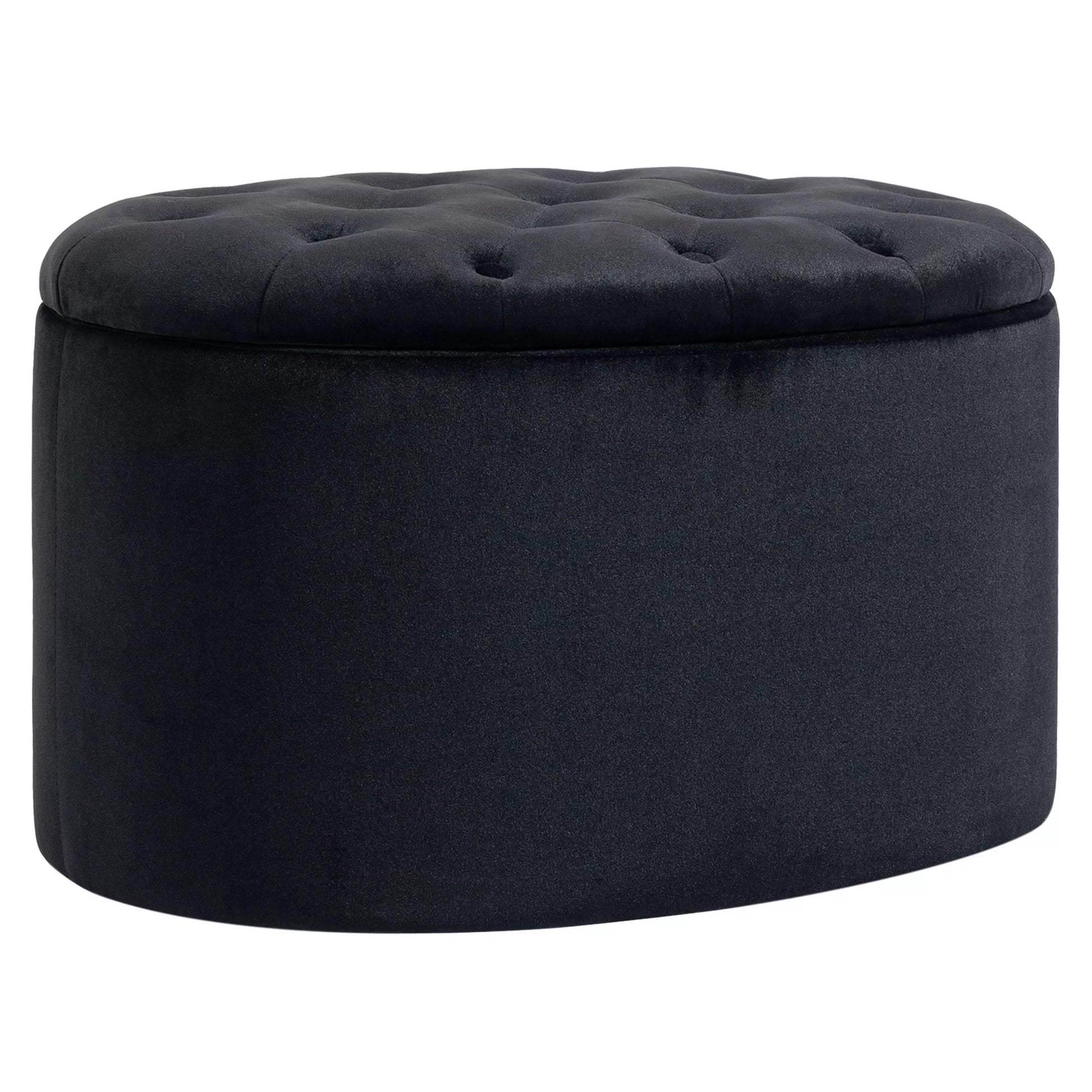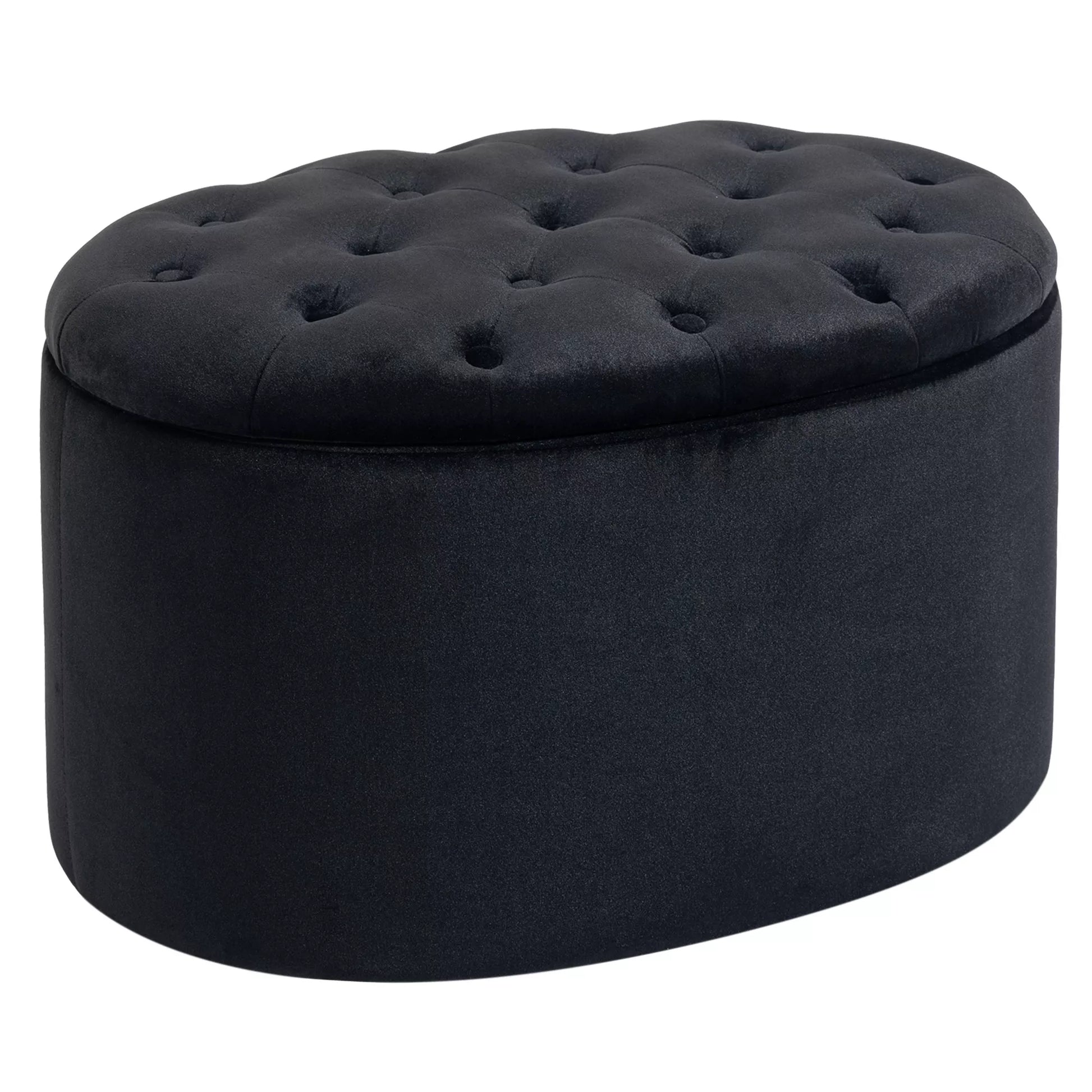 Suolas su daiktadėže, paminkštintas suolas su aksomo išvaizda, ovalo formos sandėliukų suolas svetainei, miegamajam, koridoriui 71 x 52 x 42 cm, juodas