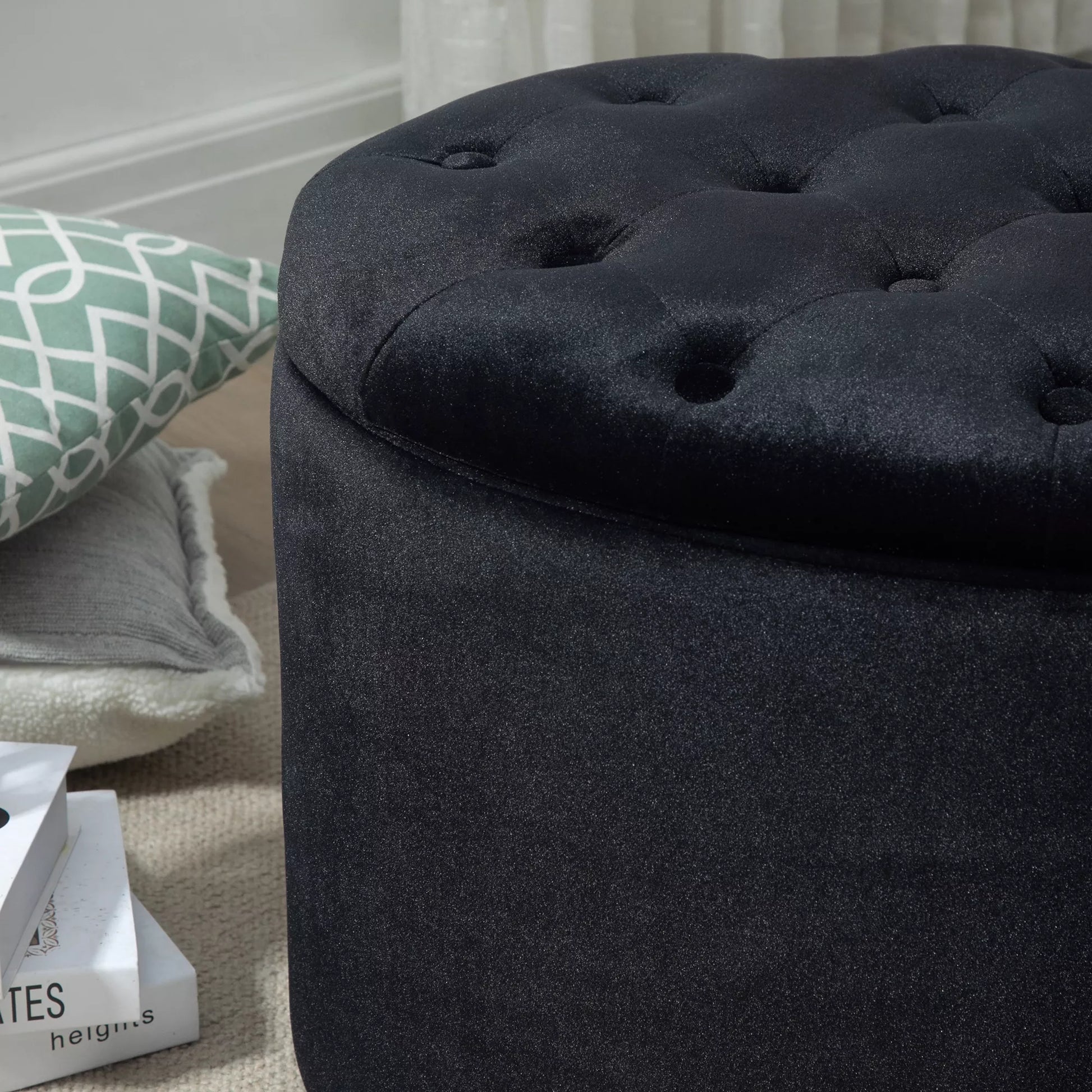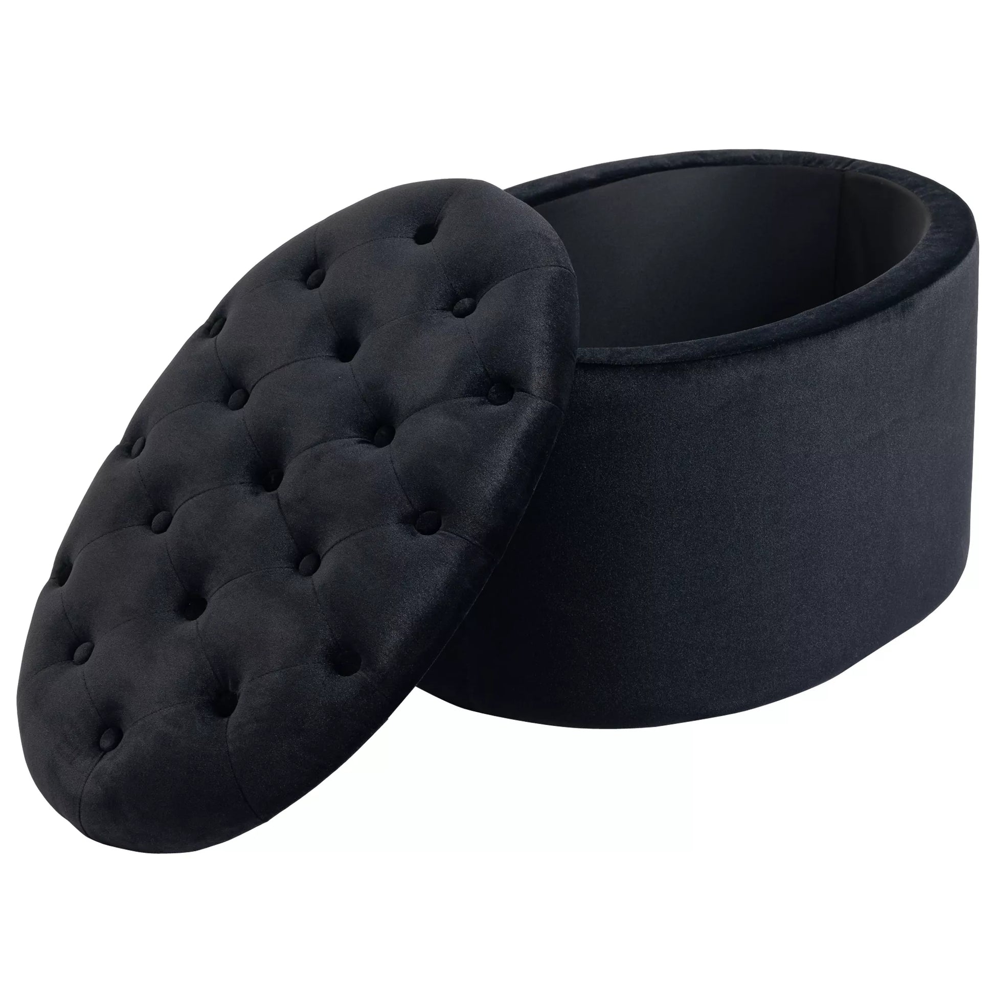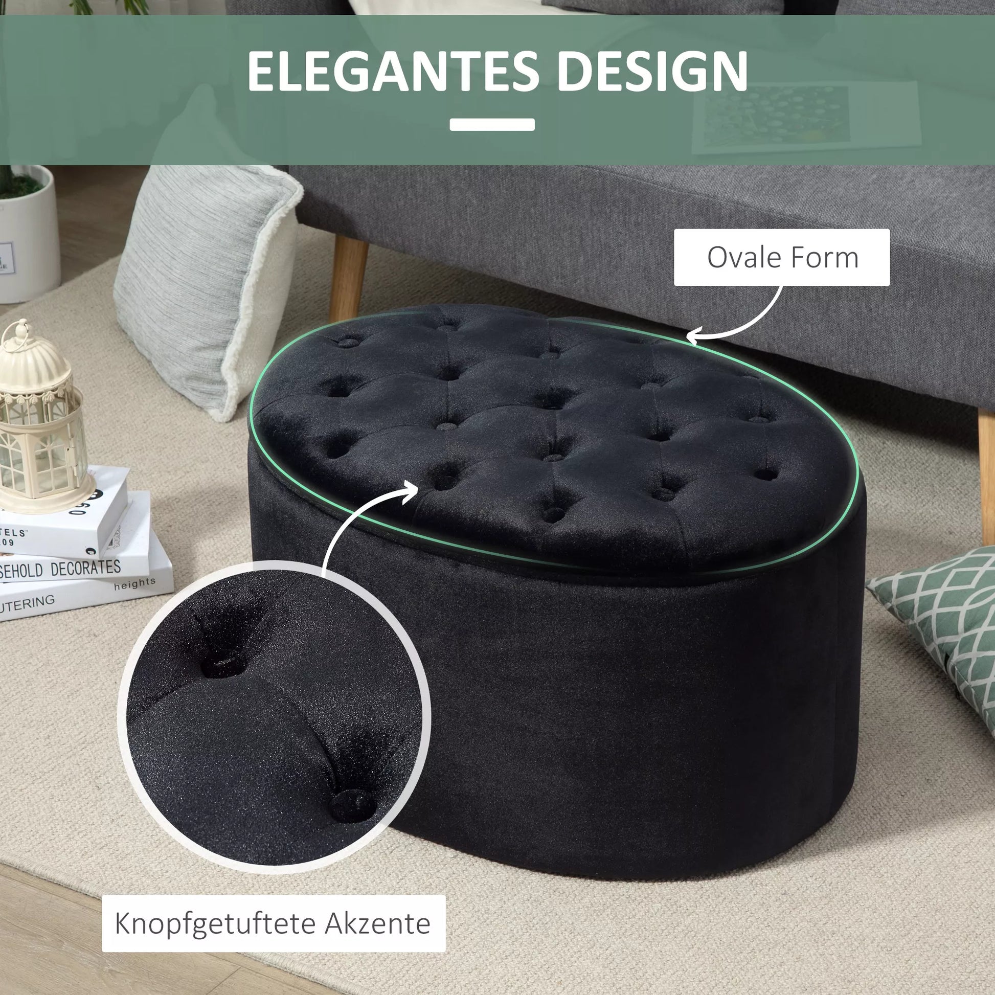 Suolas su daiktadėže, paminkštintas suolas su aksomo išvaizda, ovalo formos sandėliukų suolas svetainei, miegamajam, koridoriui 71 x 52 x 42 cm, juodas