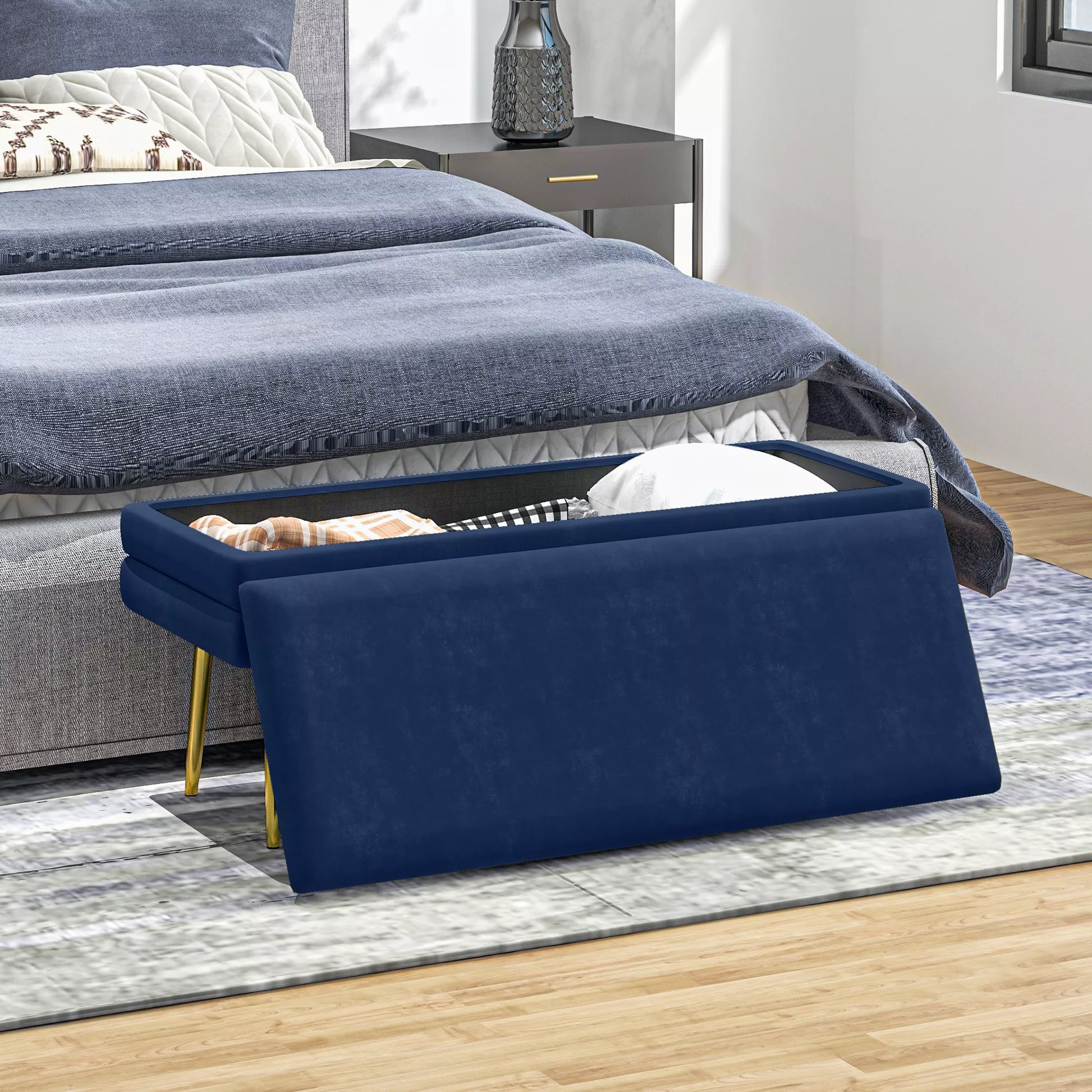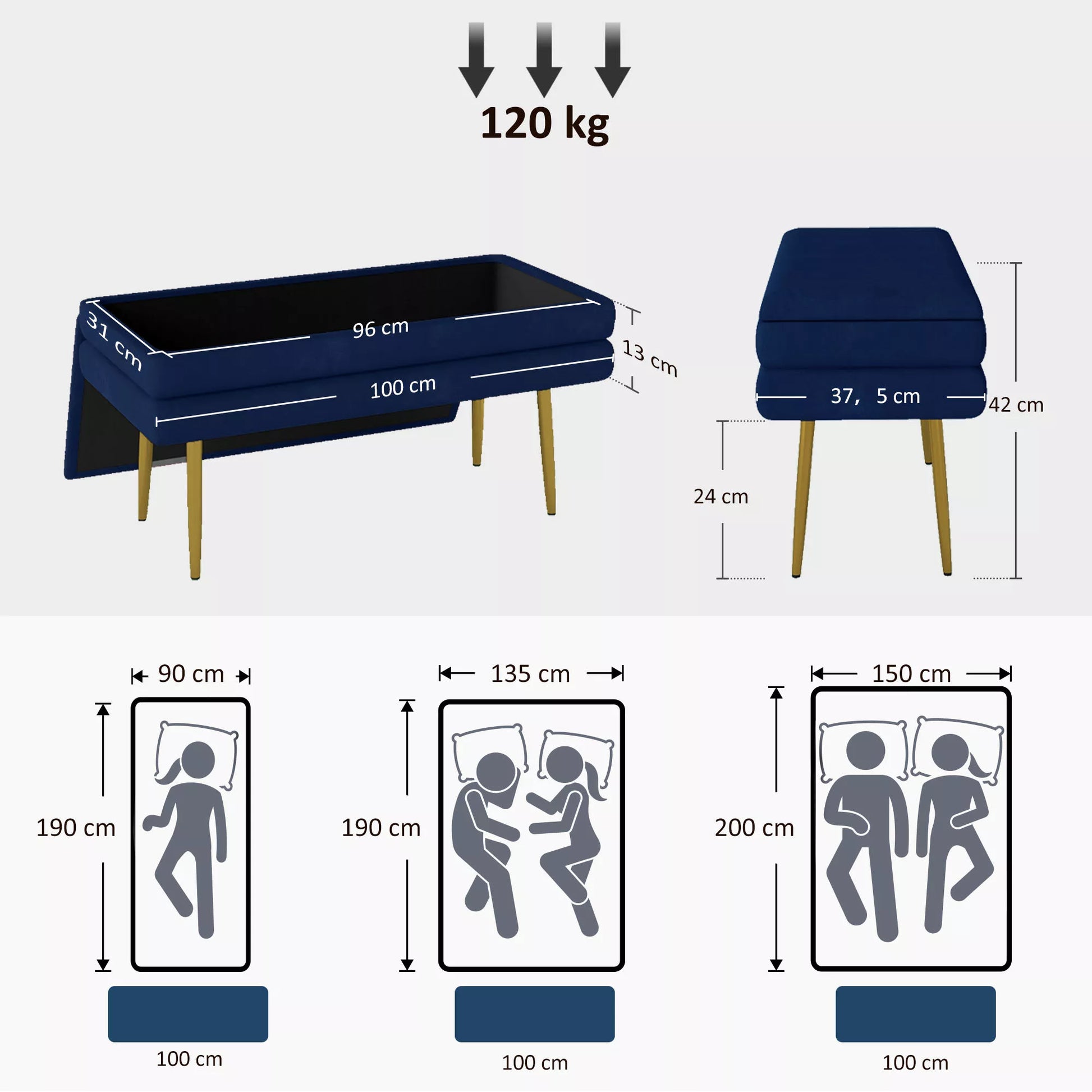 Atlošiamas suoliukas su daiktadėže, plienas, 100 cm x 37,5 cm x 42 cm, mėlynas