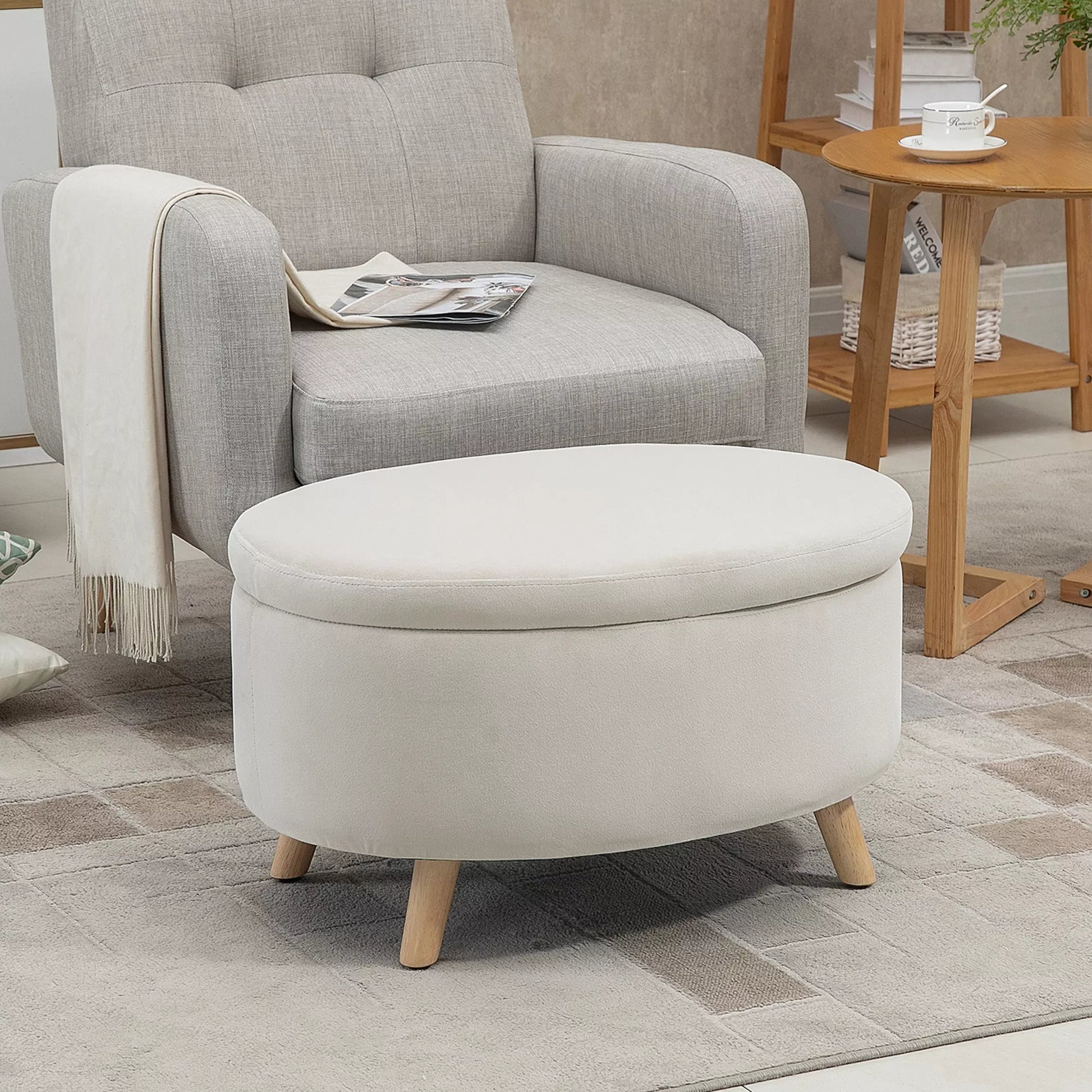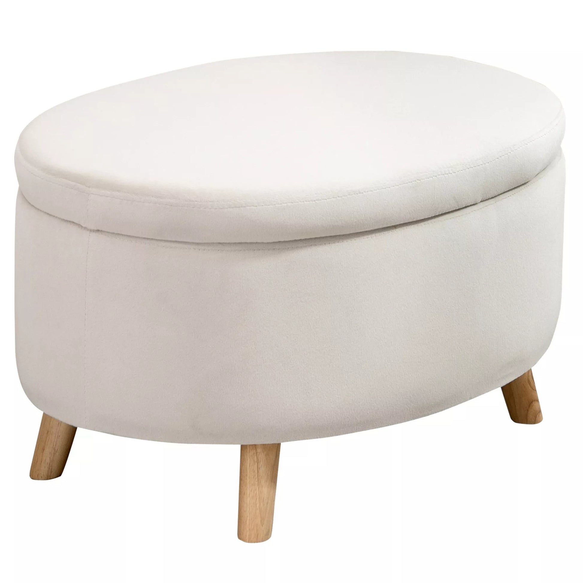 Sėdima suolas su daiktadėže, pufas, ovalo formos, aksomo išvaizdos, iki 120 kg, 71 x 51,5 x 42 cm, smėlio spalvos