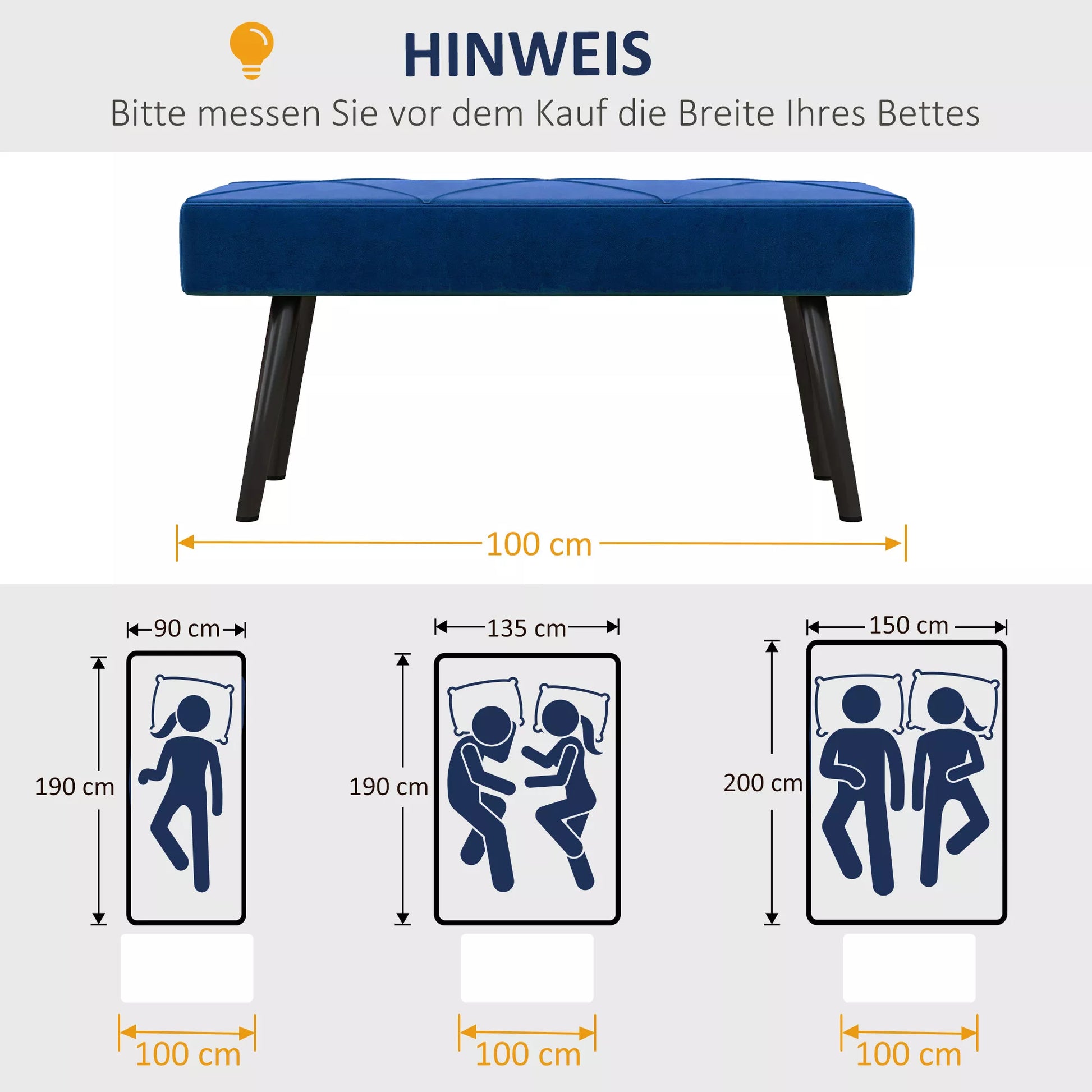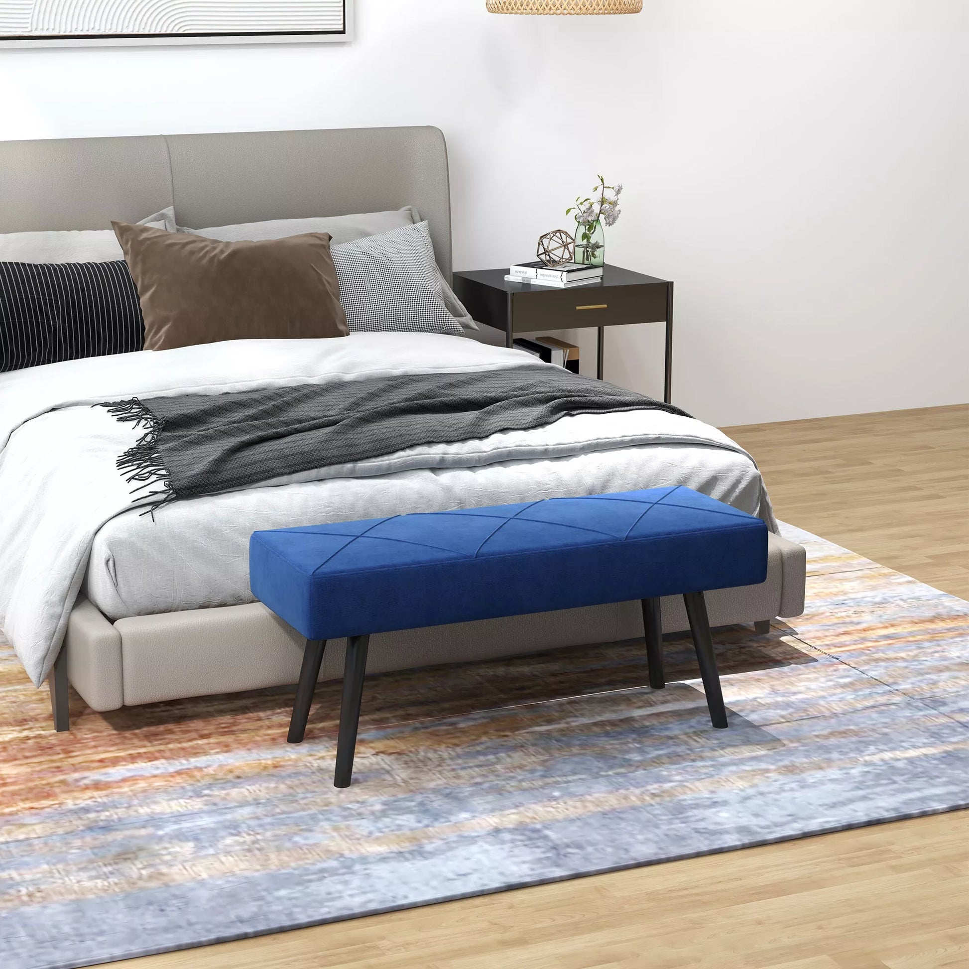 Minkštas suoliukas, miegamojo suoliukas, aksominė išvaizda, 100 x 36 x 45 cm, mėlynas
