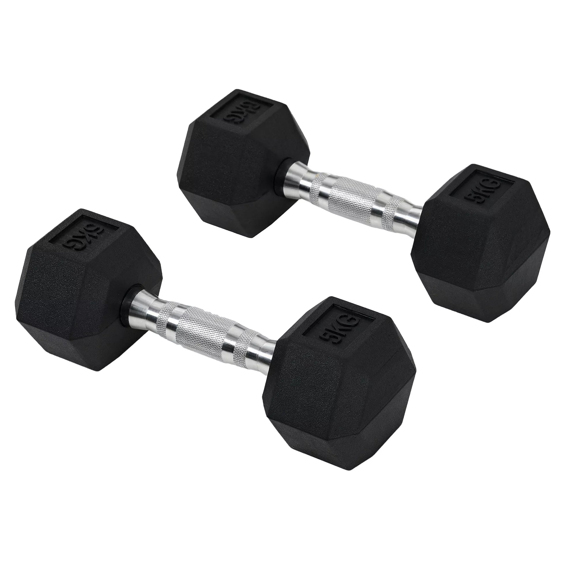 Šešiakampės hantelės, 2 vnt. rinkinys su rifliuota rankena, ketaus hantelių komplektas, 2 x 5 kg, hanteliai vyrams ir moterims, namams, sporto salei, jėgos treniruotėms