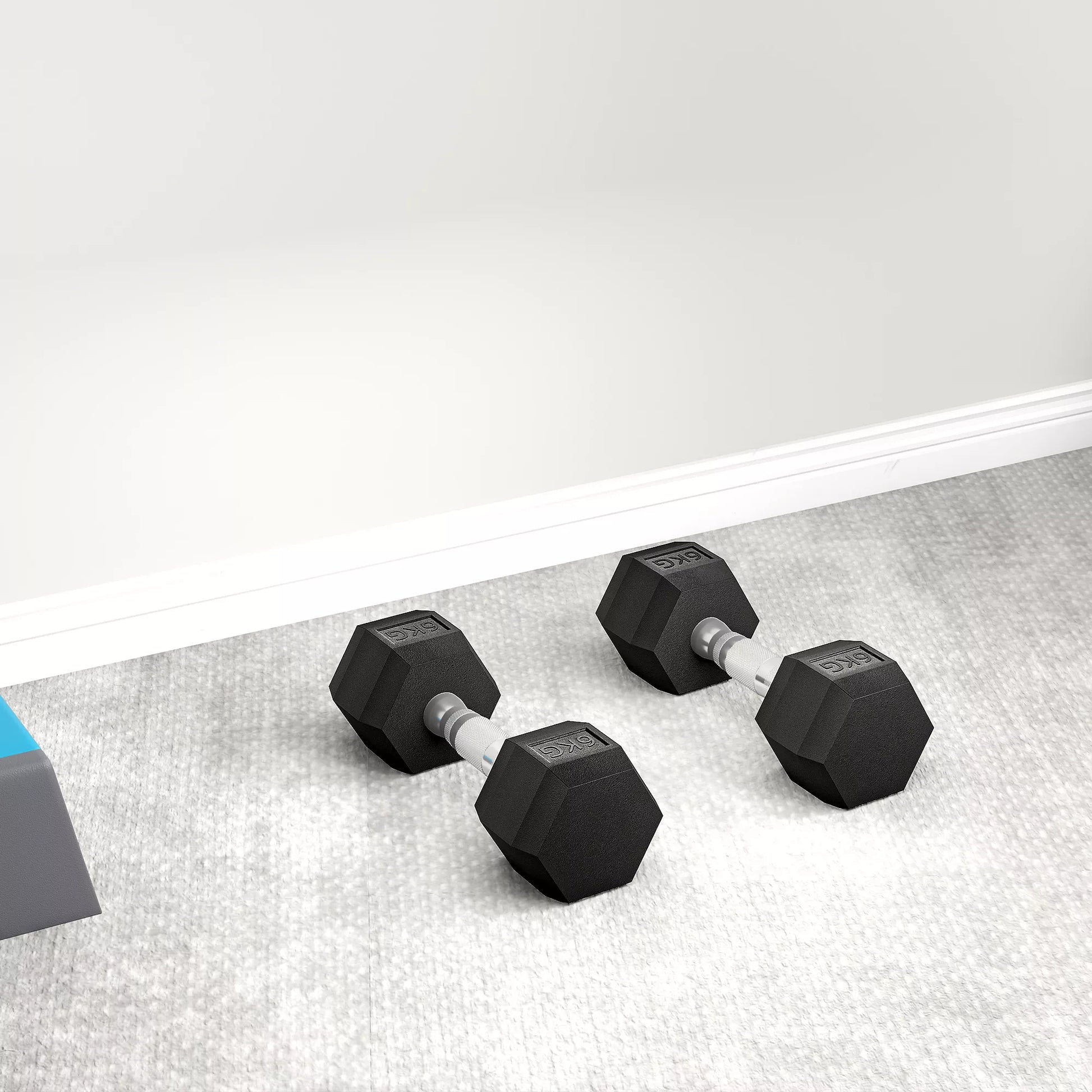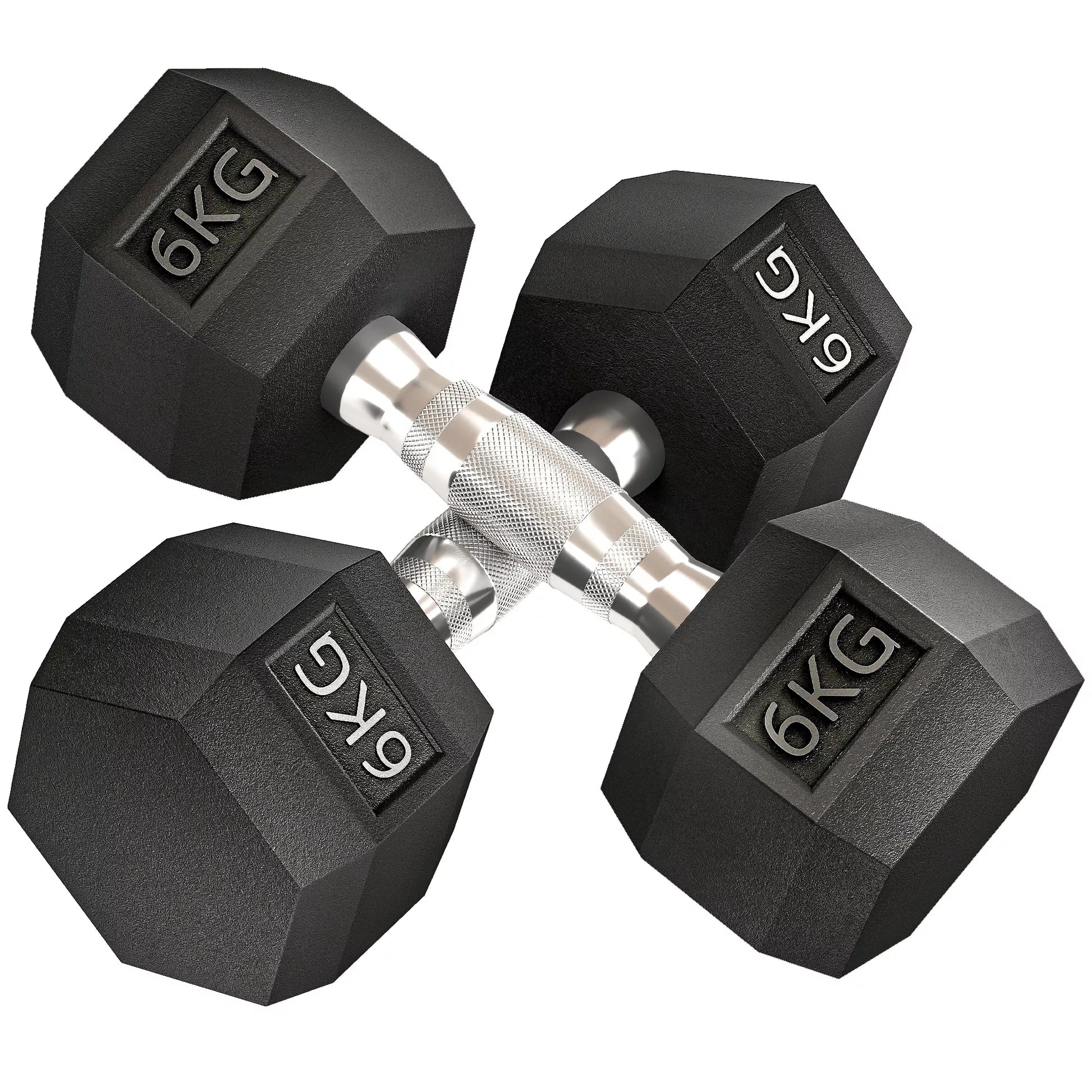 HOMCOM Šešiakampės hantelių, 2 vnt. rinkinys su rifliuota rankena, ketaus hantelių rinkinys, 2 x 6 kg, hanteliai vyrams ir moterims, namams, sporto salei, jėgos treniruotėms