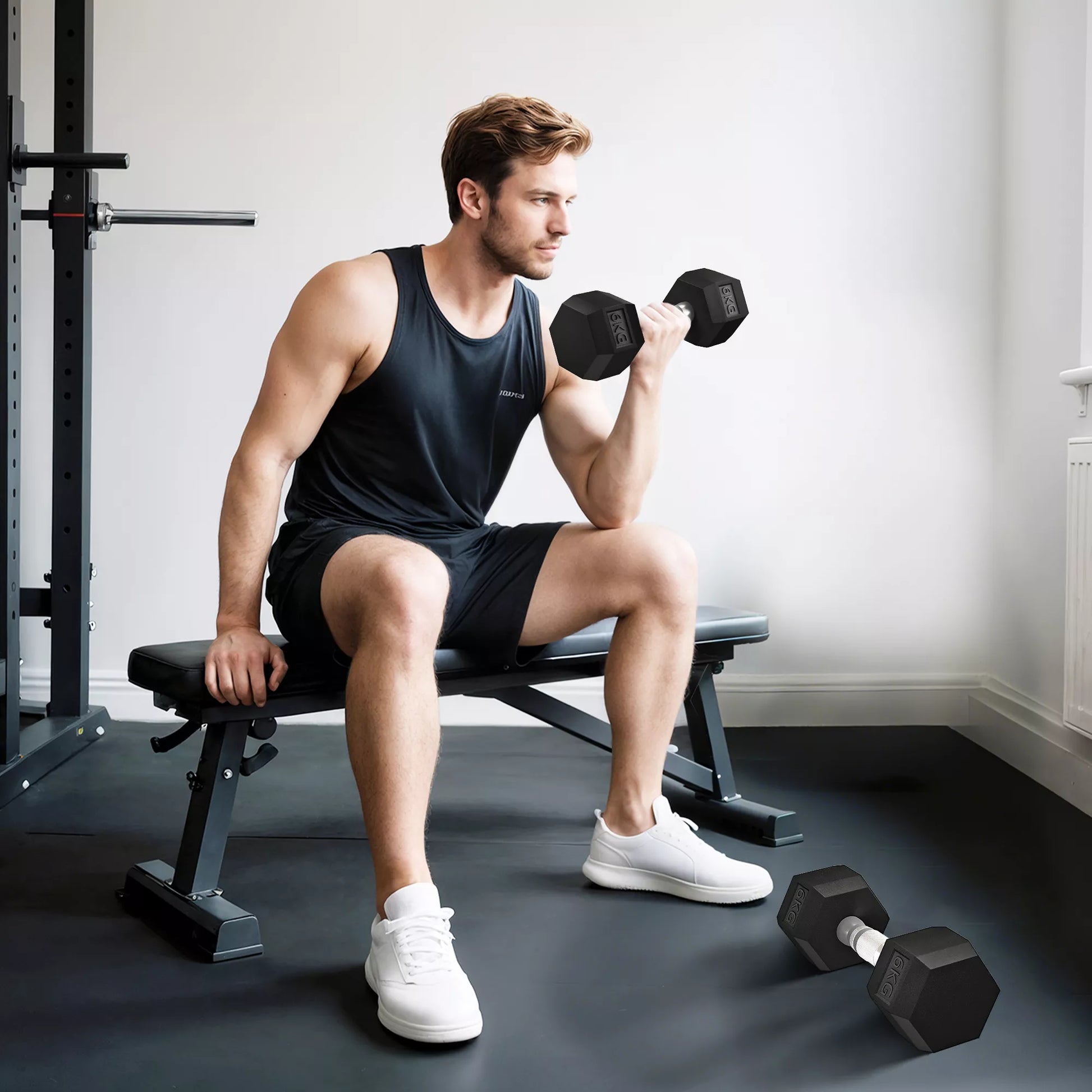 - ✔ Hantelės guminė medžiaga nepažeidžia grindų