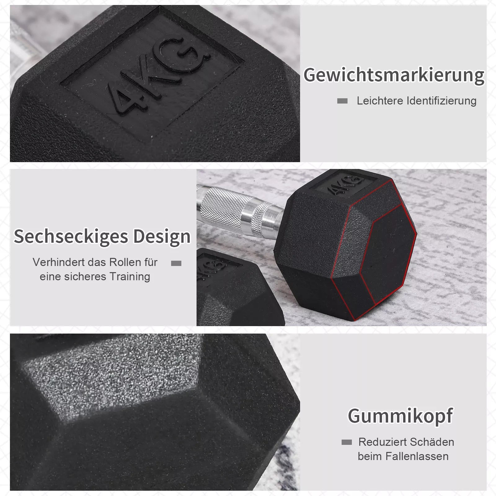 Šešiakampės hantelės, 2 vnt. rinkinys su rifliuota rankena, ketaus hantelių rinkinys, 2 x 4 kg, hantelės vyrams ir moterims, namams, sporto salei, jėgos treniruotėms