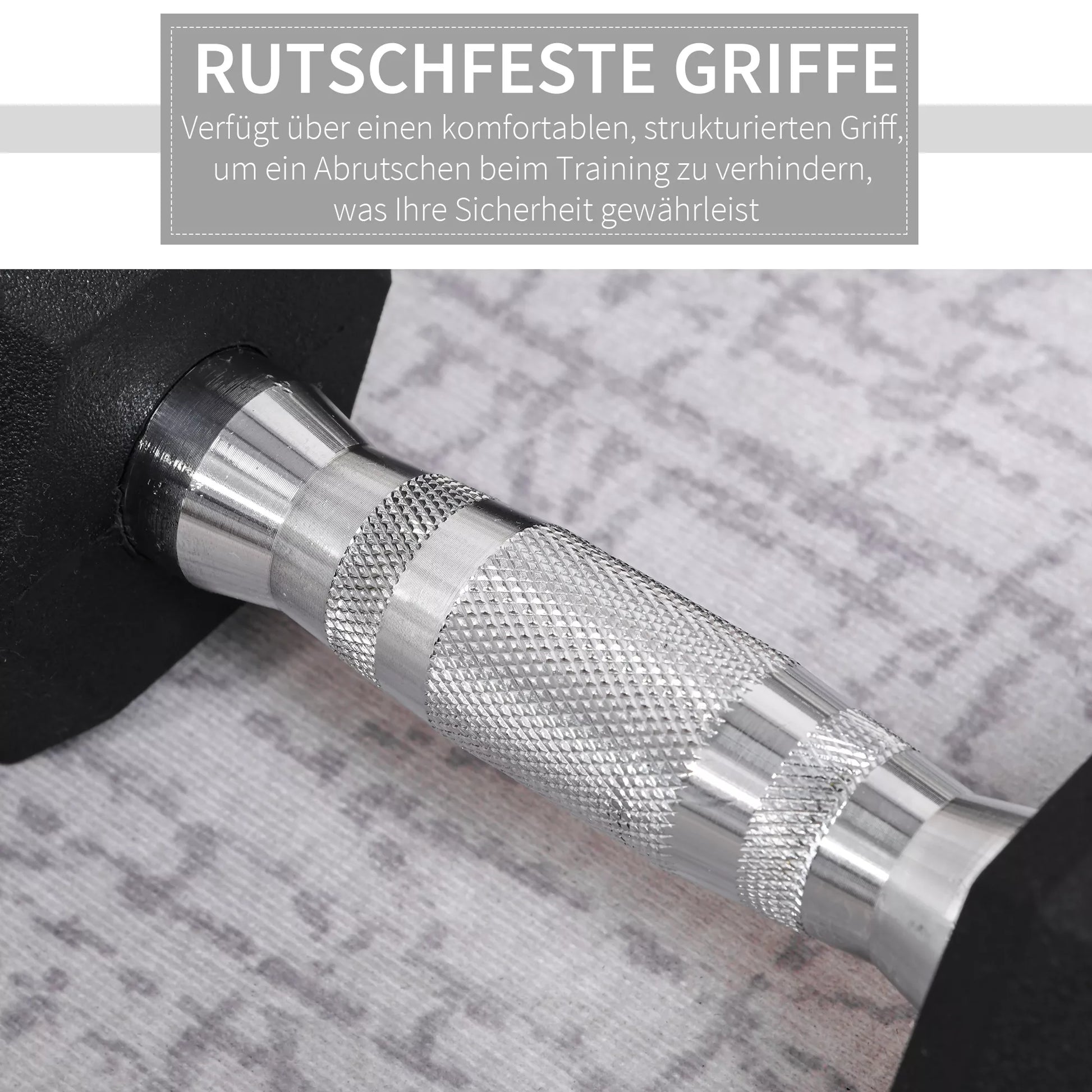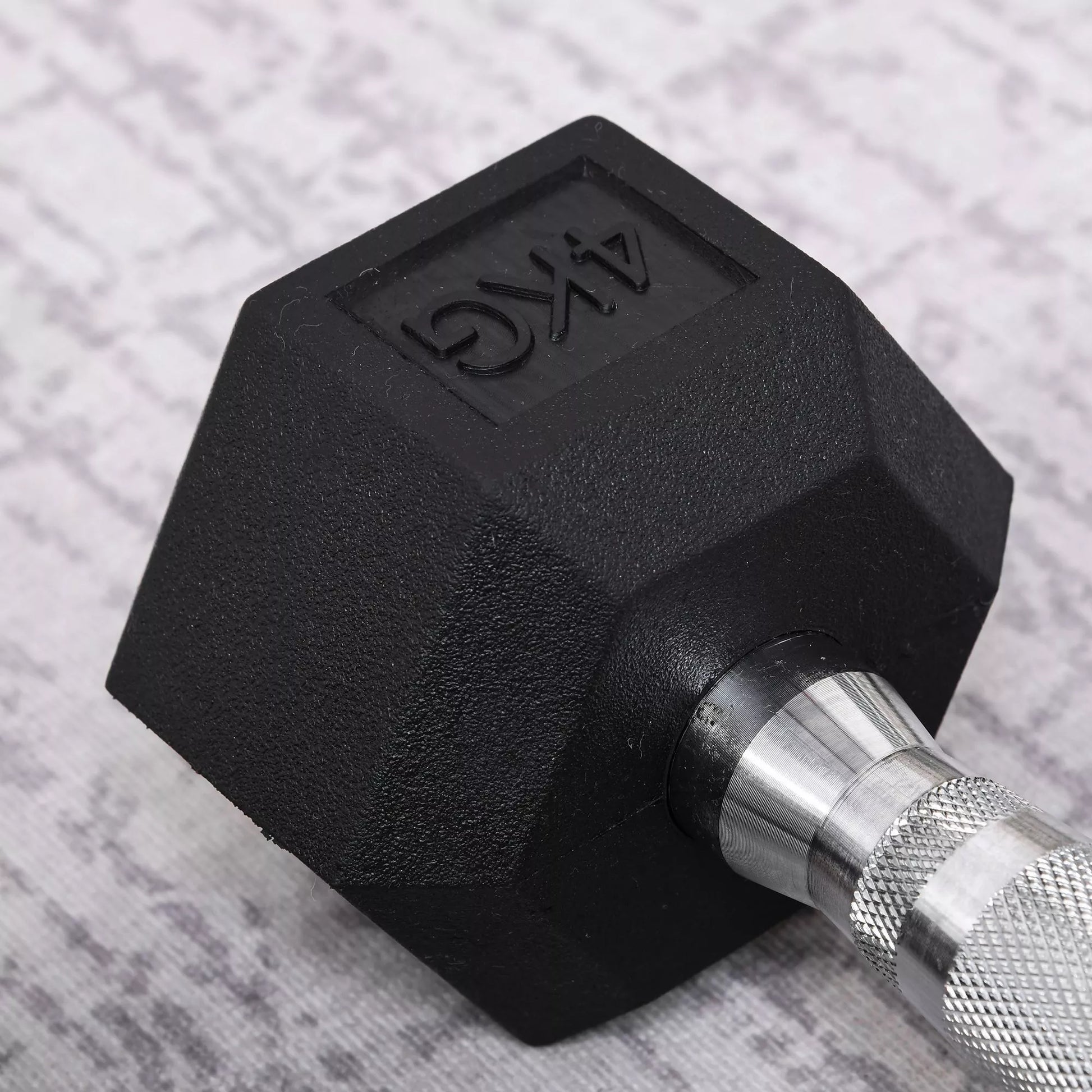 Šie šešiakampiai guminiai hanteliai puikiai tinka jūsų treniruočių režimui, tinkami naudoti namuose, sporto salėje ir biure. Kiekvienas hantelis pagamintas iš metalo ir gumos, jis yra patvarus ir nesibraižo grindų. Rantingumas garantuoja jūsų saugumą atliekant pamaininius hantelių lenkimus, pečių kėlimus, tricepso pratimus su hanteliais ir pan. Šis hantelių rinkinys yra idealus būdas atlikti treniruočių rutiną su hanteliais.