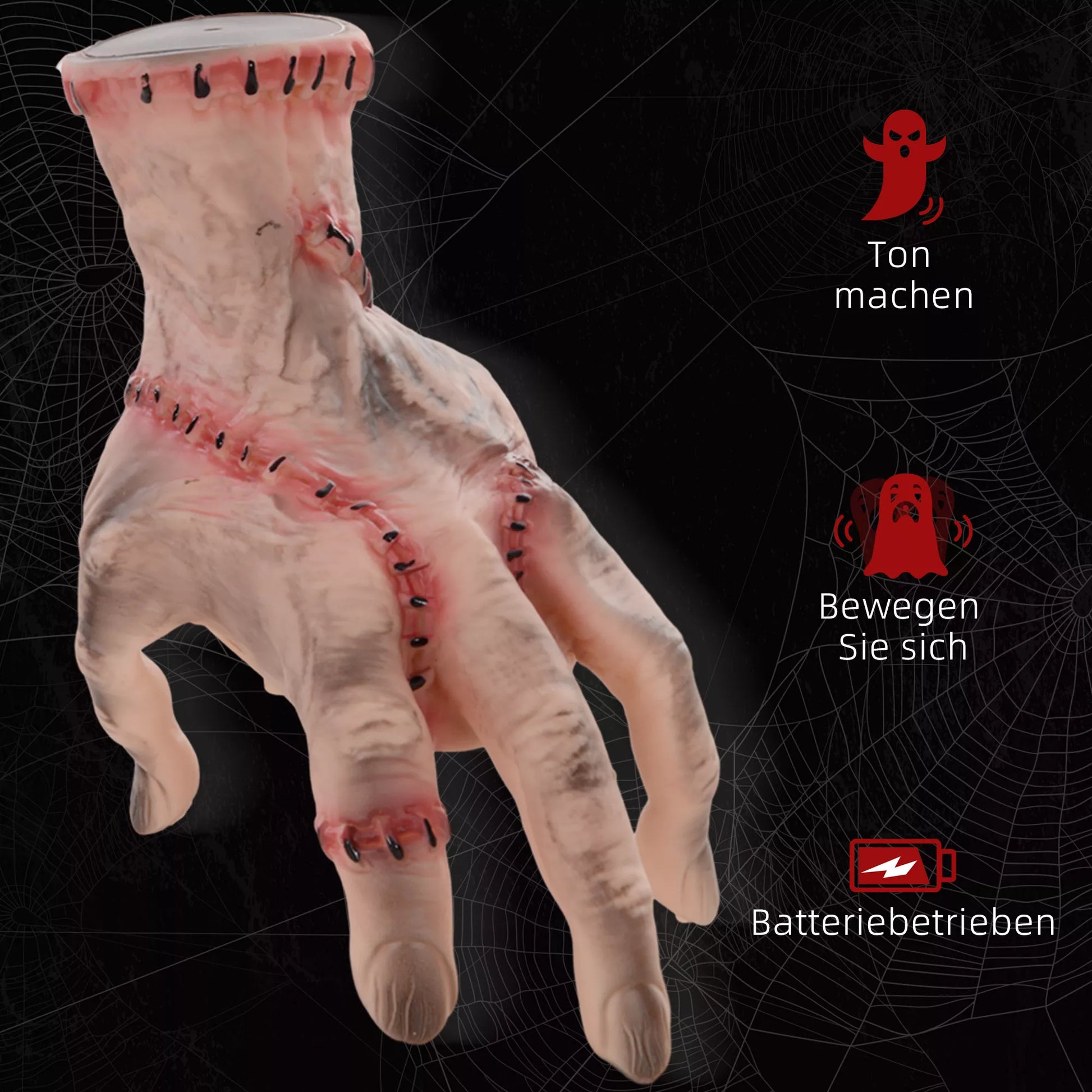 Prikelkite siaubą naudodami HOMCOM animuotą Helovino dekoraciją, turinčią realistišką randuota ranką. Aktyvuojama prisilietus ar per garsius šauksmus, ši grėsminga figūra juda į priekį, skleisdama kaukšinčių žingsnių garsą – tikras akcentas bet kokiai baisiai Helovino puošmenai ar vaiduoklių namams.