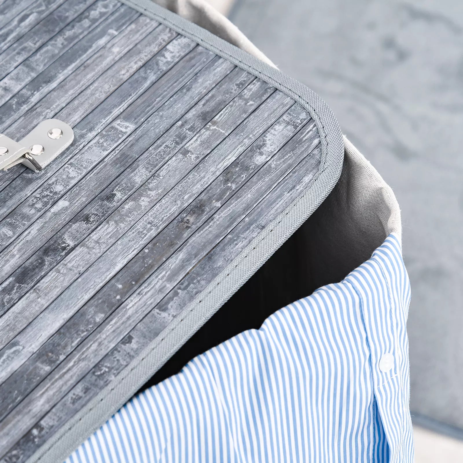 Labai gražus skalbinių krepšys iš tikro bambuko su erdvia laikymo vieta! Natūrali bambuko danga yra lengvai prižiūrima ir išlaiko formą. Todėl krepšys tinka drėgnose patalpose, tokiose kaip vonios kambarys ir rūsys. Lengvai nuimamas drobinis skalbinių maišas yra pralaidus orui ir atsparus dilimui. Kartu su dviem rankenomis galite patogiai nunešti nešvarius drabužius į skalbyklą. Dėl dangčio ir dugne esančių skylučių nesijaudinkite dėl pelėsio ir drabužių kvapų!