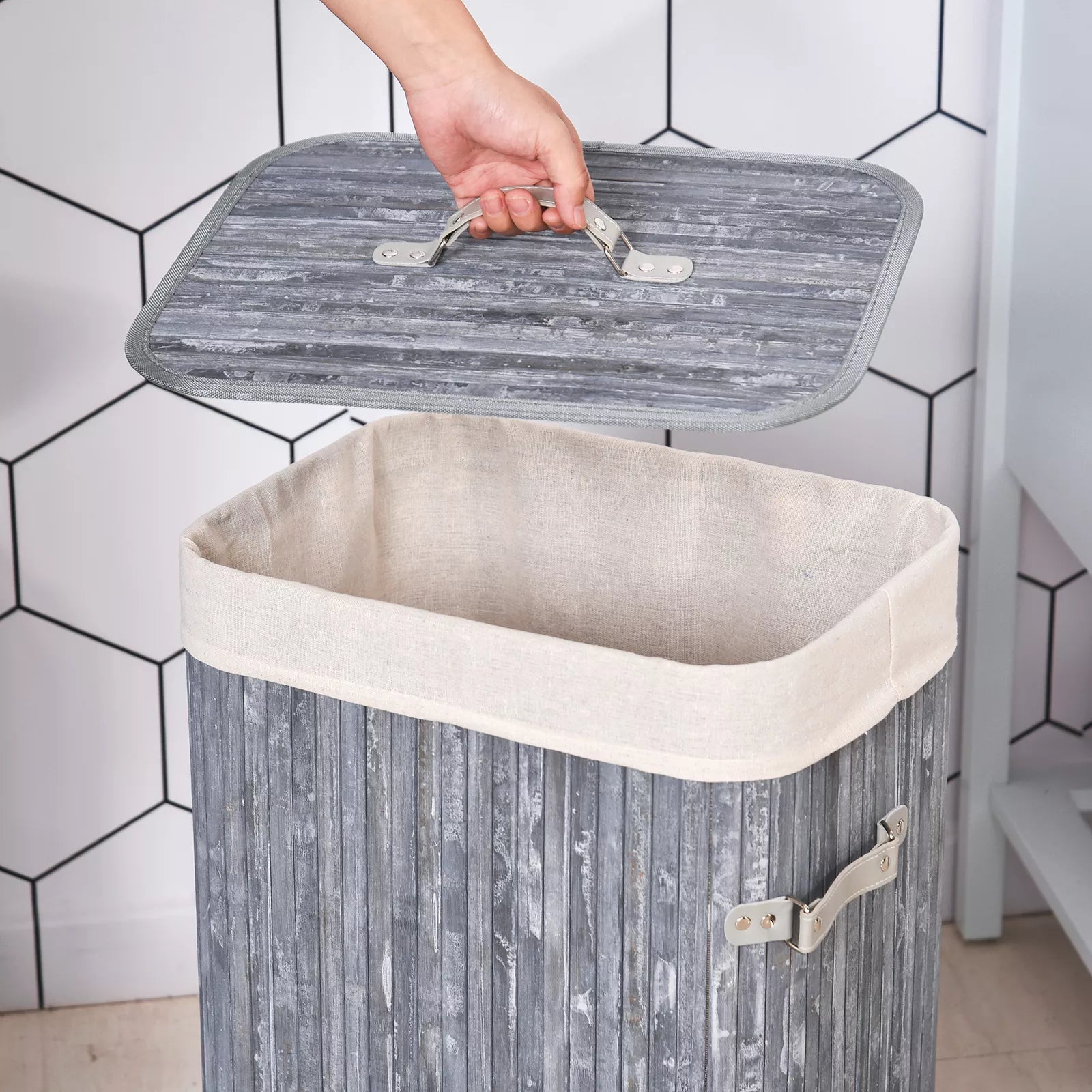 Siauras skalbinių krepšys su dangčiu 72L, skalbinių surinktuvas su rankena, nuimamu skalbinių maišu, skalbinių dėžė skalbyklai, miegamajam, vonios kambariui, pilkas