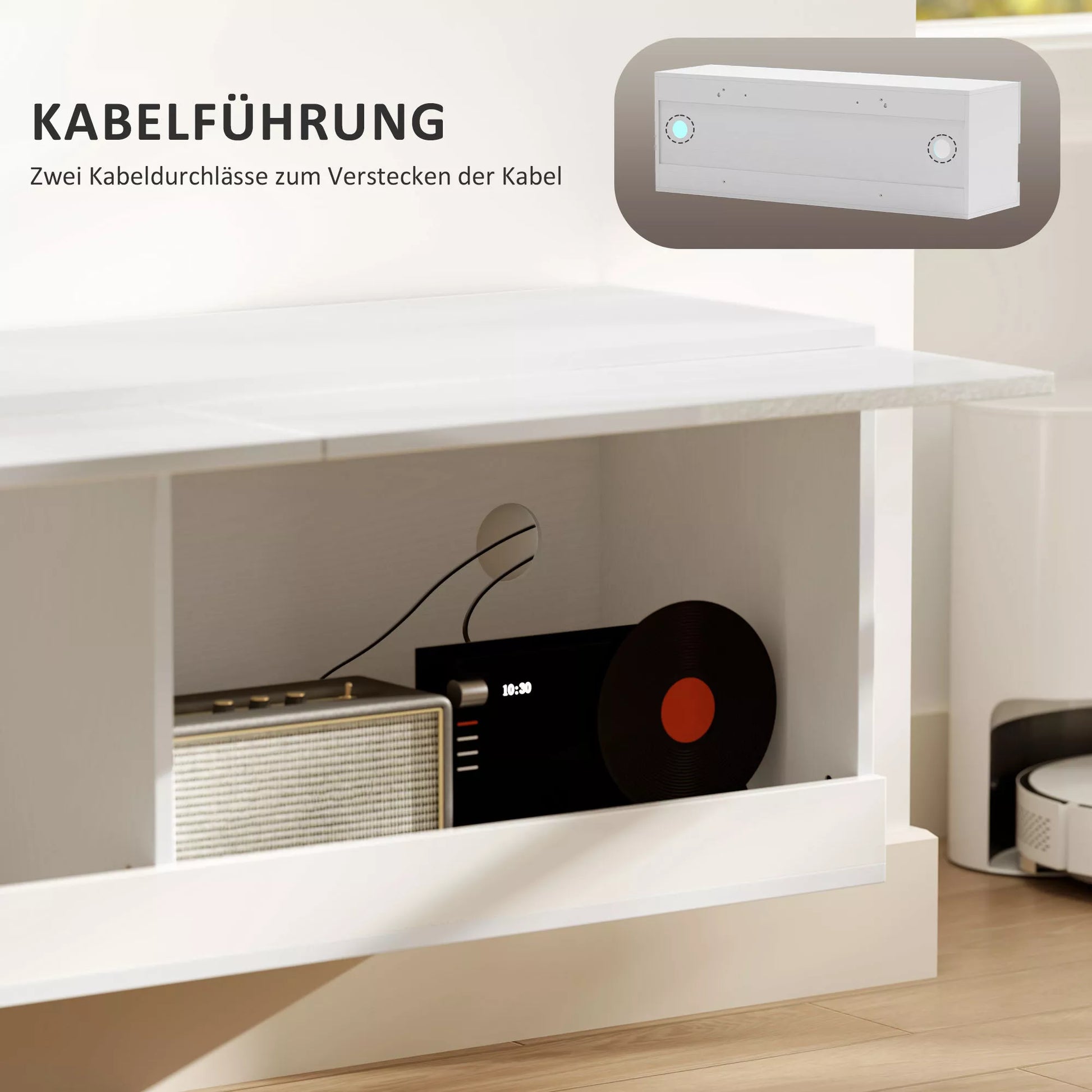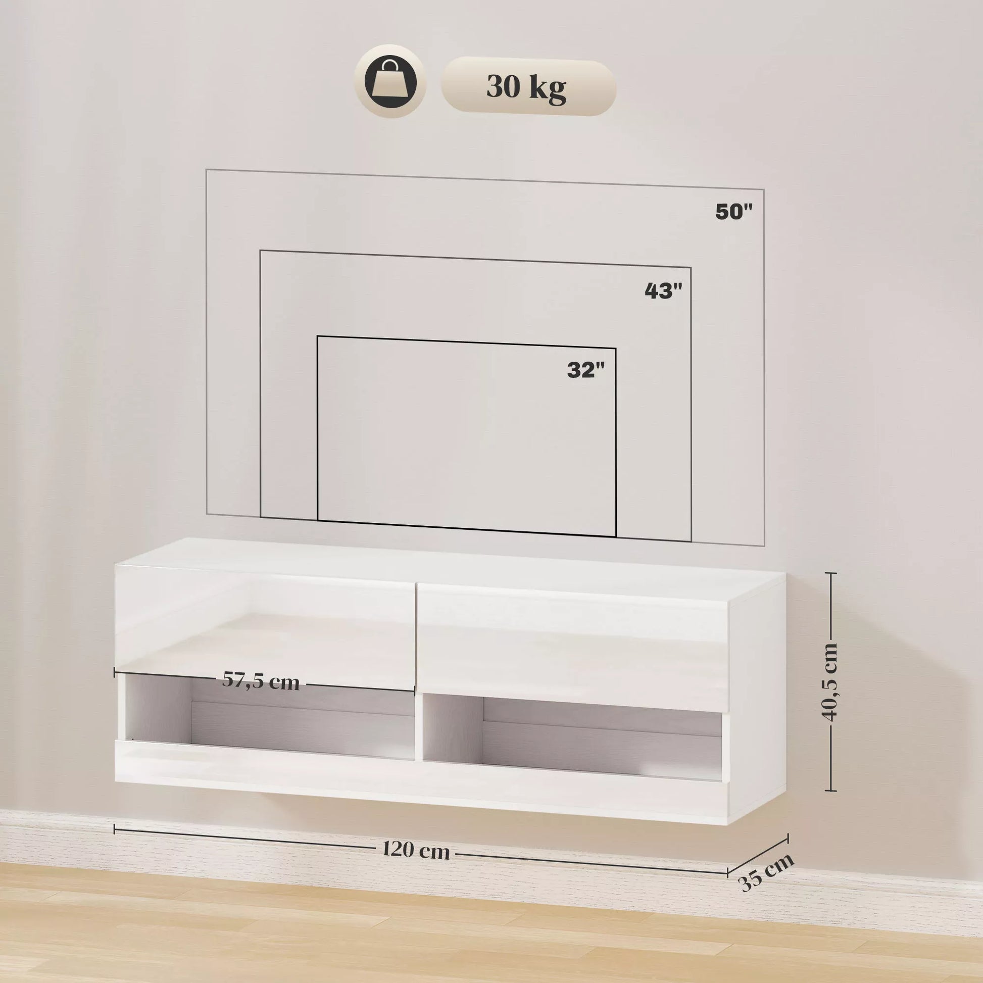 Sieninė TV spintelė su LED apšvietimu, 16 mirksėjimo režimų, atviros lentynos, 120 x 35 x 40,5 cm, balta