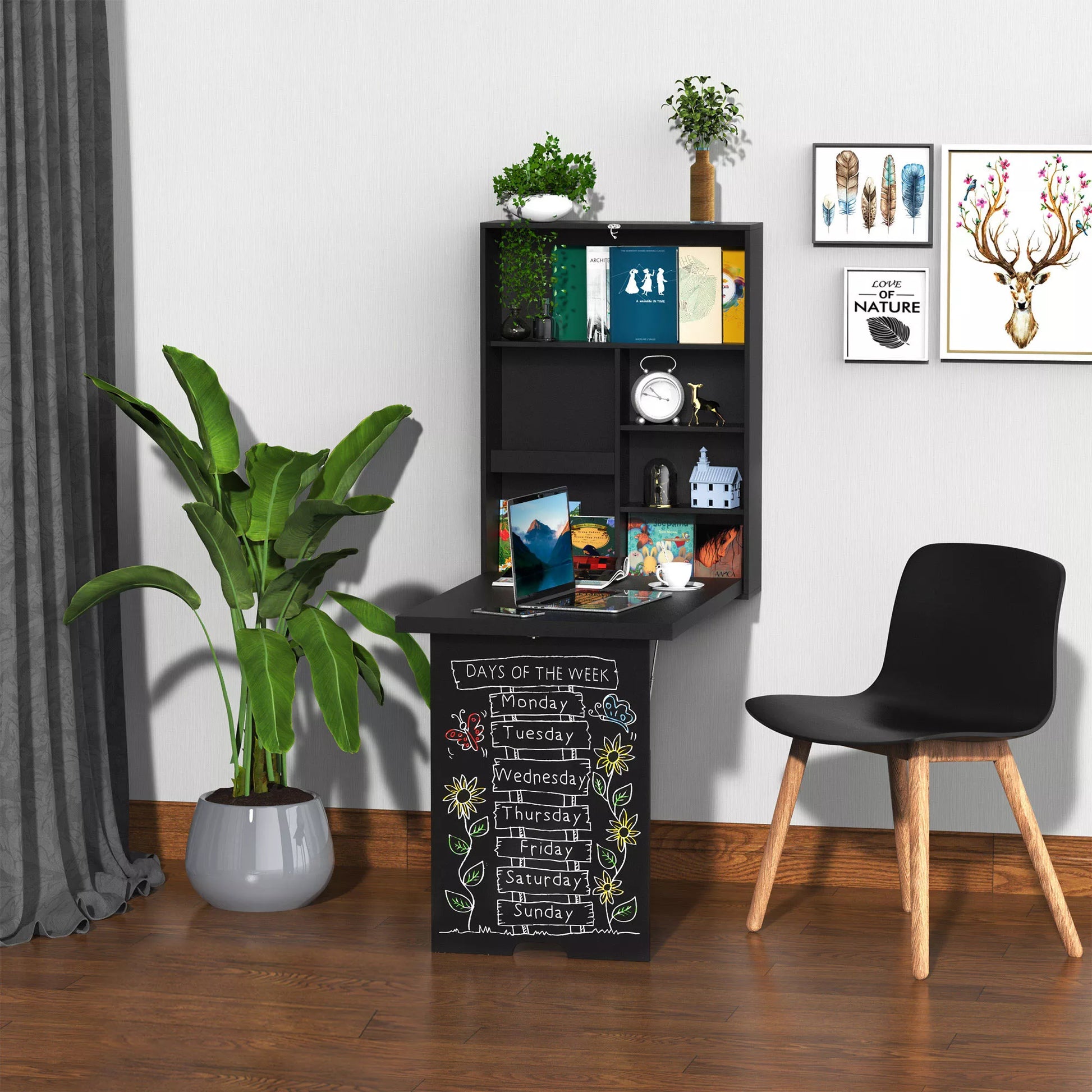 HOMCOM Sieninis sulankstomas rašomasis stalas su rašomuoju paviršiumi, 60 cm x 94,5 cm x 147 cm, juodos spalvos, HOMCOM