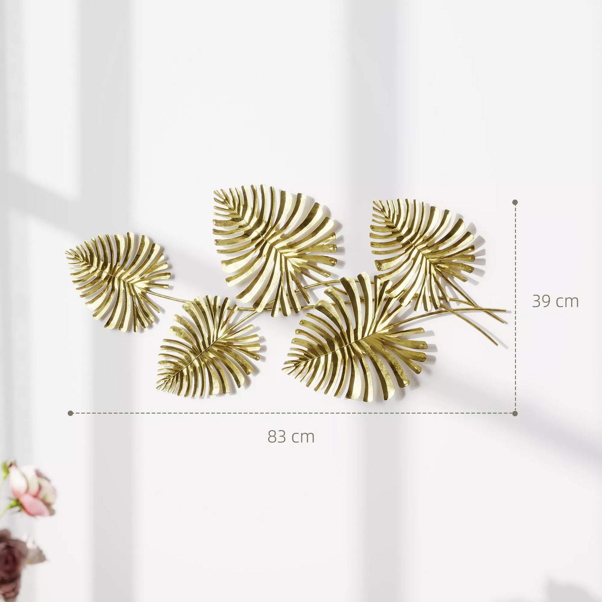 Metalinis sienų dekoracijų rinkinys, lakuotas paviršius, lapo forma, aukso spalvos