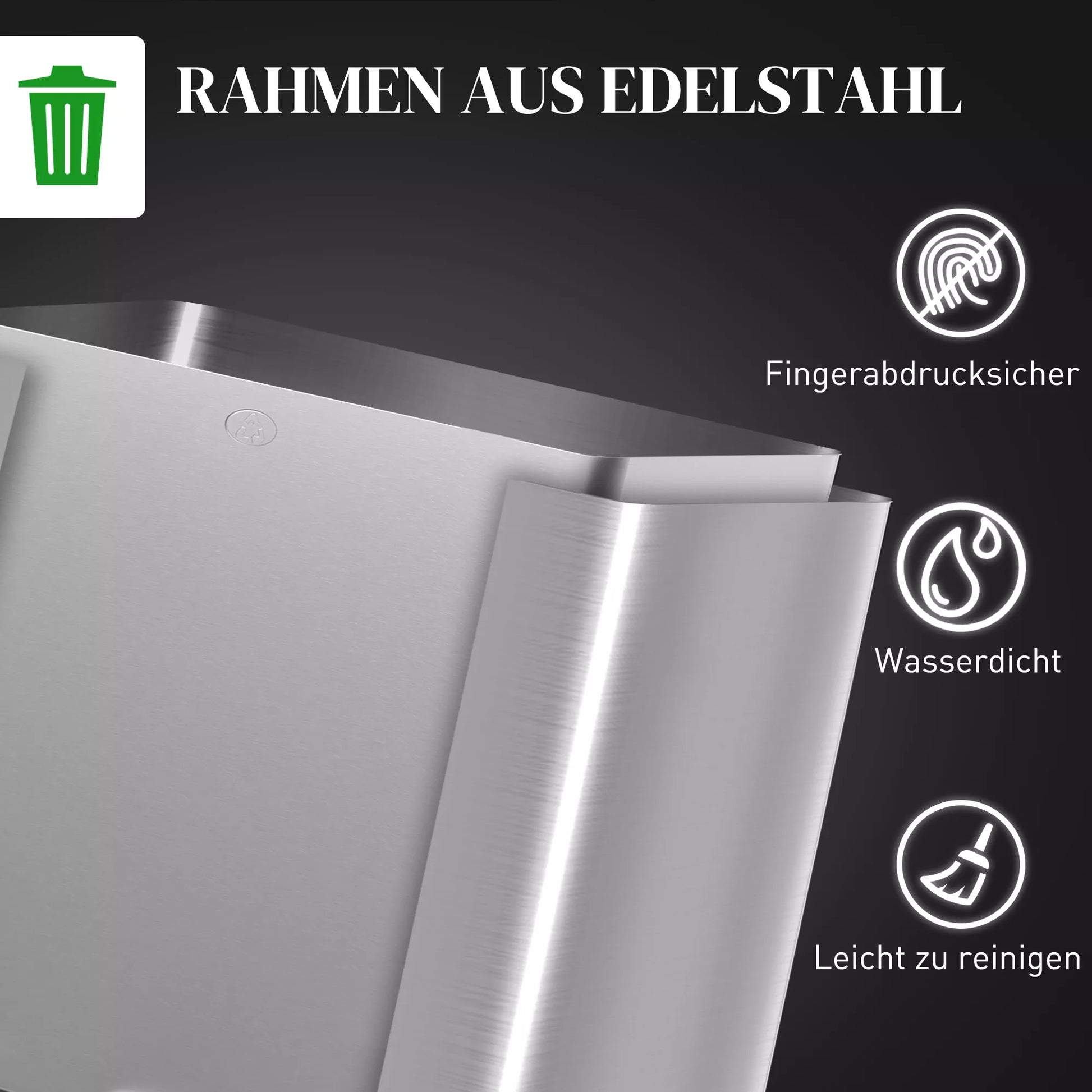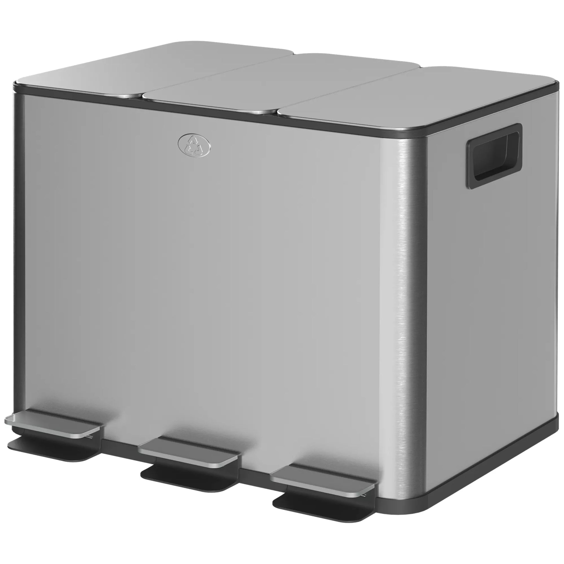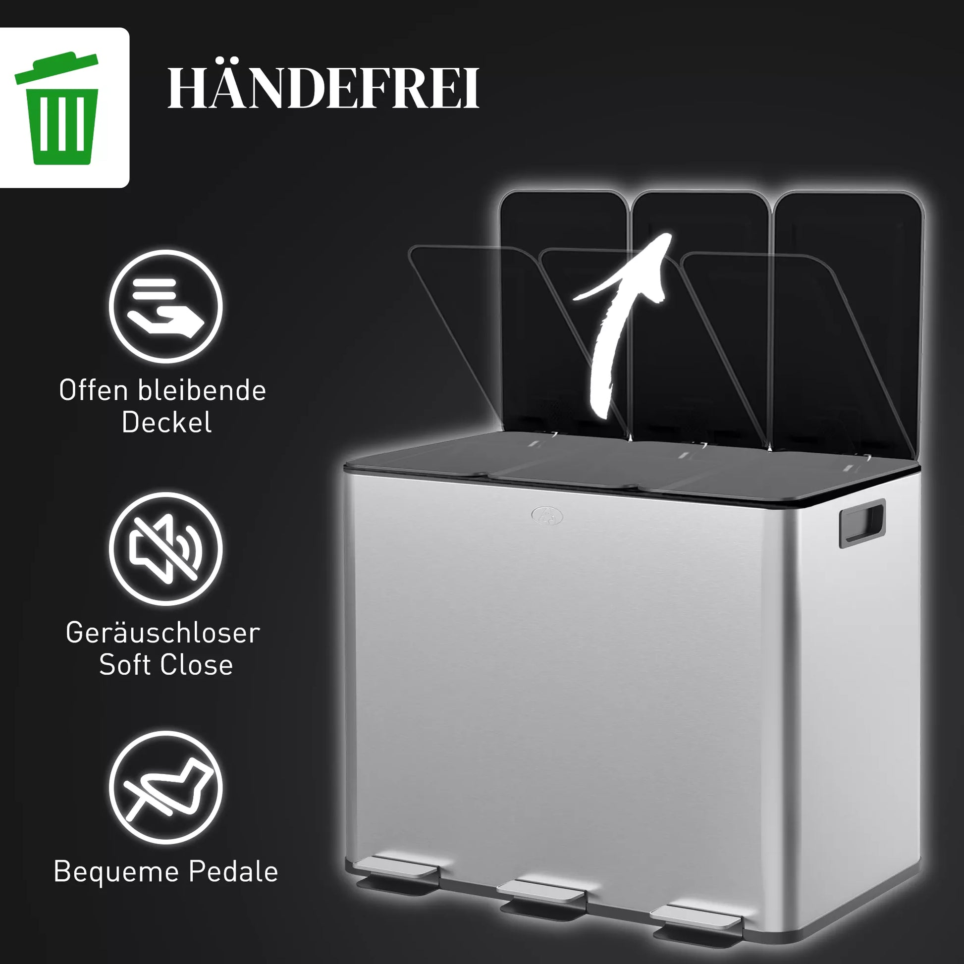 Šiukšliadėžė su 3 x 20 L skyriais, su kvapų neutralizavimo dangčiu, atspari pirštų atspaudams, su švelniu uždarymu, išimama, sidabrinė