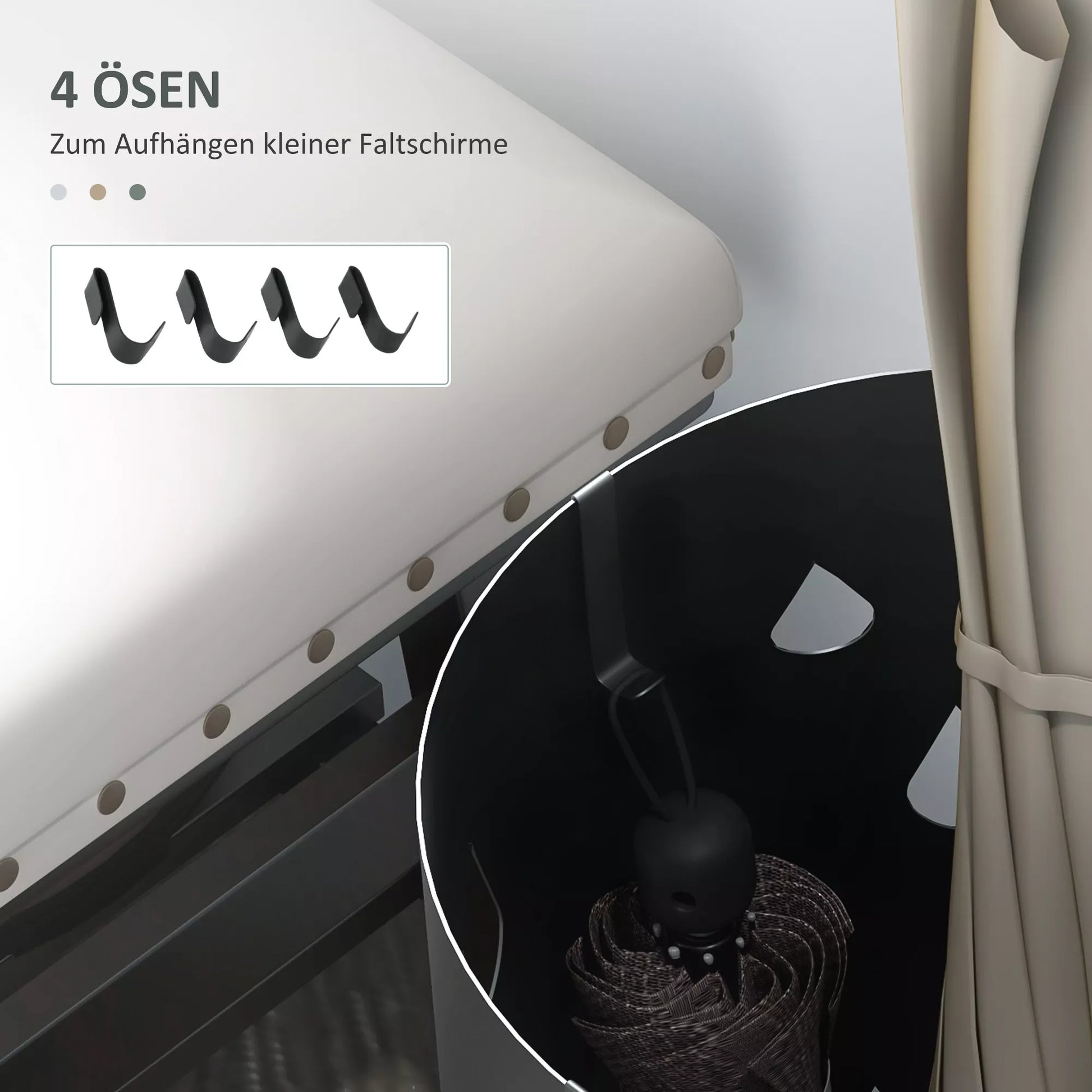- ✔ Vietos dviem dideliems skėčiams, keturi kabliukai mažesniems skėčiams