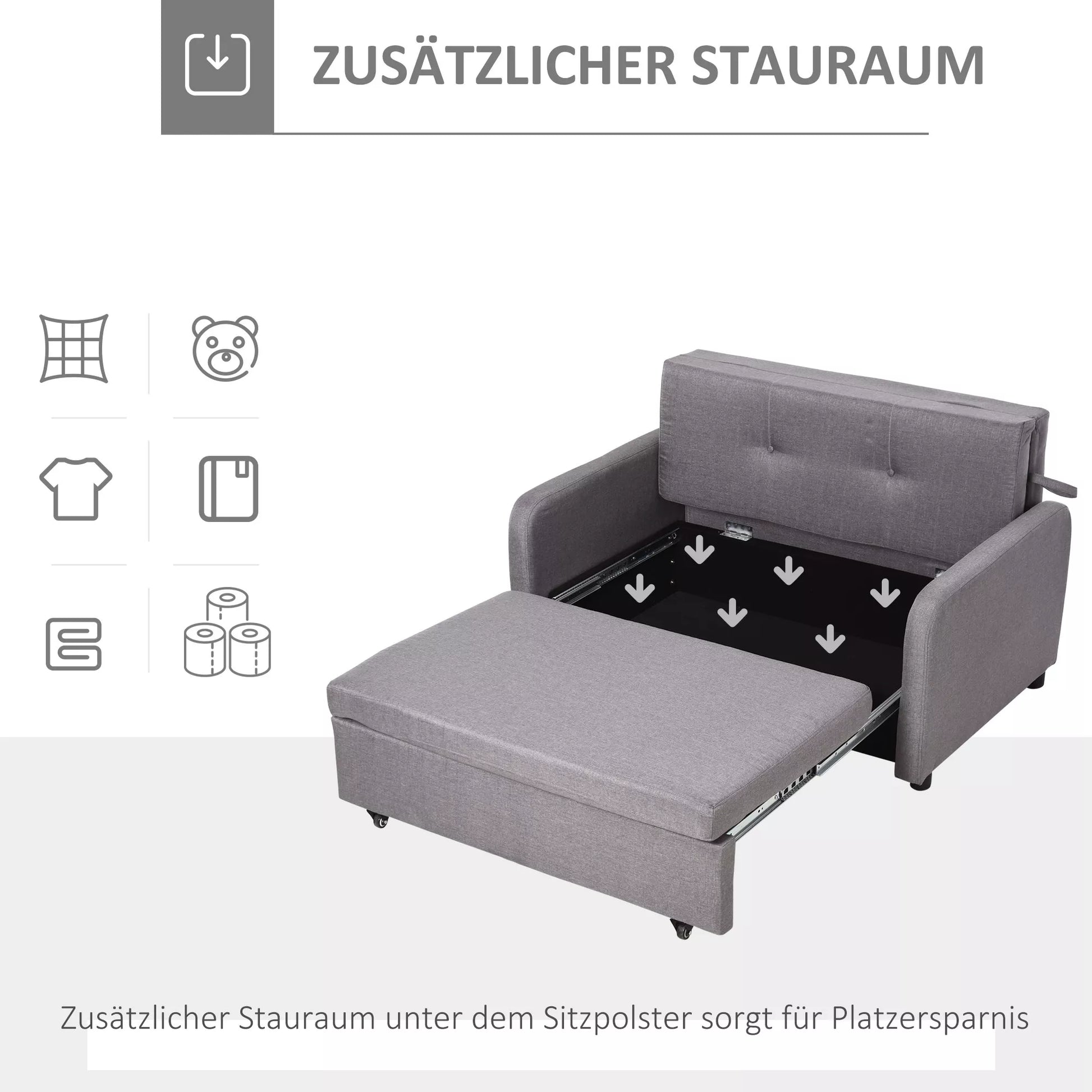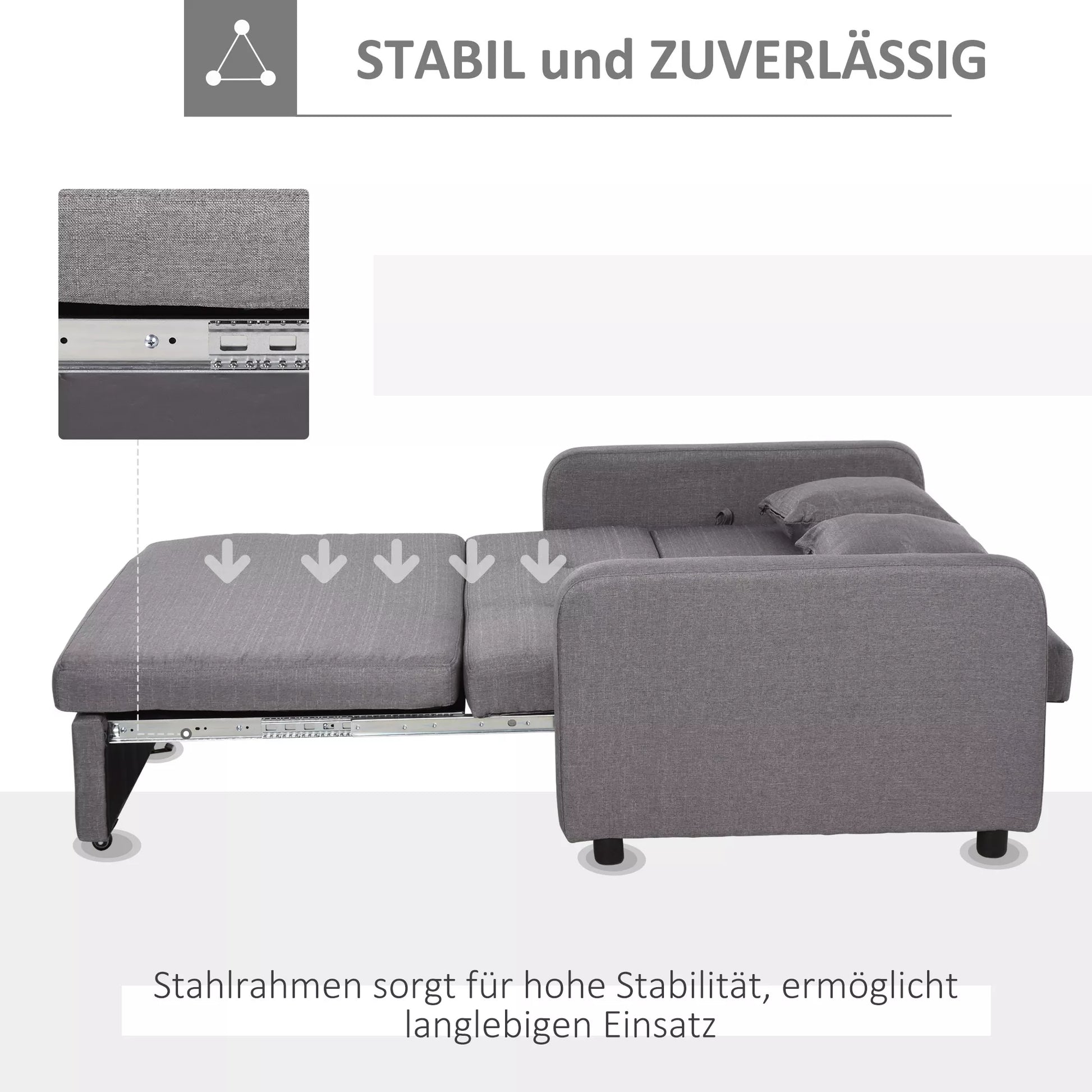 - ✔ 2-in-1 mieganti sofa gali būti naudojama kaip sofa arba kaip laikina lova