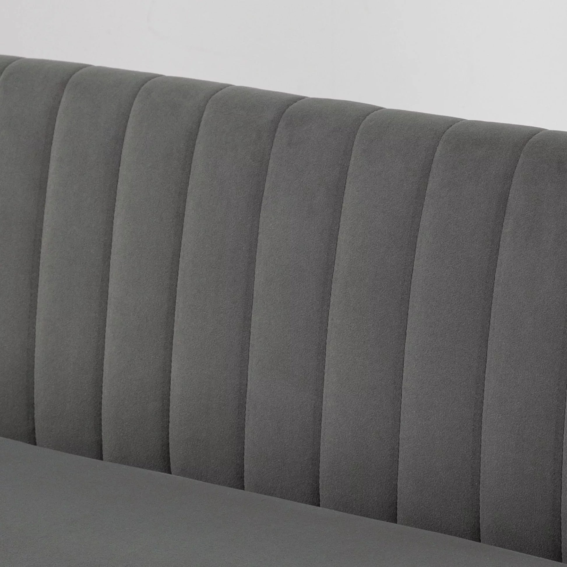 Retro dizaino 2 vietų sofa, medinės kojelės, 117 cm x 56,5 cm x 77 cm, tamsiai pilka