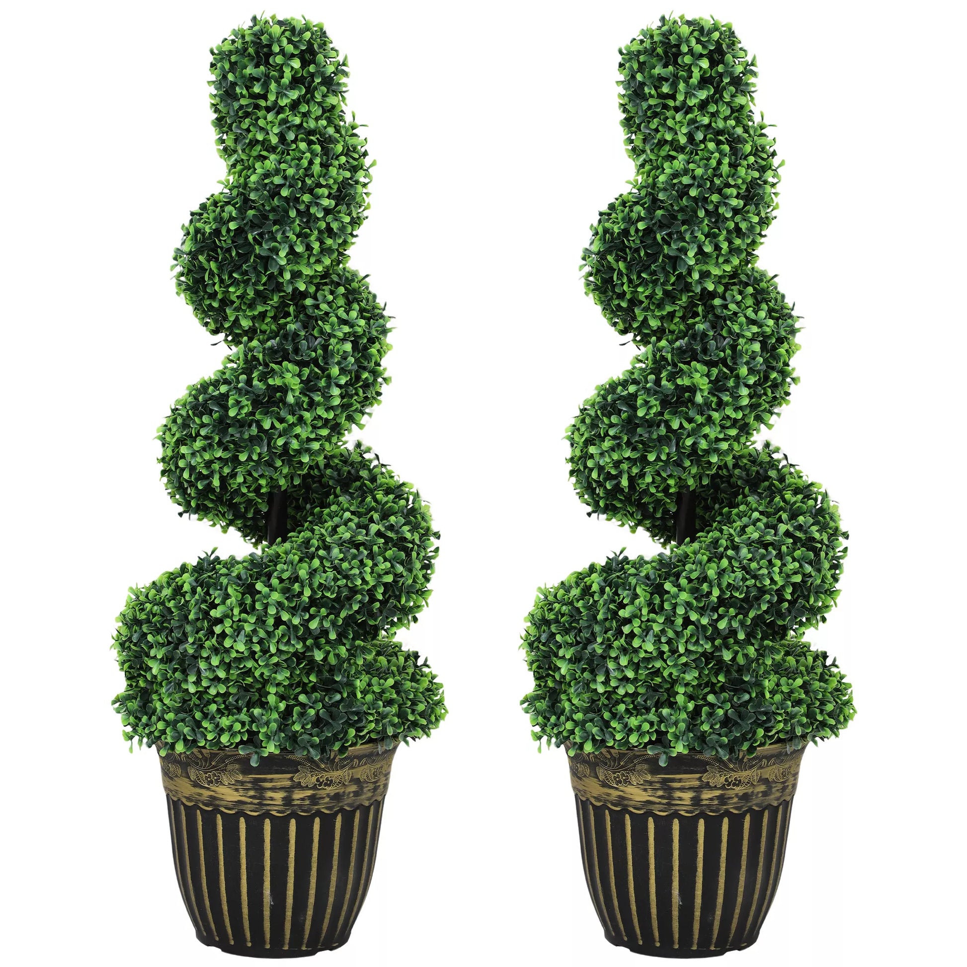 - ✔ Dviejų stilingų, spiralinių dirbtinių buksmedžių rinkinys