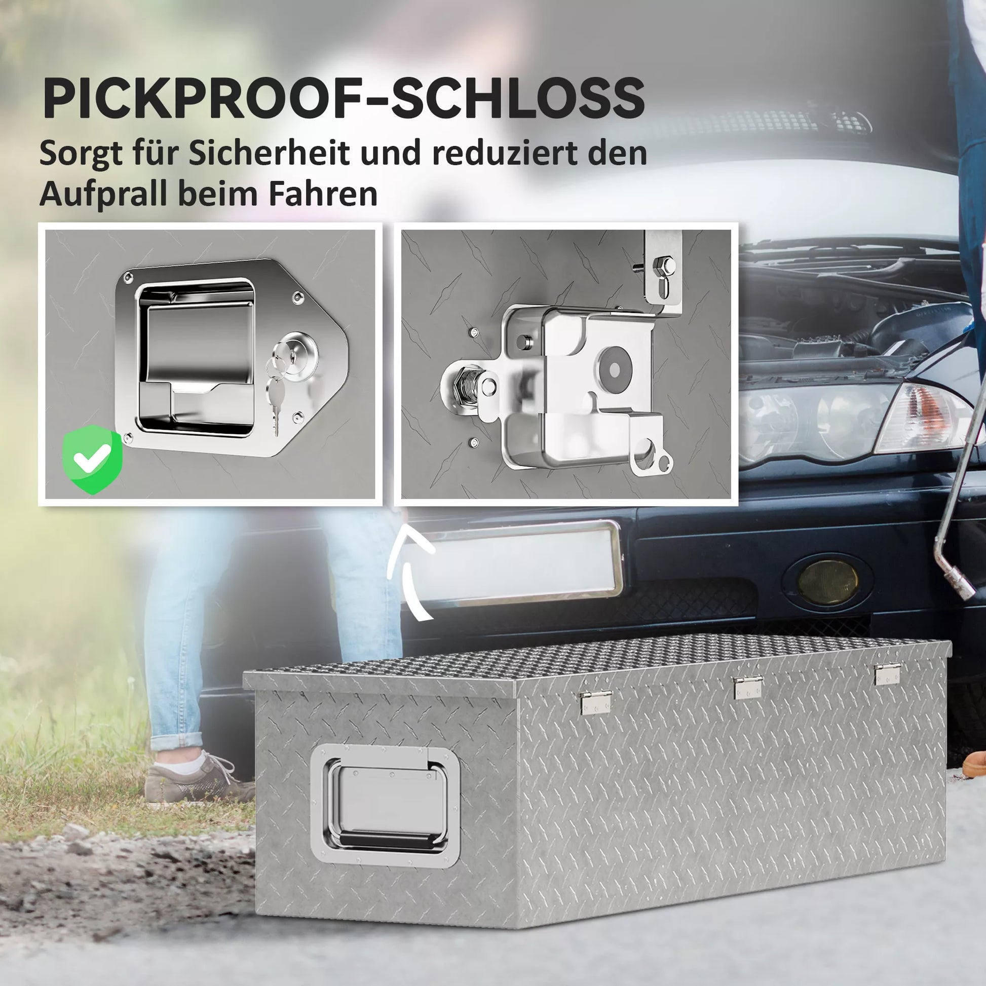 HOMCOM Stabili aliumininė laikymo dėžė su šoninėmis rankenomis, spyna ir raktais, įrankių dėžė, 99 x 33 x 25,5 cm
