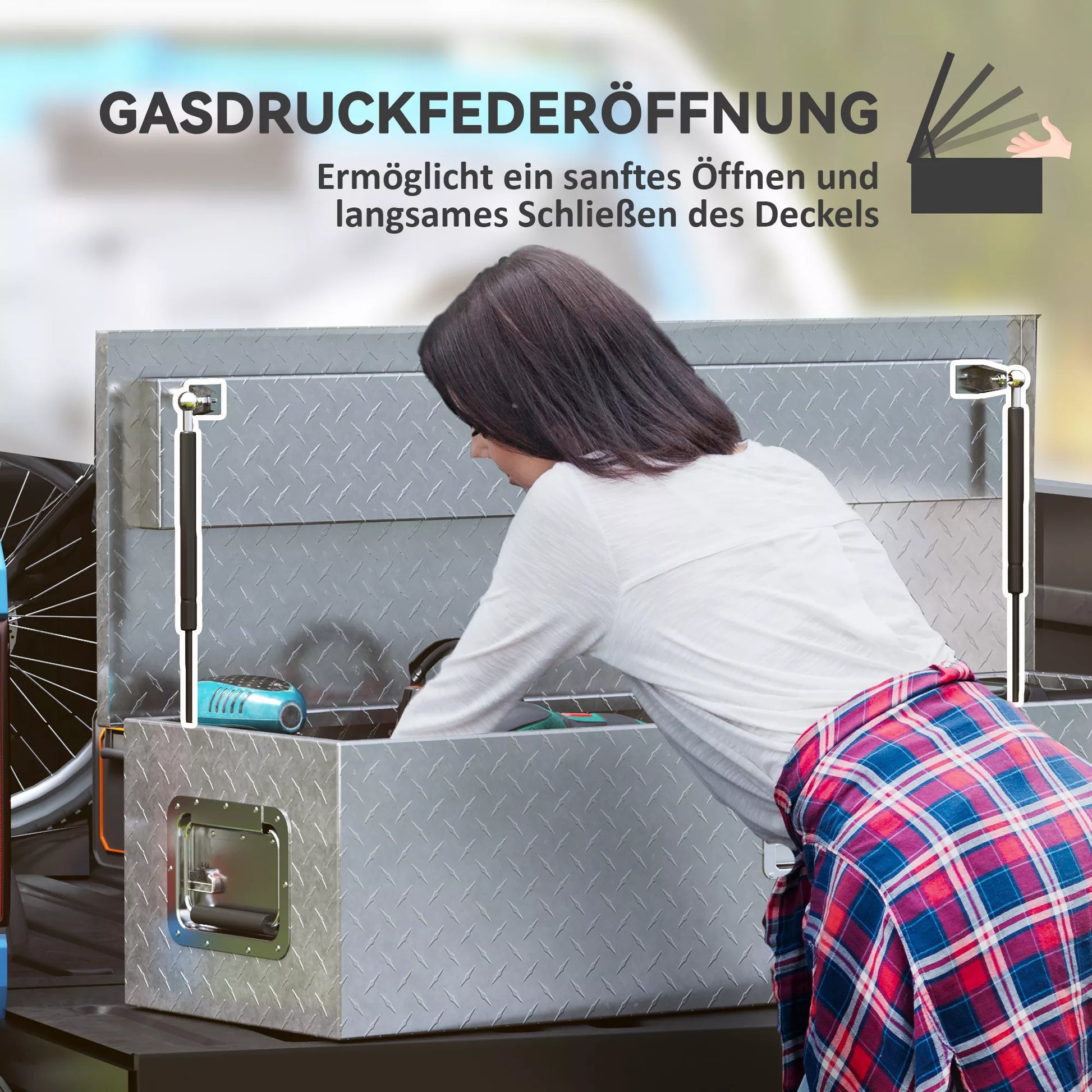 Ieškote praktiškos laikymo dėžės kelionėms? Tvirtas HOMCOM transportavimo dėklas, dėl aliuminio konstrukcijos ir atsparumo oro sąlygoms, užtikrina optimalią jūsų daiktų apsaugą. Dėl užrakinamo, talpaus dizaino jis tinka daugeliui priekabų tipų ir yra būtinas, norint saugiai bei tvarkingai laikyti savo įrangą.