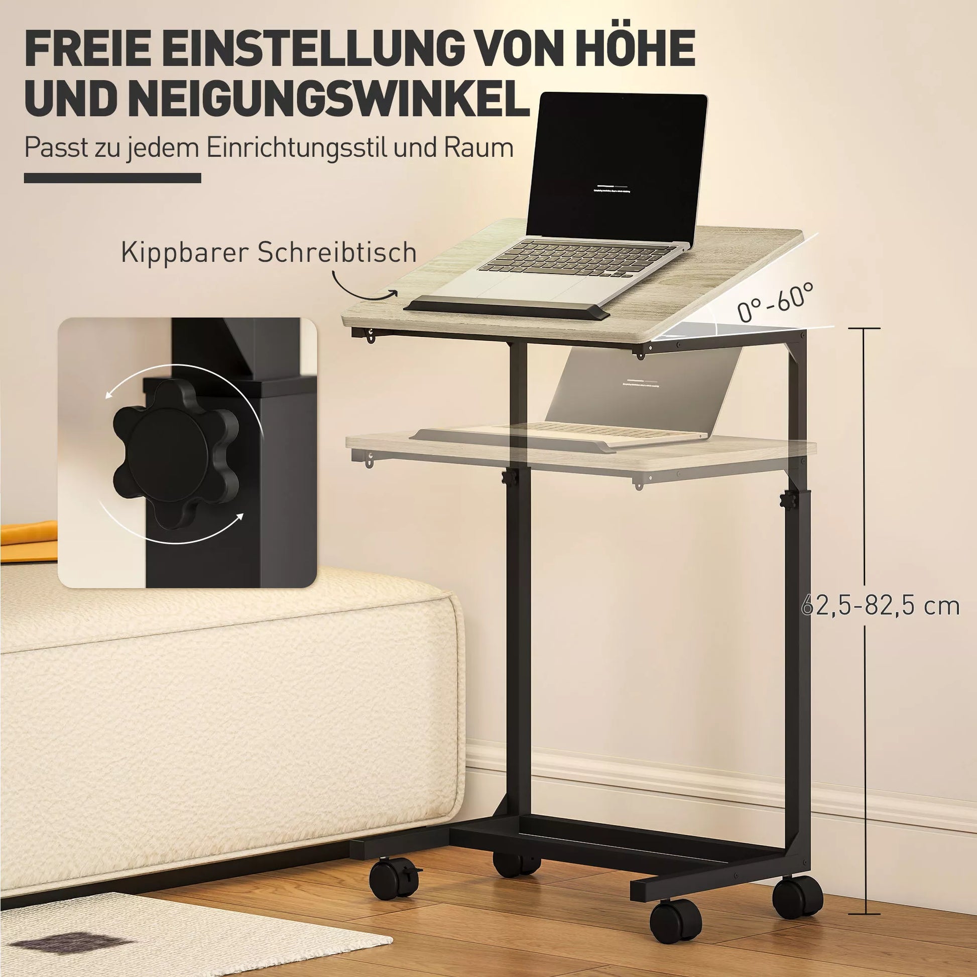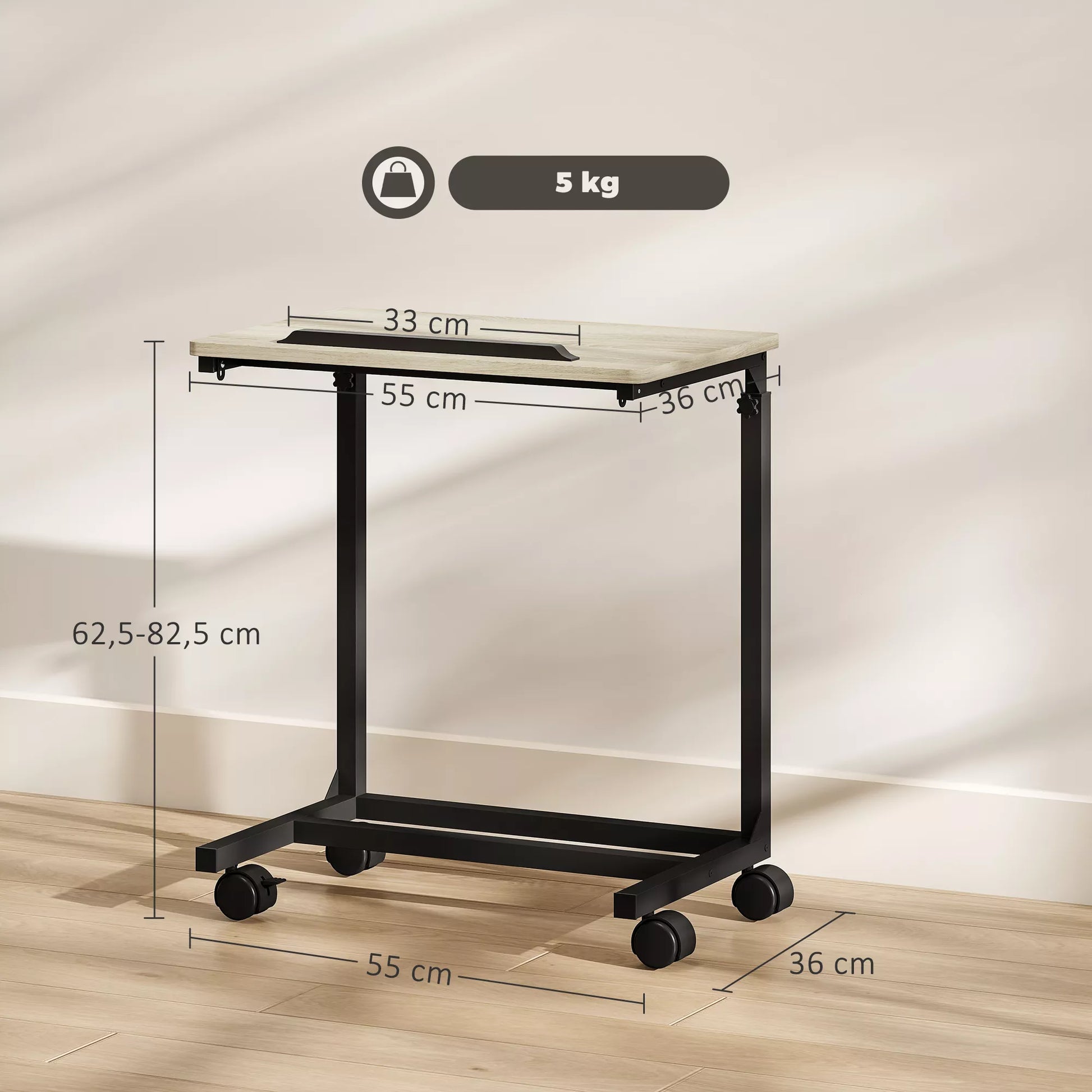 Reguliuojamo aukščio stalas puikiai prisitaiko – kaip staliukas šalia sofos kavai, kaip pakreipiama darbo vieta virš lovos ar kaip stabilus palaikymas poilsiui. Be vargo nustatykite aukštį nuo 62,5-82,5 cm ir pakreipkite stalviršį iki 60°, kad užtikrintumėte optimalų komfortą. Dėl fiksuojamų ratukų jį galima saugiai perkelti tarp kambarių, užtikrinant stabilumą ir tęstinumą nuo ryto iki vakaro.