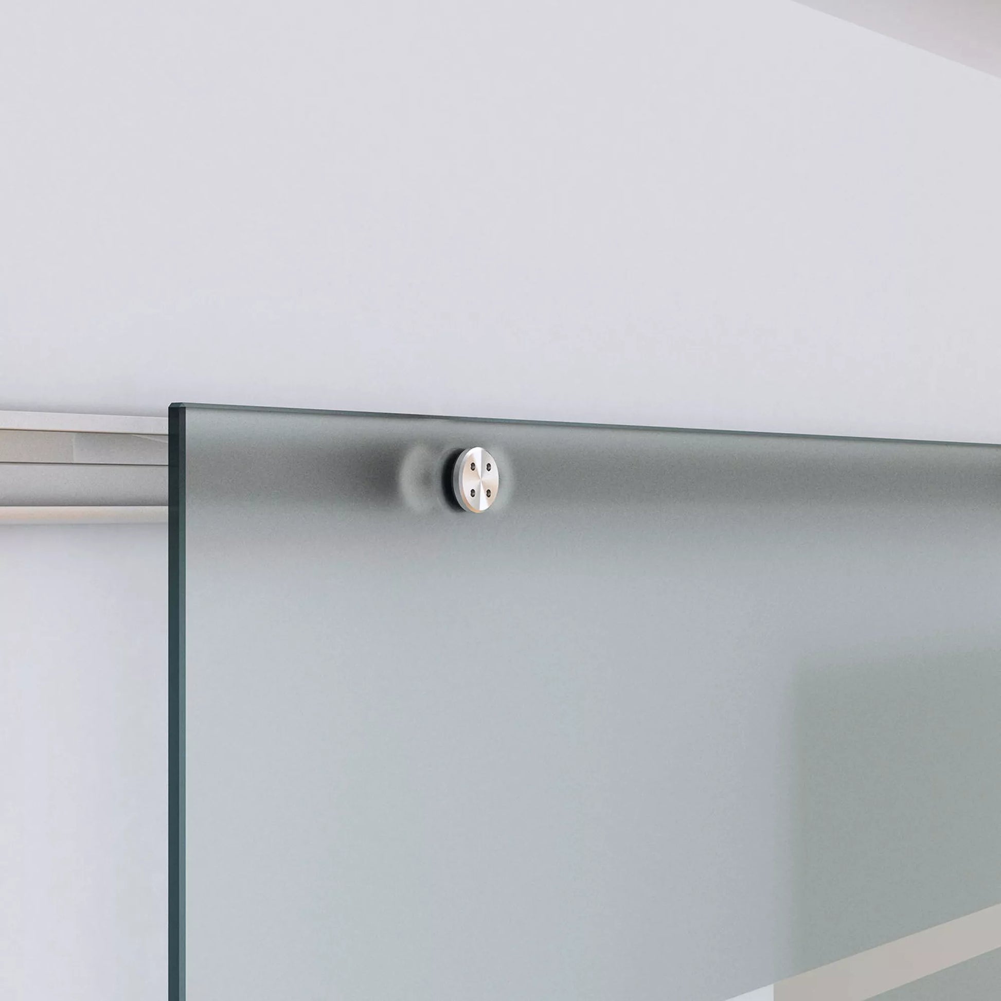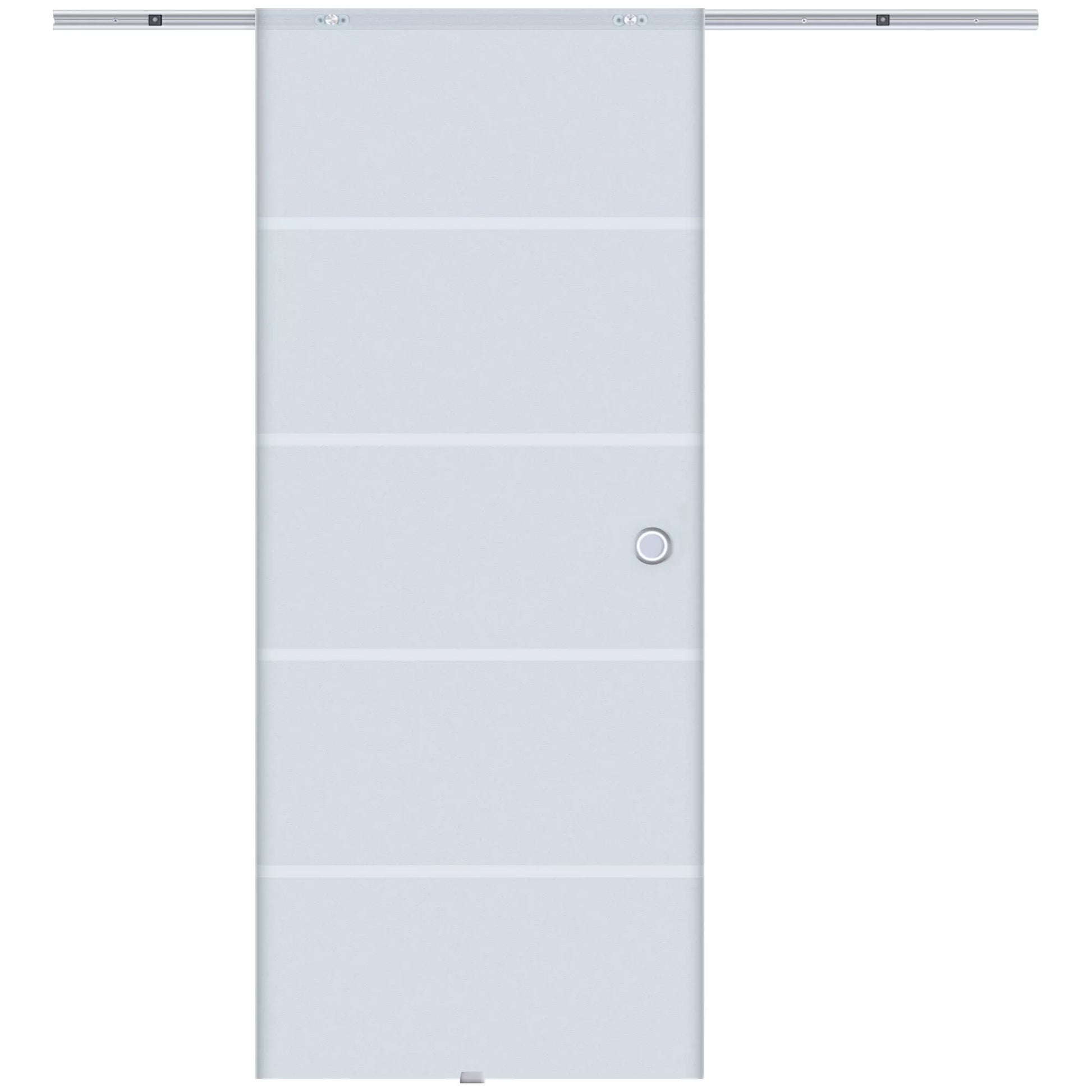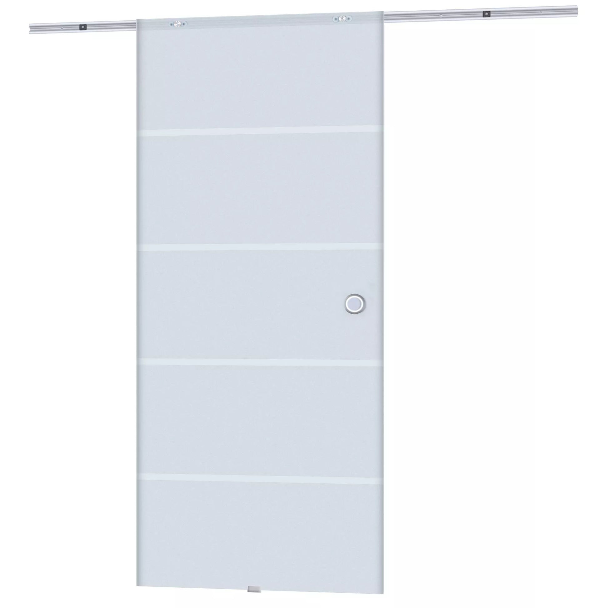 Pergalvokite savo namų interjerą. Tinka kaip pertvara, įėjimo durys ar modernios biuro durys. Panaudojimo galimybės yra įvairios. Viso stiklo plokštė yra dalinai matinė ir pralaidi šviesai. Ji tvirtinama ant aliuminio pakabinamos sistemos. Dėl to ji slenka šnabždesio tylumu ir ramiai – visiškai be papildomo kreipiančiojo apačioje. Stiklo plokštė pagaminta iš 8 mm storio grūdinto saugos stiklo (ESG) ir yra ypač tvirta. Durys tiekiamos kaip pilnas komplektas, todėl jas lengva sumontuoti net ir neturint praktinės patirties.