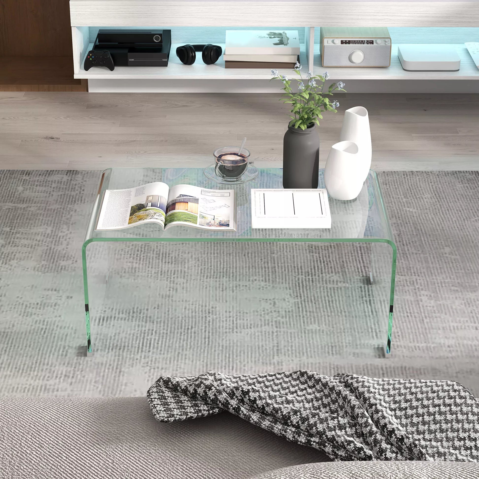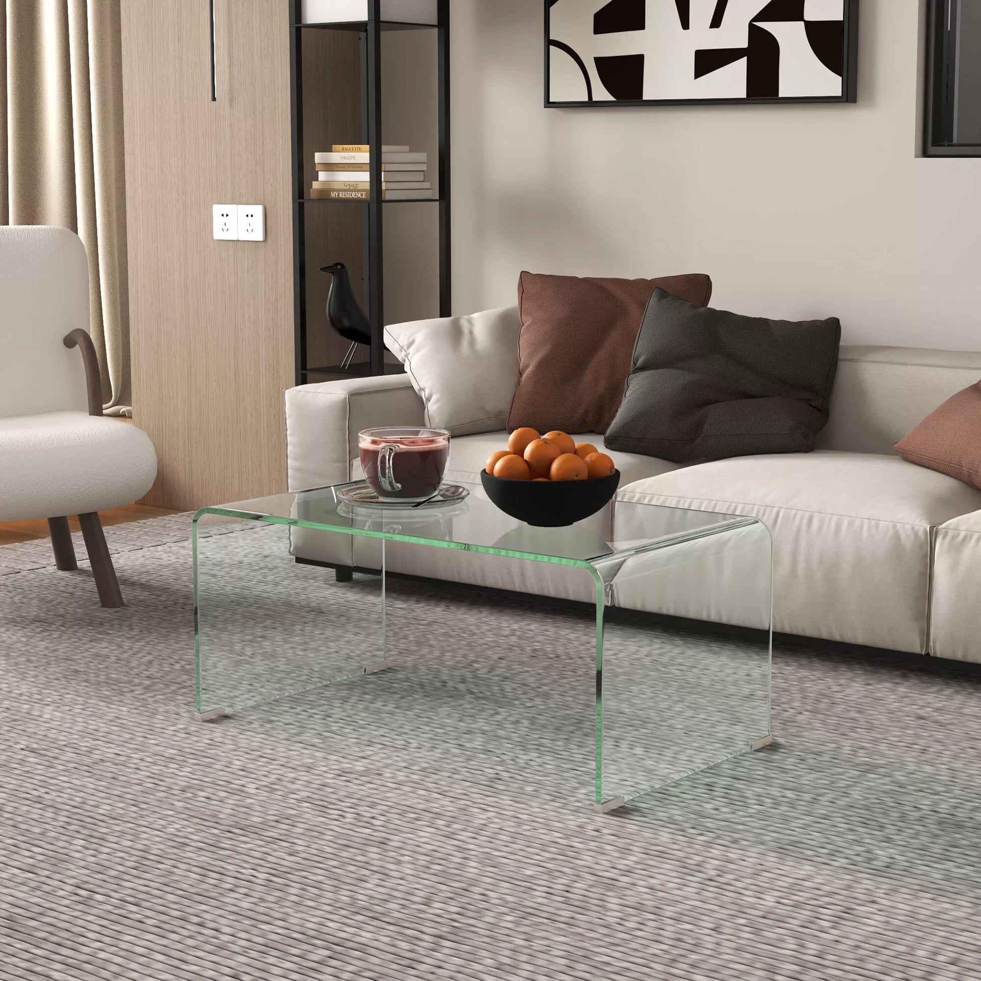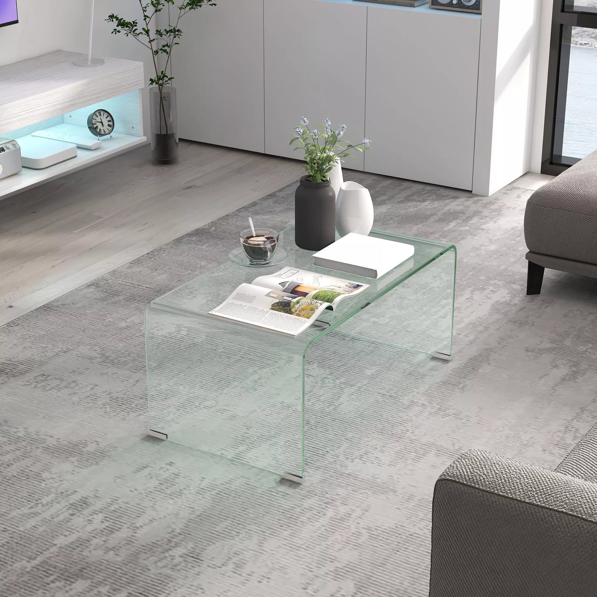 Atraskite šį modernų kavos staliuką, kuris sujungia dizainą ir funkcionalumą. Pagamintas iš vientiso sutvirtinto grūdinto stiklo, šis staliukas papuoš jūsų svetainę ir bus lengvai prižiūrimas. Dėl neslystančių kojelių atramų, svetainės staliukas tvirtai laikosi ant bet kokio paviršiaus ir suteikia jūsų namams stiliaus bei komforto.