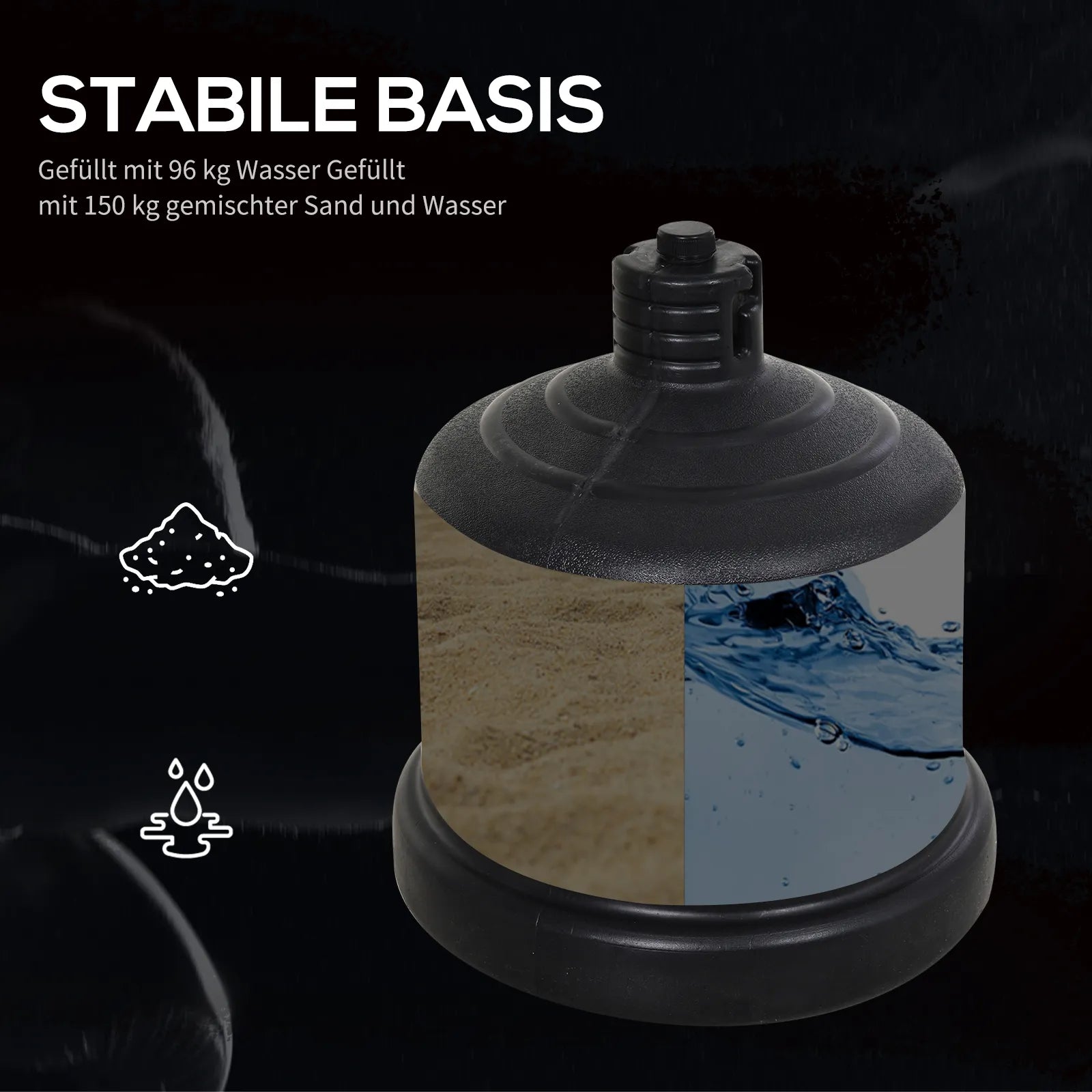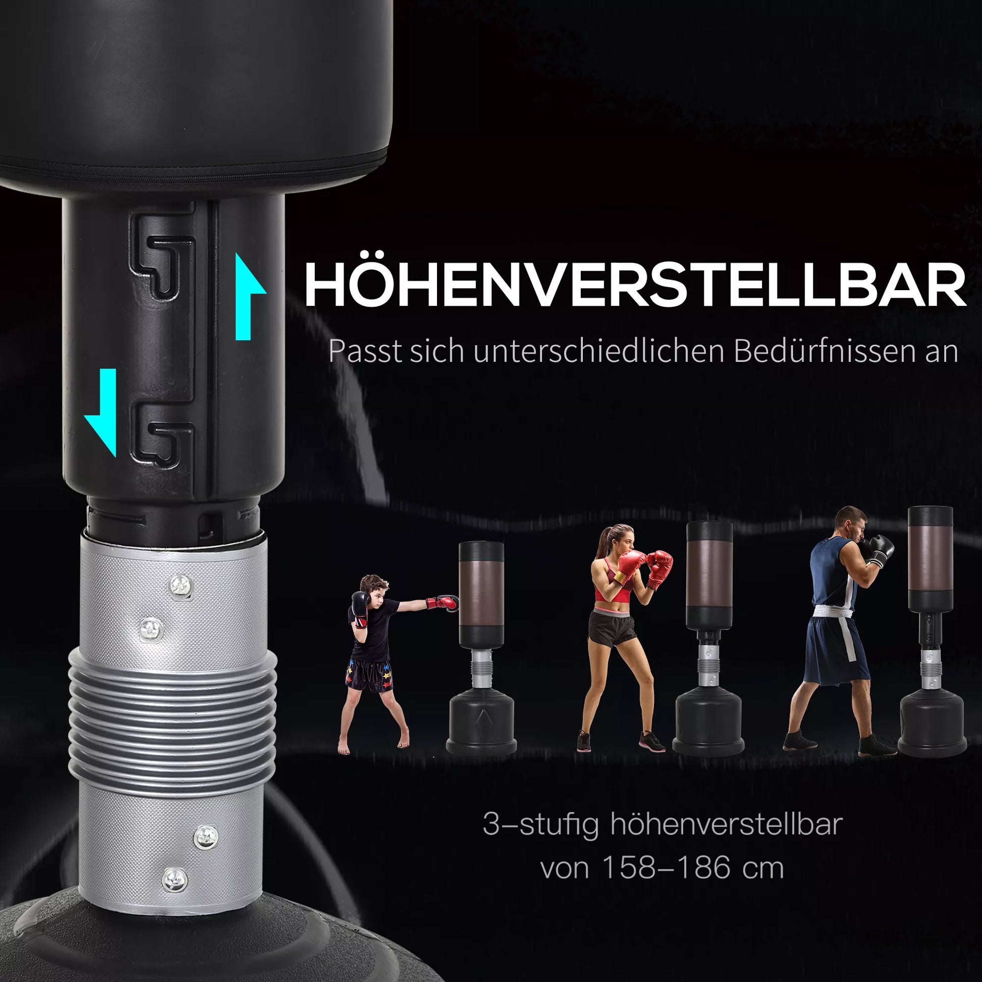 Treniruokitės namuose kaip tikroje bokso salėje su šiuo tvirtu pastatomu bokso maišu! Bokso maišas yra trijų pakopų reguliuojamo aukščio nuo 158 cm iki 186 cm ir turi optimalų paminkštinimą. Tokiu būdu jūsų smūgiai yra švelniai sugaunami, tausojant jūsų sąnarius ir išvengiant traumų. Tvirtą pagrindą galima pripildyti smėlio arba vandens, kad bokso maišas išliktų stabilus, svyruodamas pirmyn ir atgal nuo smūgių.