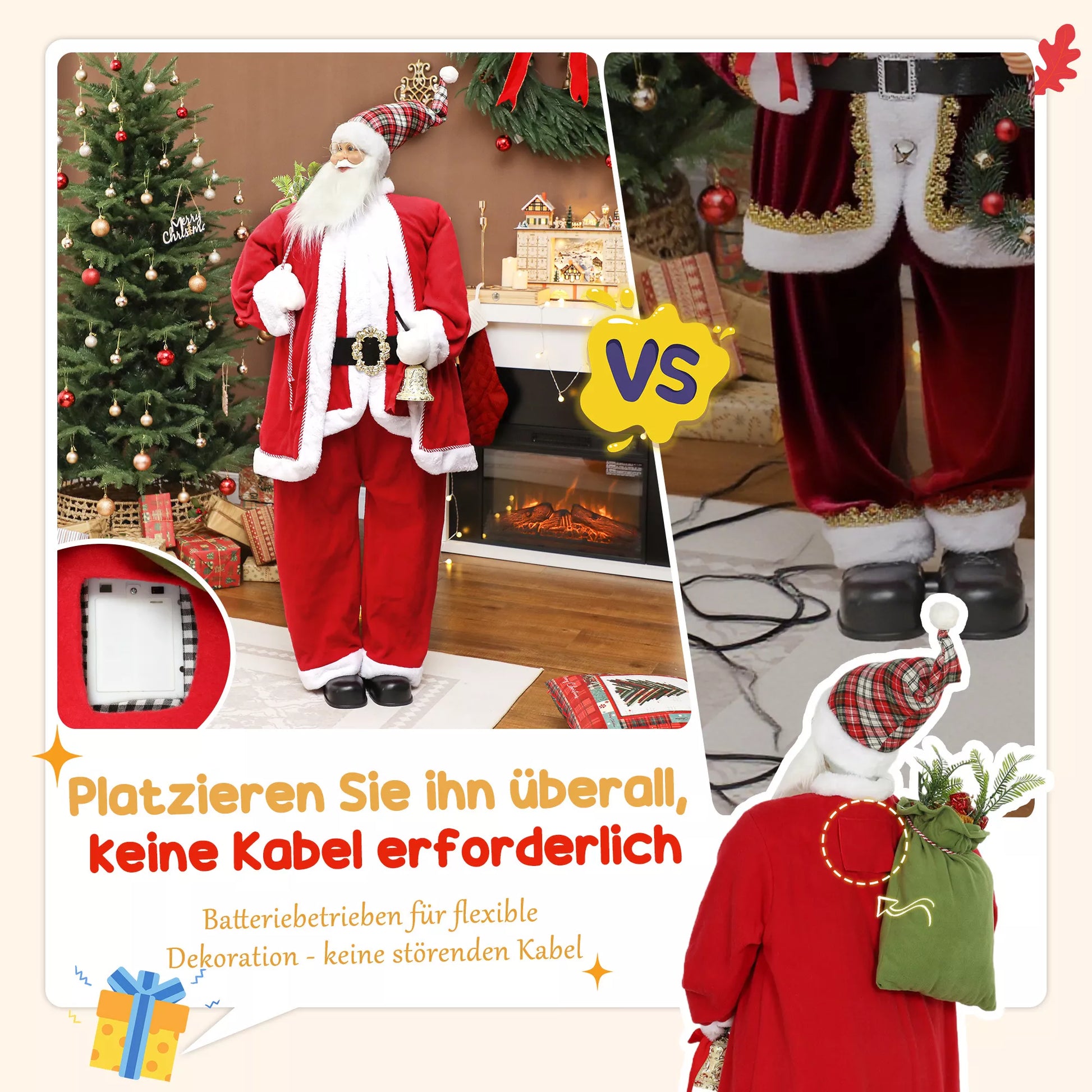 HOMCOM Stovintis Kalėdų senelis 1,6 m su dovanų ir kalėdinių varpelių garso funkcija