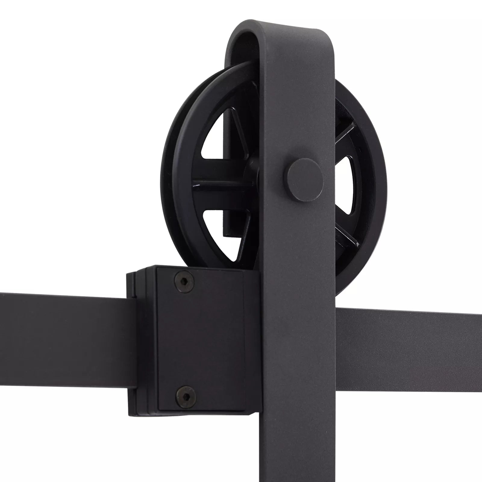 - ✔ Pagamintas iš anglies plieno, šis stumdomųjų durų furnitūros komplektas atlaiko iki 100 kg svorio