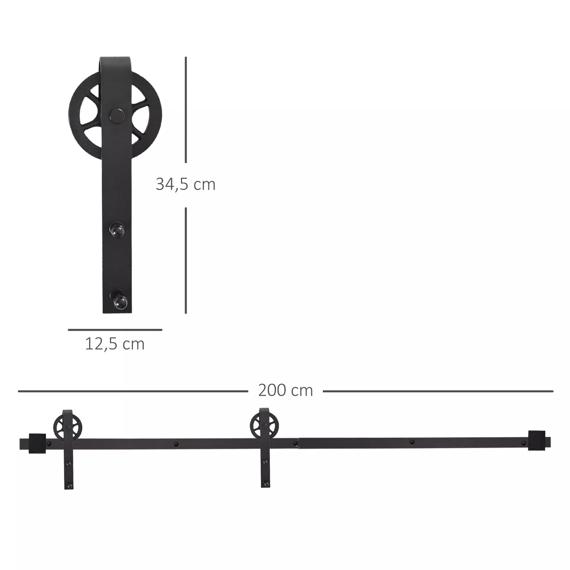 Slankiojančių bėgių rinkinys stumdomosioms durims, rustikalus dizainas, anglies plienas, 200x4x0,6 cm, iki 90 kg, juodas