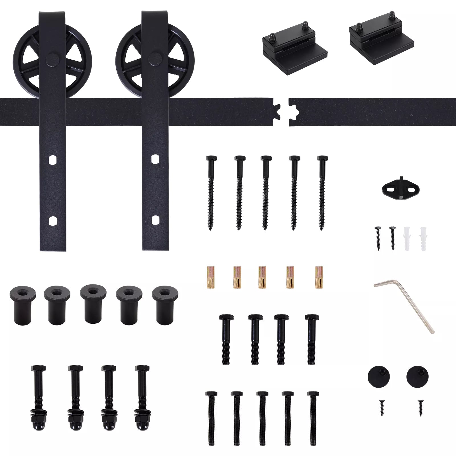 - ✔ Komplekte yra visi reikalingi montavimo elementai ir instrukcija, kad būtų galima lengvai sumontuoti stumdomų durų sistemą