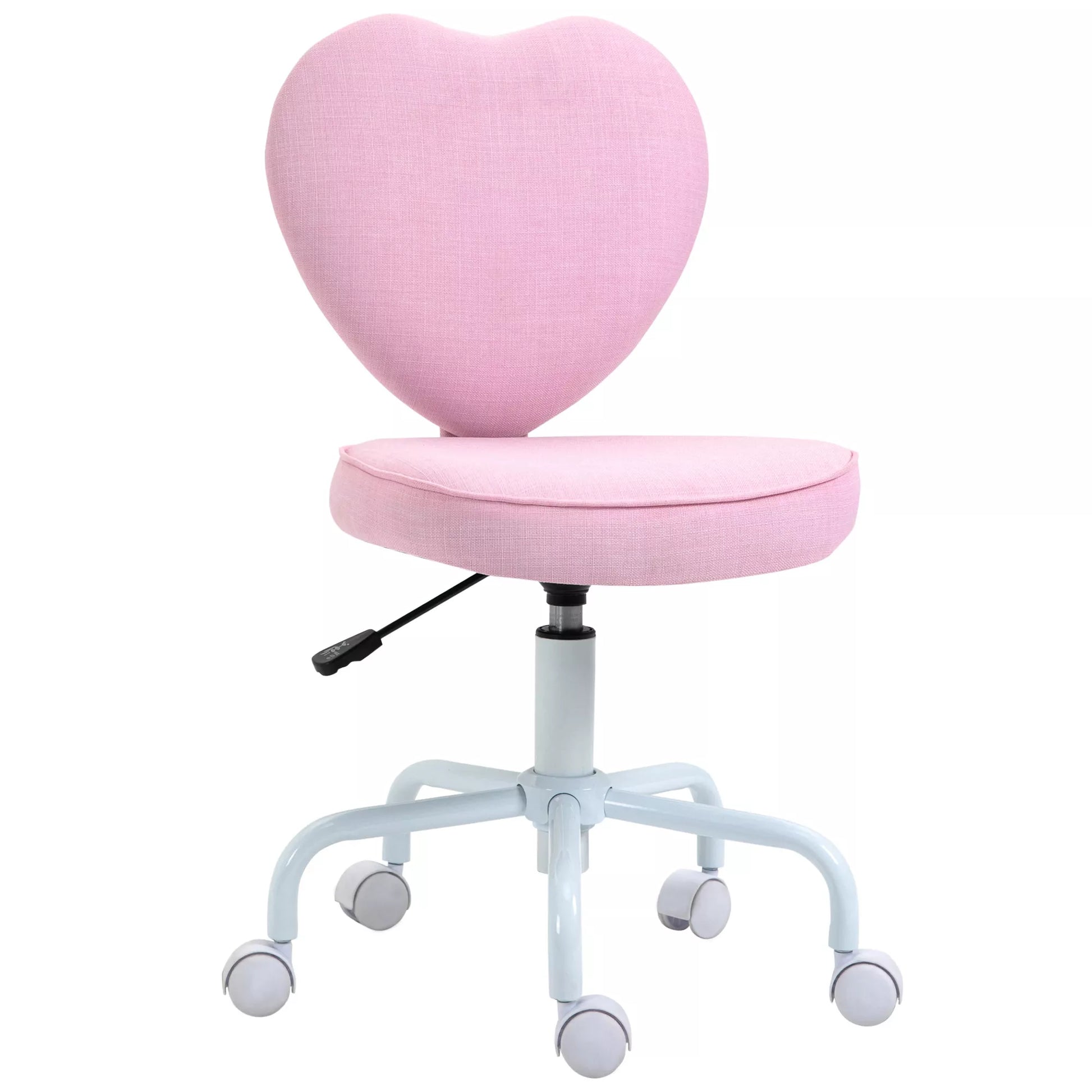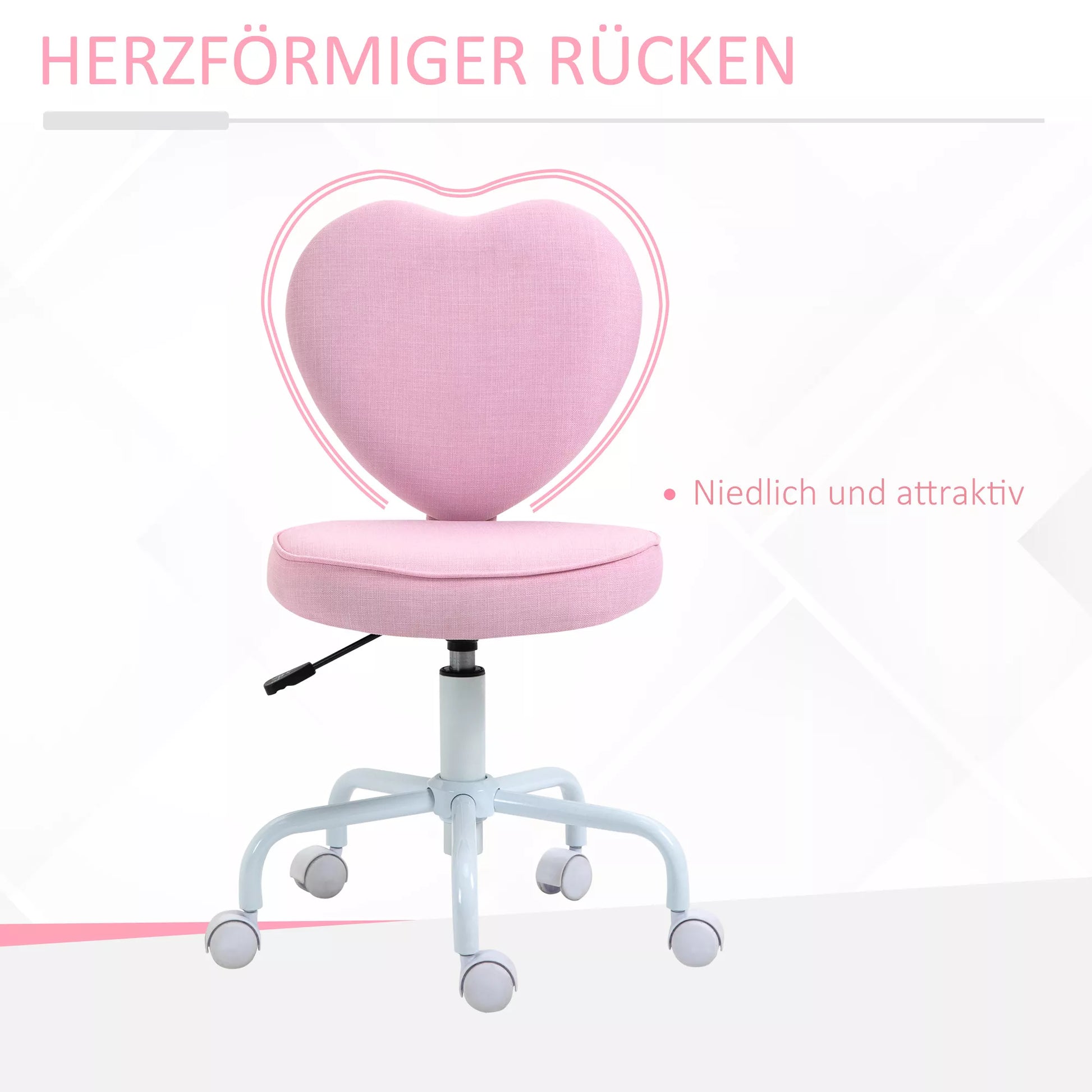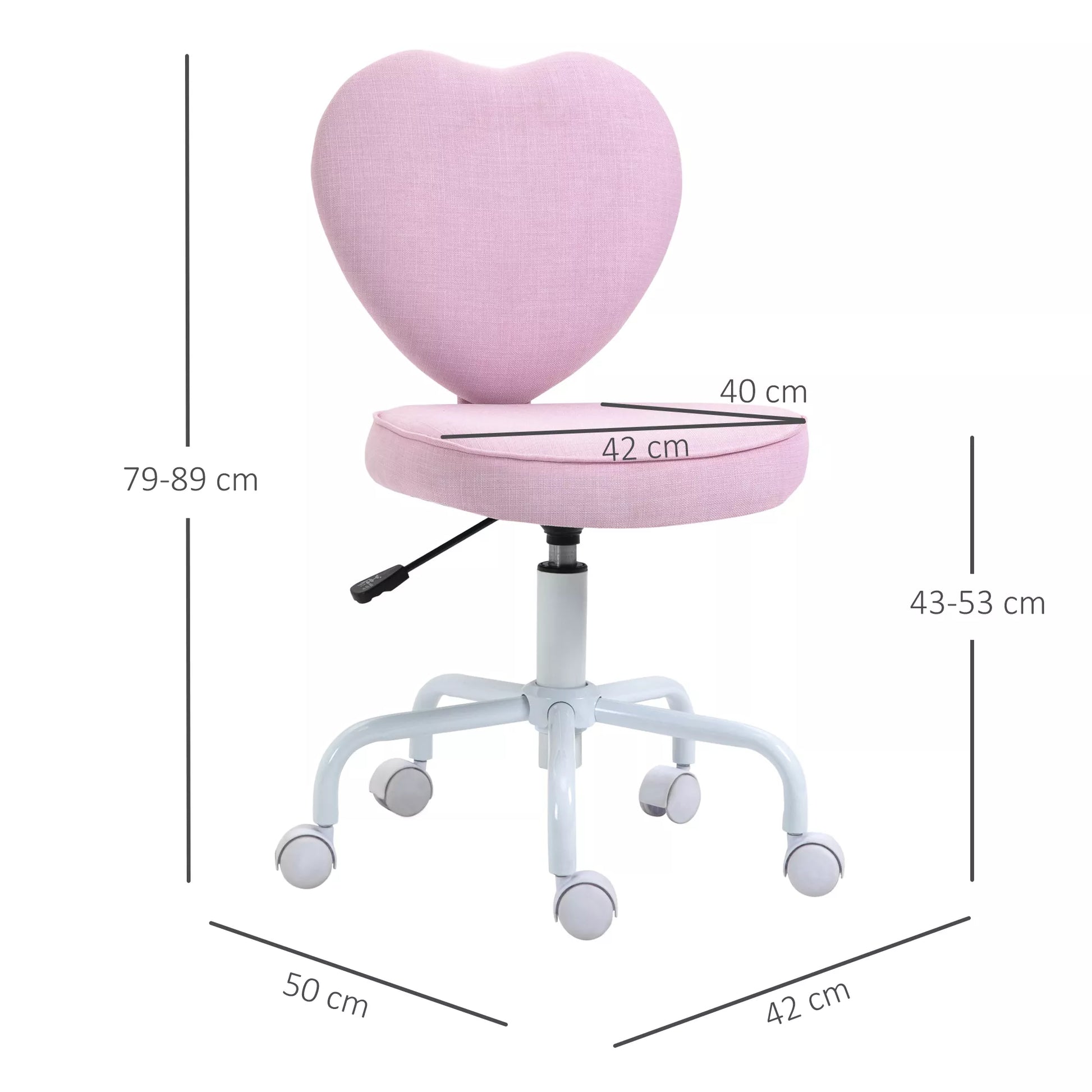 Pasukama kėdė, mielas širdelės dizainas, reguliuojamas aukštis, audinio apmušalas su lino išvaizda, rožinė, 42 x 50 x 79-89 cm