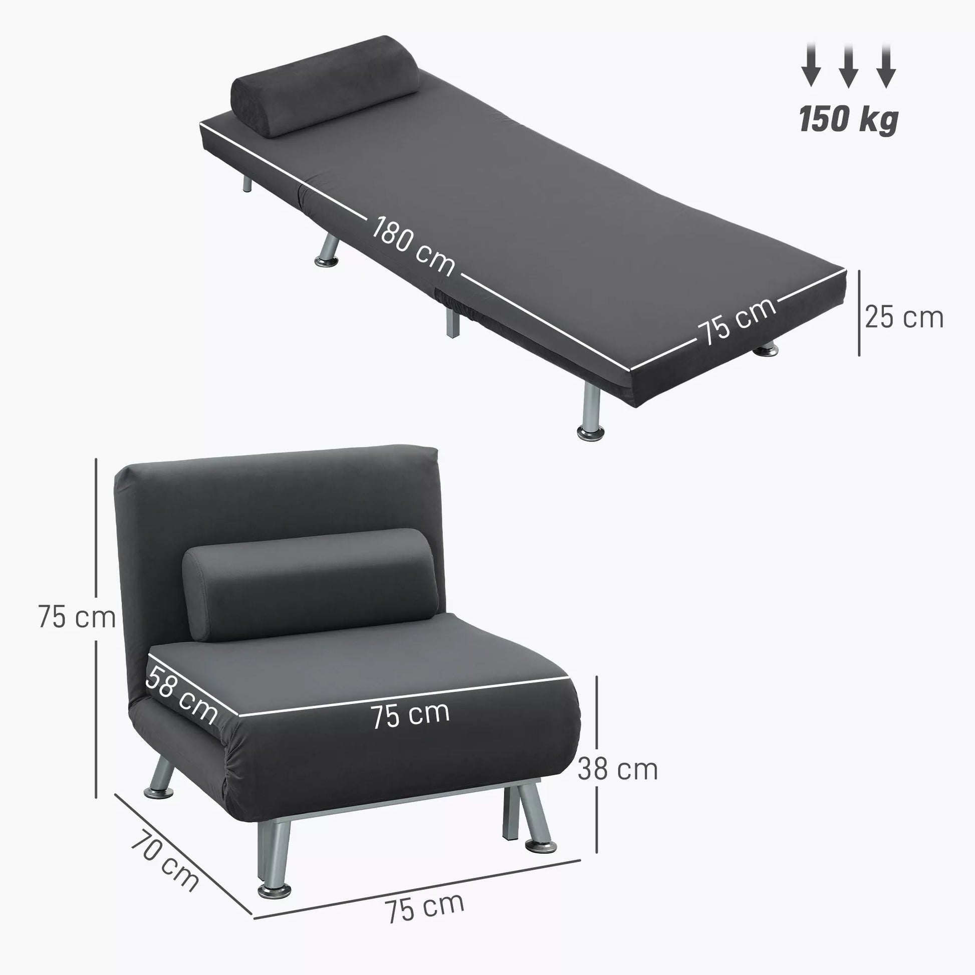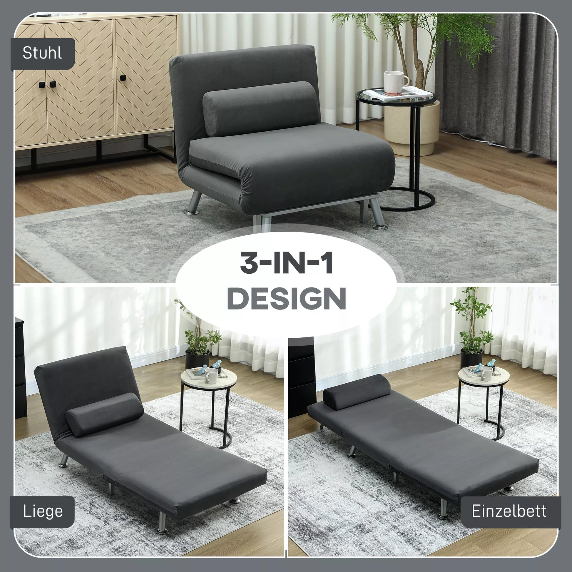 - ✔ 2-in-1 funkcija: Atsipalaidavimo fotelis ir svečių lova viename