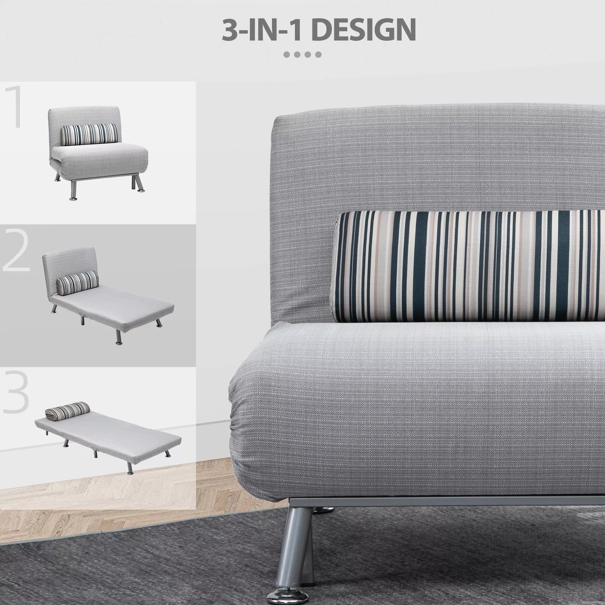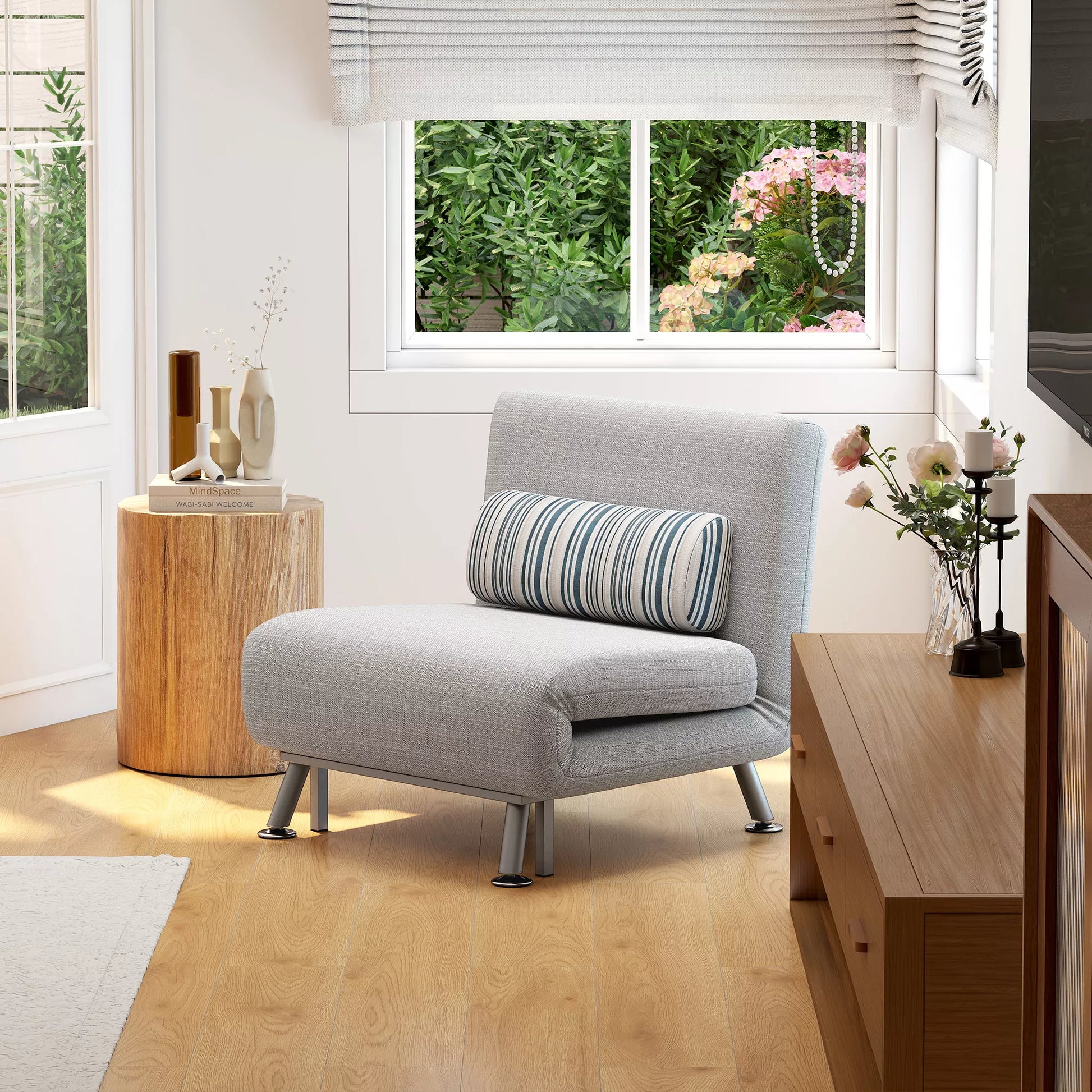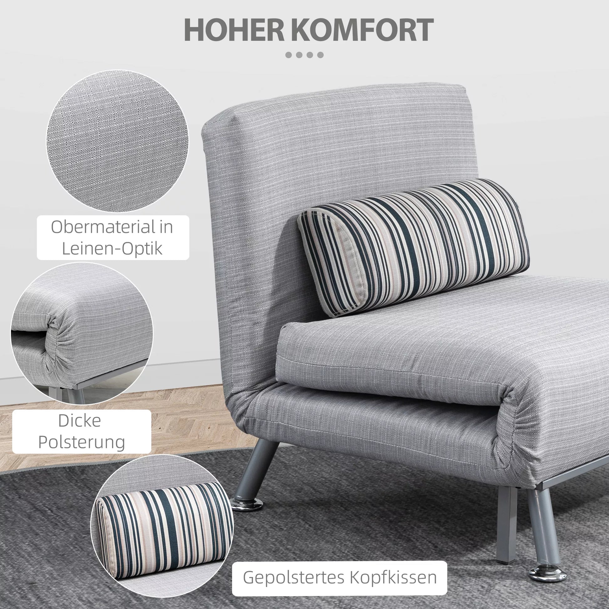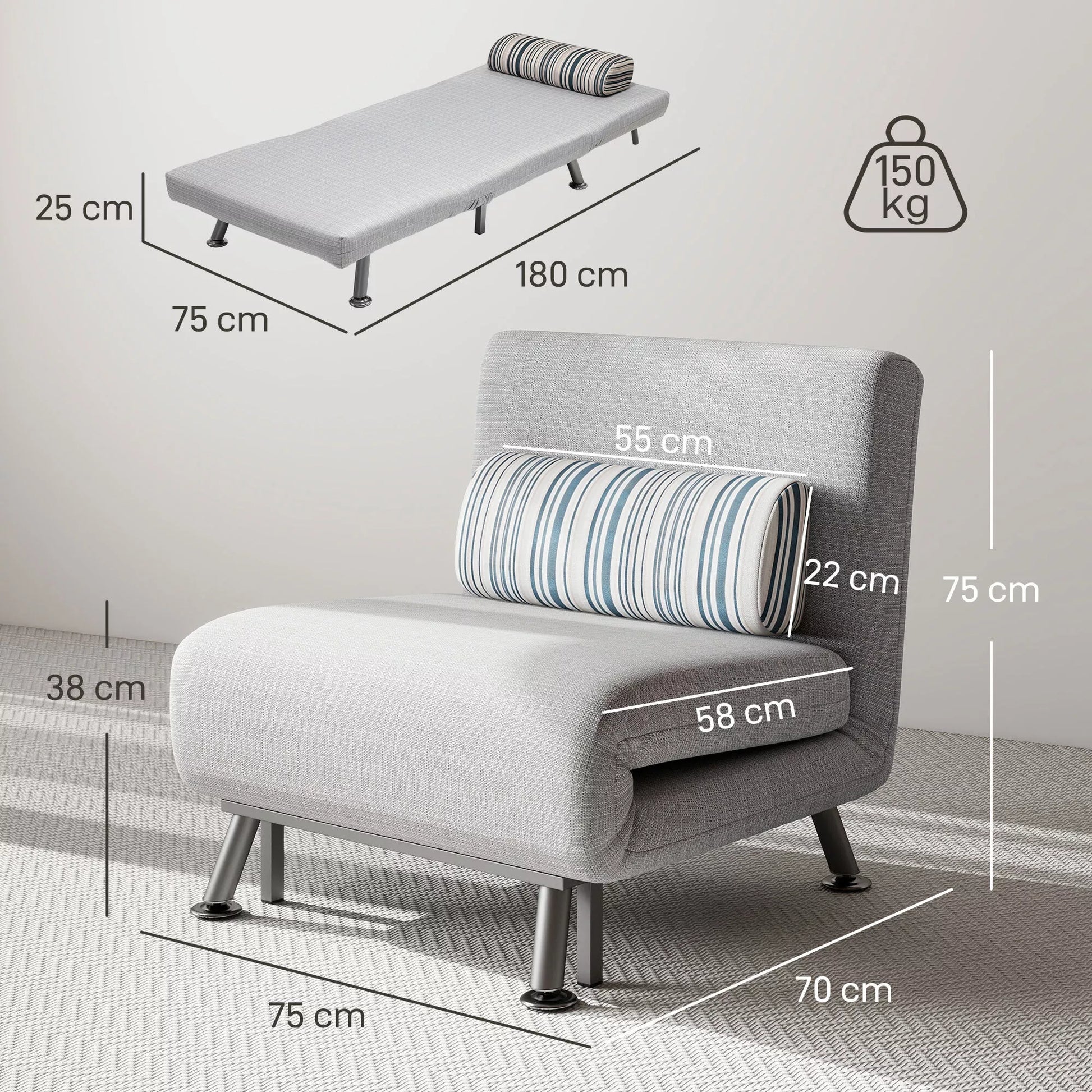Sulankstomas krėslas su miegojimo funkcija, atlošiamas krėslas su linine išvaizda, reguliuojama atlošas, 75 x 70 x 75 cm, Pilka