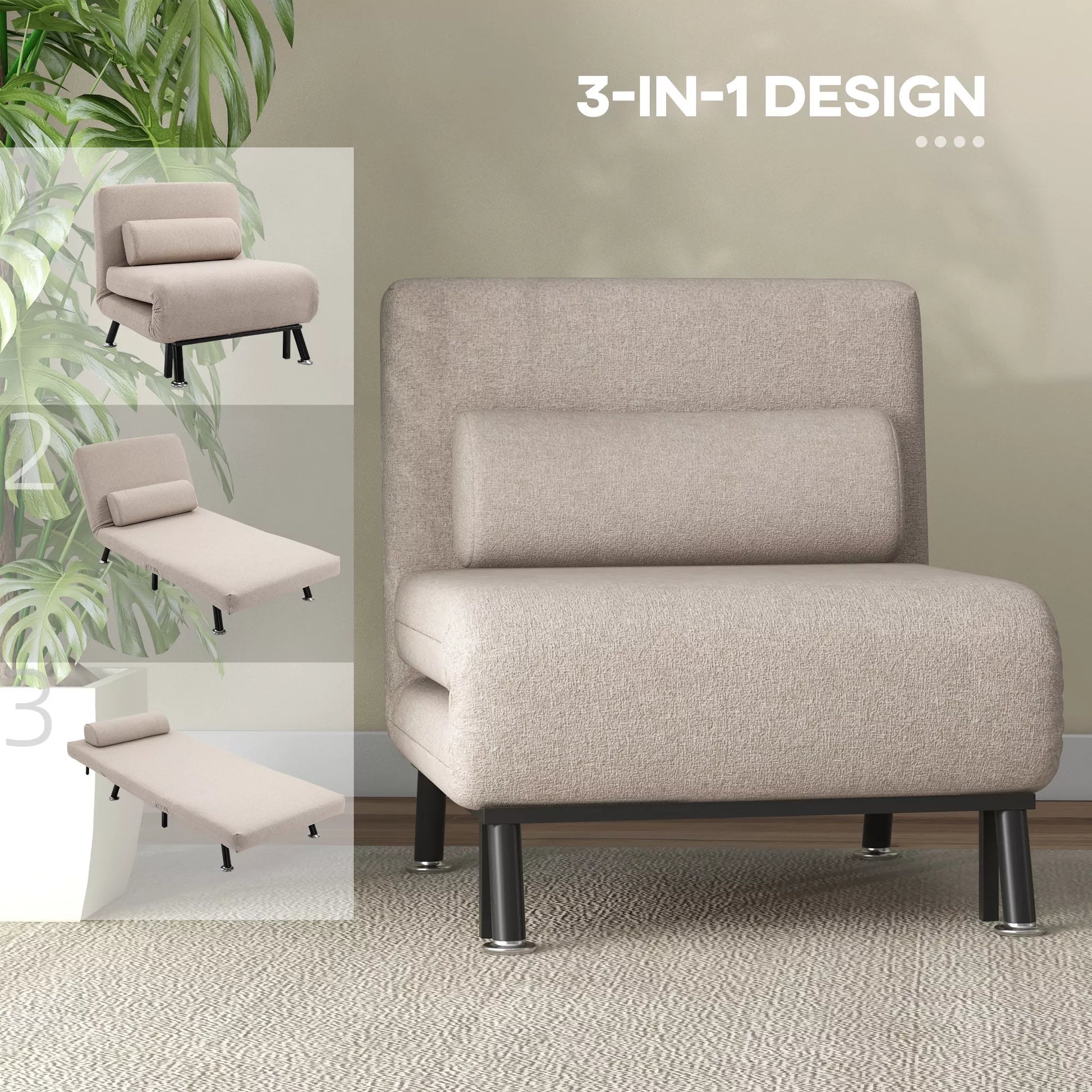 Sulankstomas fotelis su miegojimo funkcija, sulankstomas poilsio fotelis su lininio audinio išvaizda, reguliuojama atlošas, 75 x 70 x 75 cm, smėlio spalvos