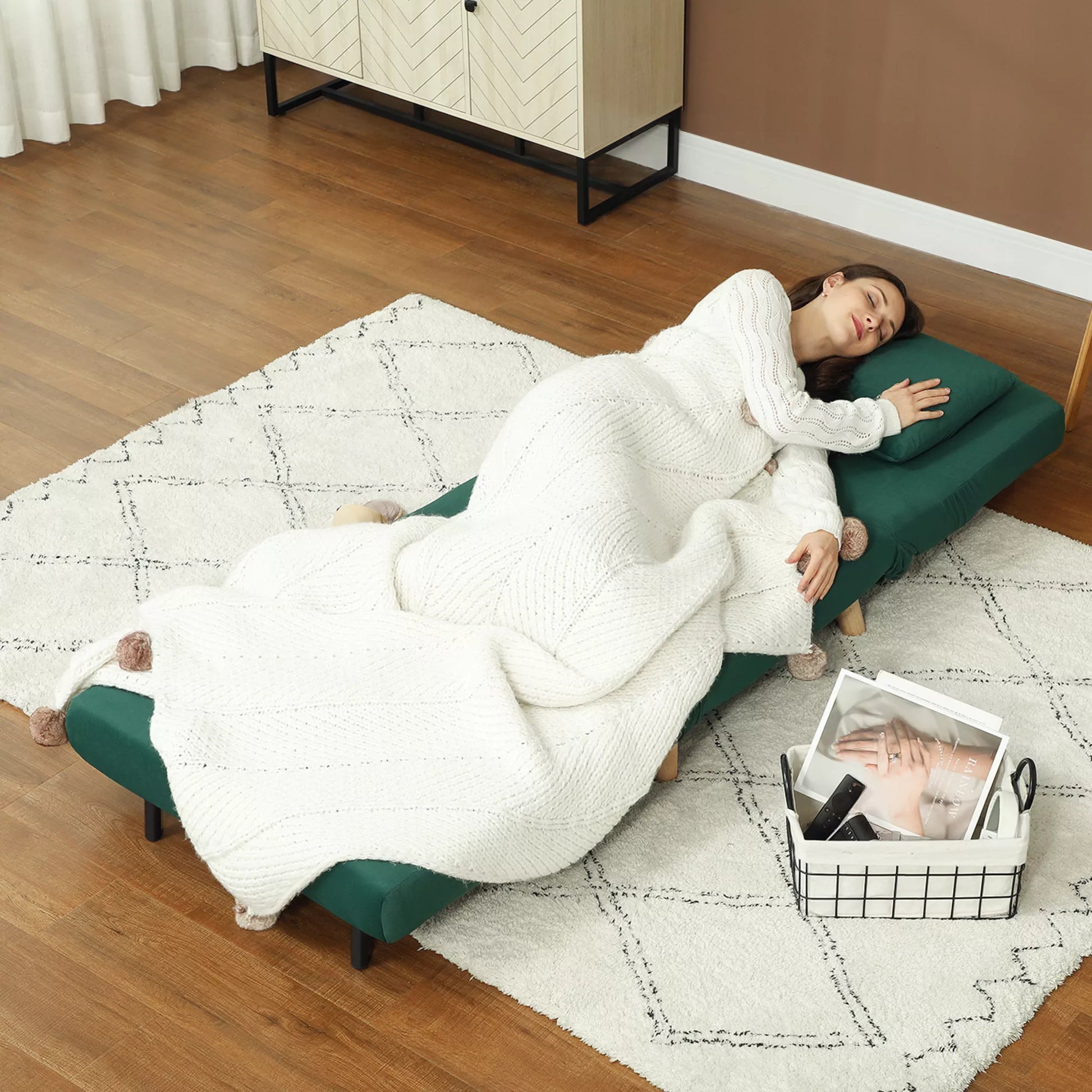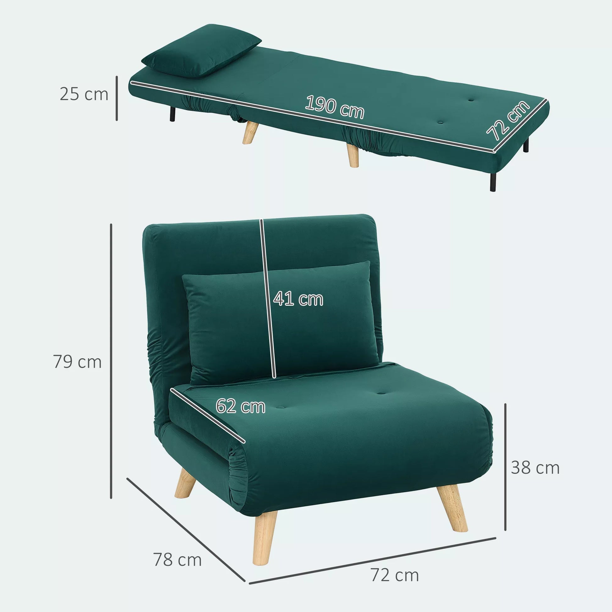 Sulankstoma kėdė su miegojimo funkcija, sulankstomas poilsio krėslas su aksomo išvaizda, reguliuojama atlošas, atlaiko iki 120 kg, tamsiai žalia