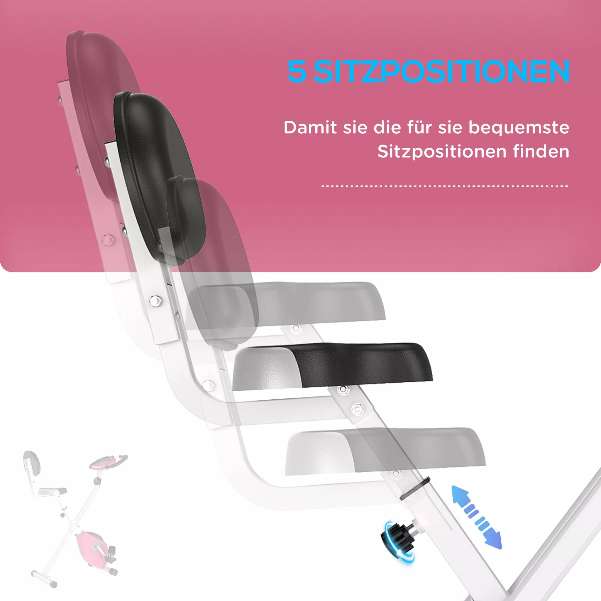 Sulankstomas magnetinis dviračių treniruoklis namams su LCD monitoriumi, 8 lygių reguliuojamu magnetiniu pasipriešinimu, erdvę taupantys treniruokliai dviračiai namams, rožinė+balta