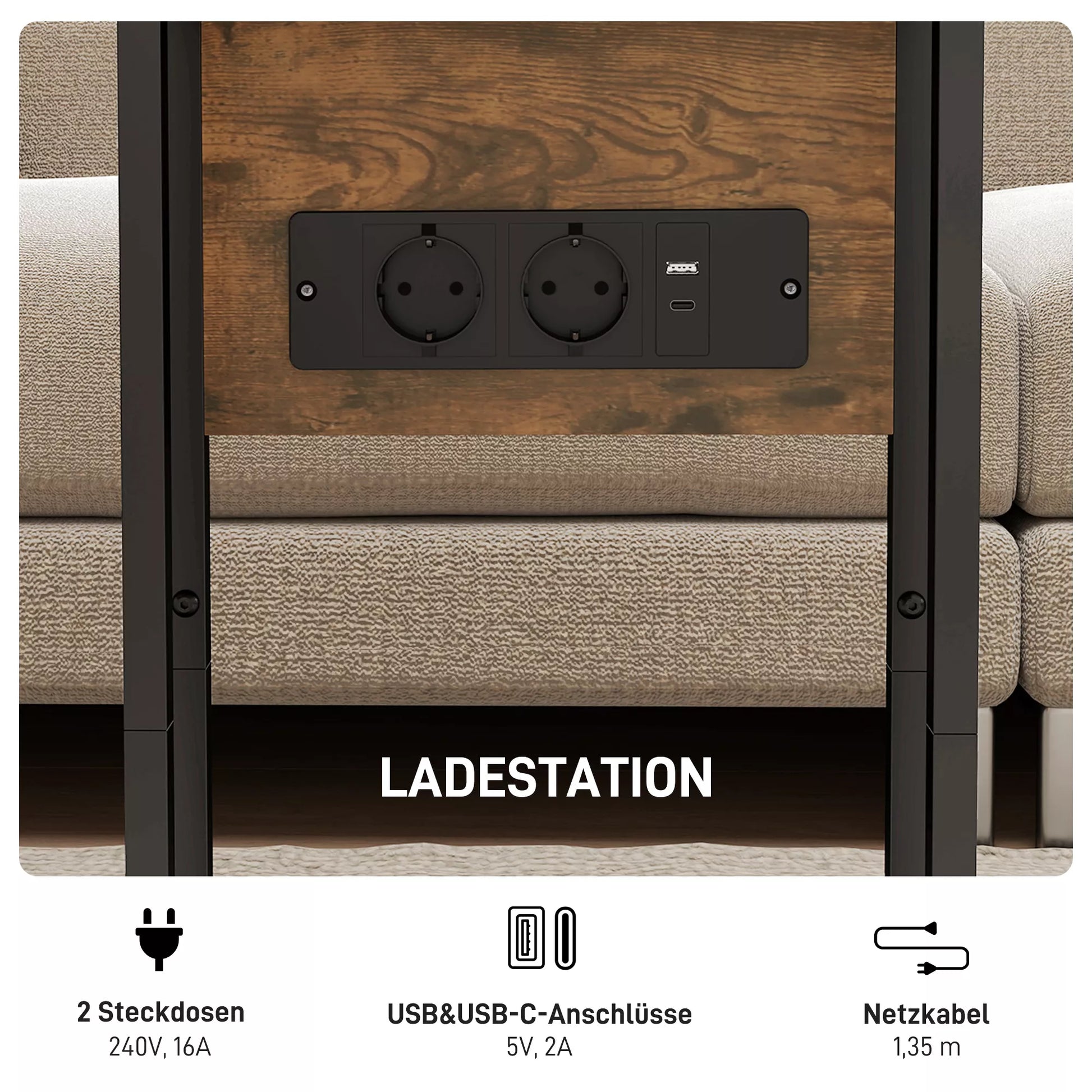 Atraskite pramoninio stiliaus staliuką prie sofos nuo , kuris pakylės jūsų namų aplinką su integruota įkrovimo stotele ir sulankstomu stalviršiu, puikiai derančiu bet kuriame kambaryje. Šį C formos staliuką lengva pastumti po sofa ar lova – idealiai tinka mažoms, jaukioms erdvėms. Jis tarnauja kaip patogus naktinis staliukas, praktiškas pagalbininkas prie sofos ar efektyvi darbo vieta, elegantiškai ir funkcionaliai prisitaikydamas prie jūsų gyvenimo būdo.