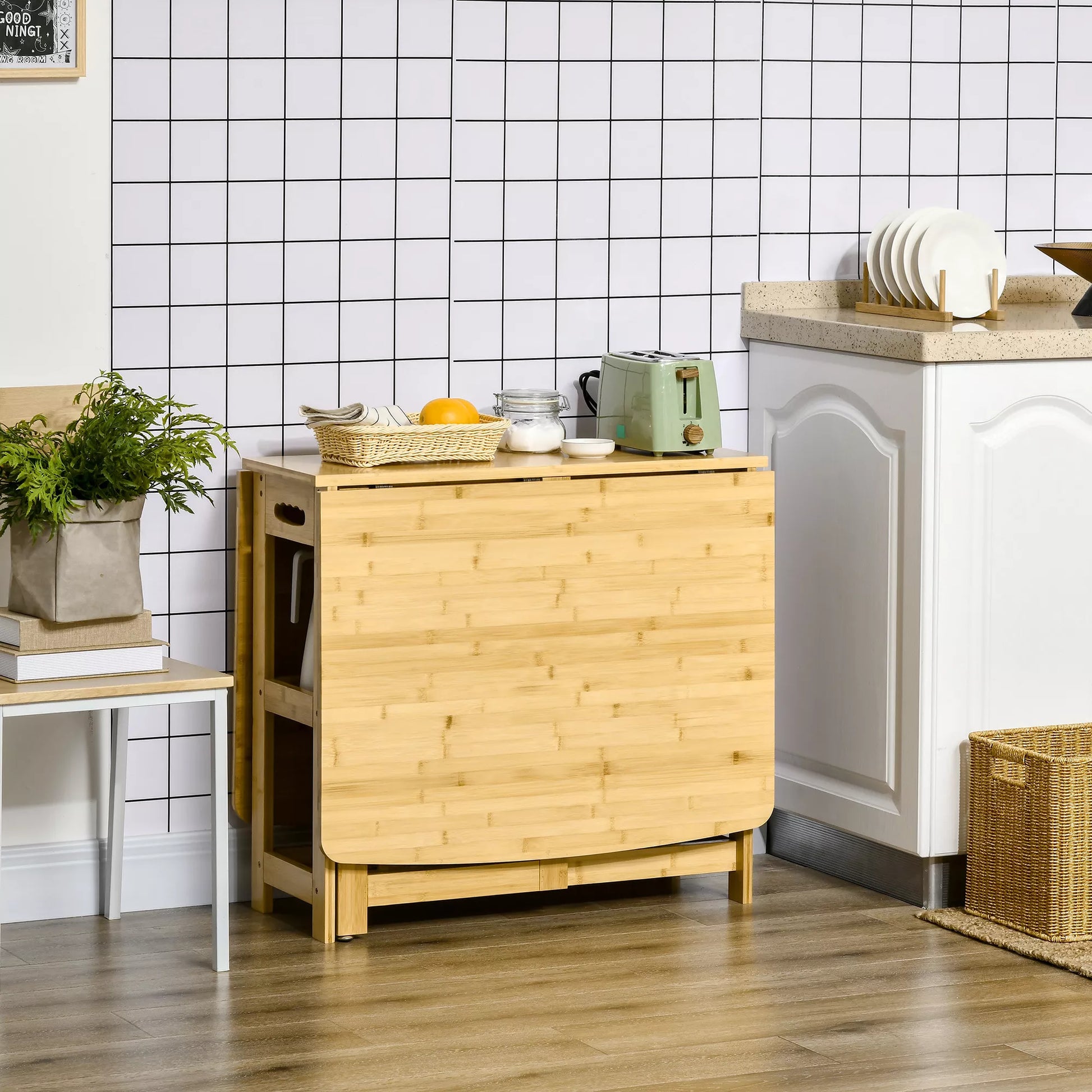 Sulankstomas valgomojo stalas, dvi sulankstomos pusės, dvi lentynos, reguliuojamos kojelės, bambukas, 149,5 x 80 x 73,5cm