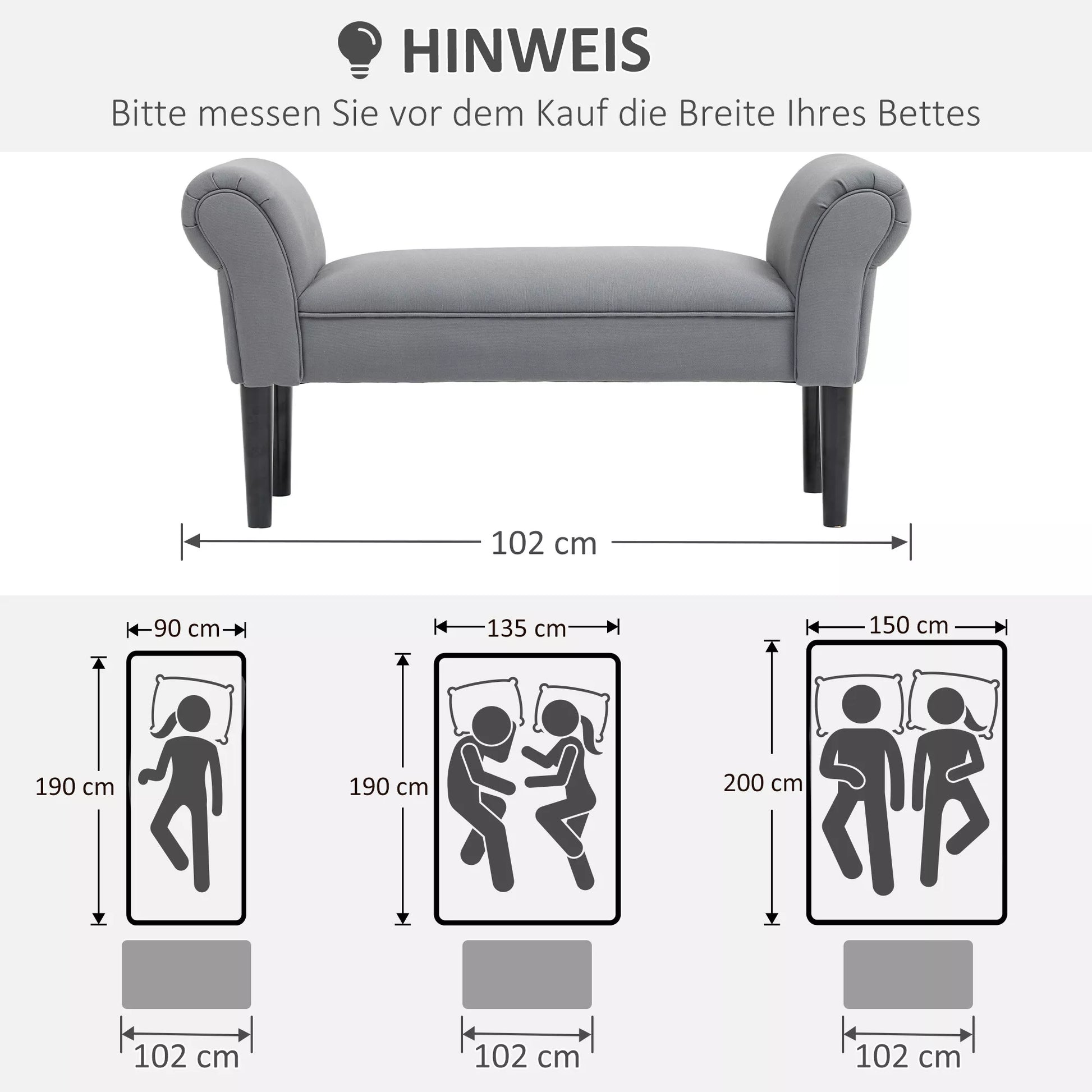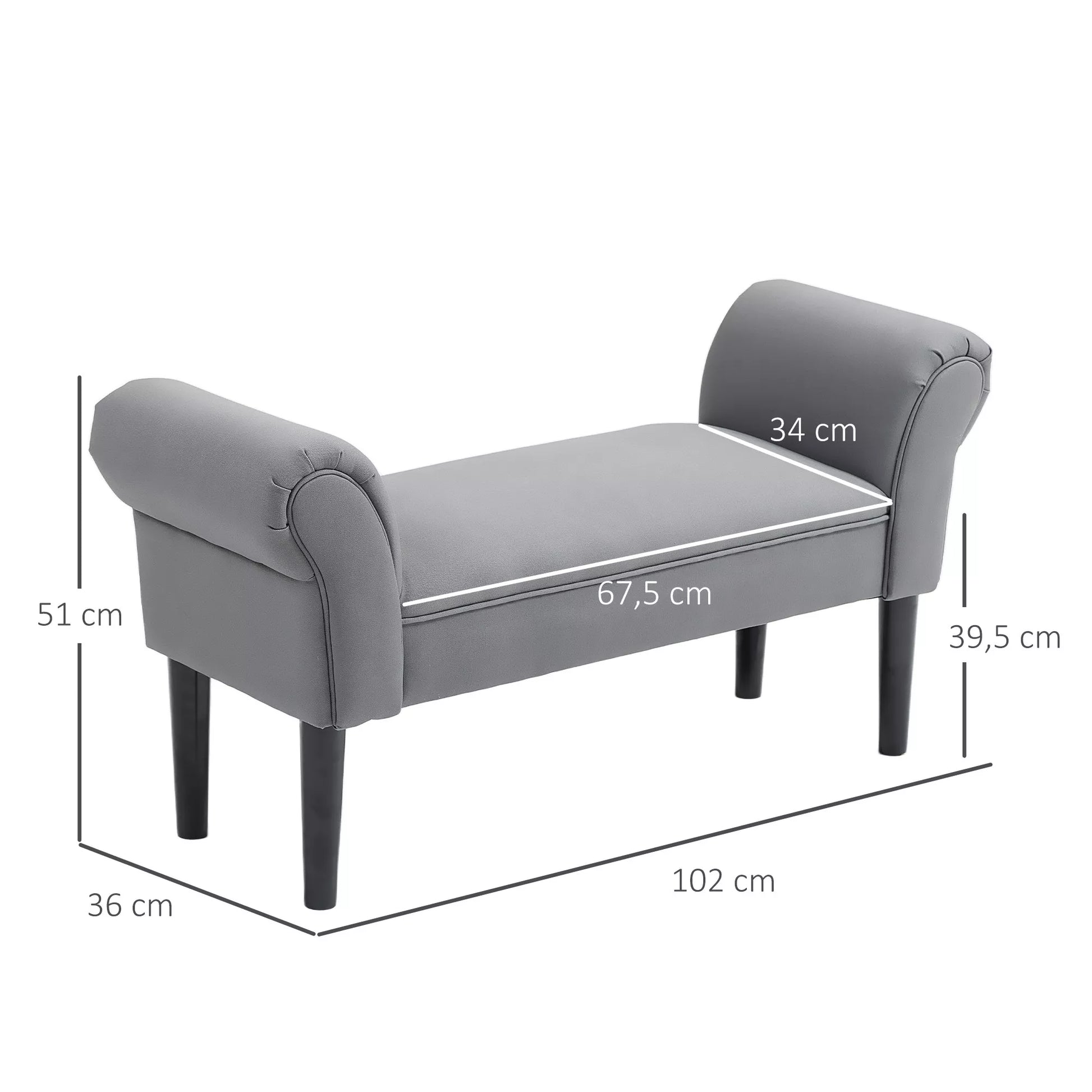 Sėdimoji suoliukas, suoliukas prie lovos, tvirta konstrukcija, minkštas paminkštinimas, 102x36x51 cm, Pilka